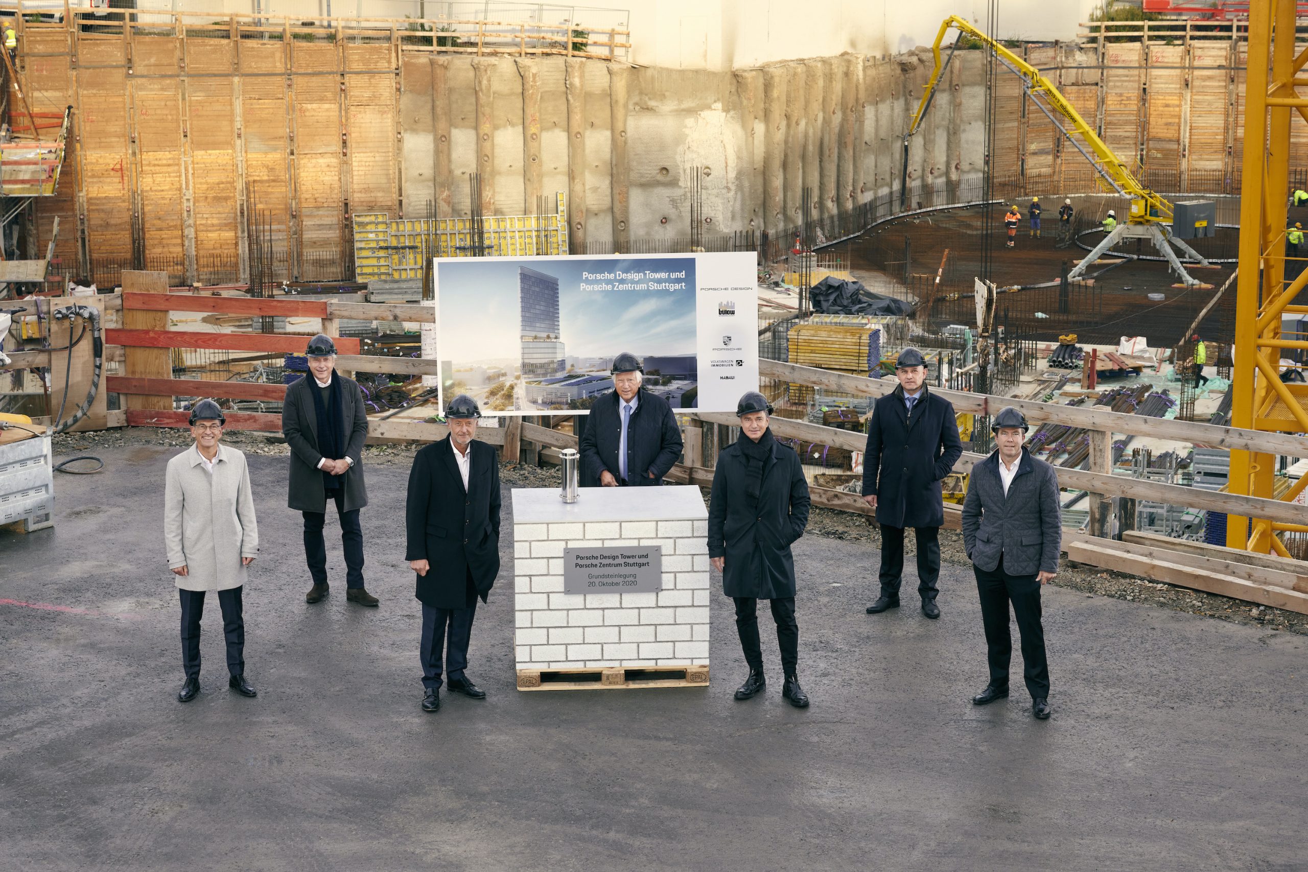 Direkt am Pragsattel, einem zentralen Verkehrsknotenpunkt im nördlichen Stadtgebiet, baut Porsche gemeinsam mit der Bülow AG den neuen Porsche Design Tower Stuttgart und die neue Porsche Niederlassung Stuttgart. Gemeinsam legten die Partner nun symbolisch den Grundstein für beide Gebäude: So versenkten die Verantwortlichen eine sogenannte Zeitkapsel. Aufgrund der aktuellen Corona-Situation fand die Zeremonie ohne Gäste-Beteiligung statt. Die Bauarbeiten auf dem 8.500 Quadratmeter großen Grundstück starteten Anfang 2020 und verlaufen planmäßig. Es ist das erste gemeinsame Bauprojekt des Sportwagenherstellers, der Lifestyle-Marke Porsche Design und der Bülow AG; die Beteiligten setzen damit sowohl architektonisch, als auch konzeptionell neue Maßstäbe.