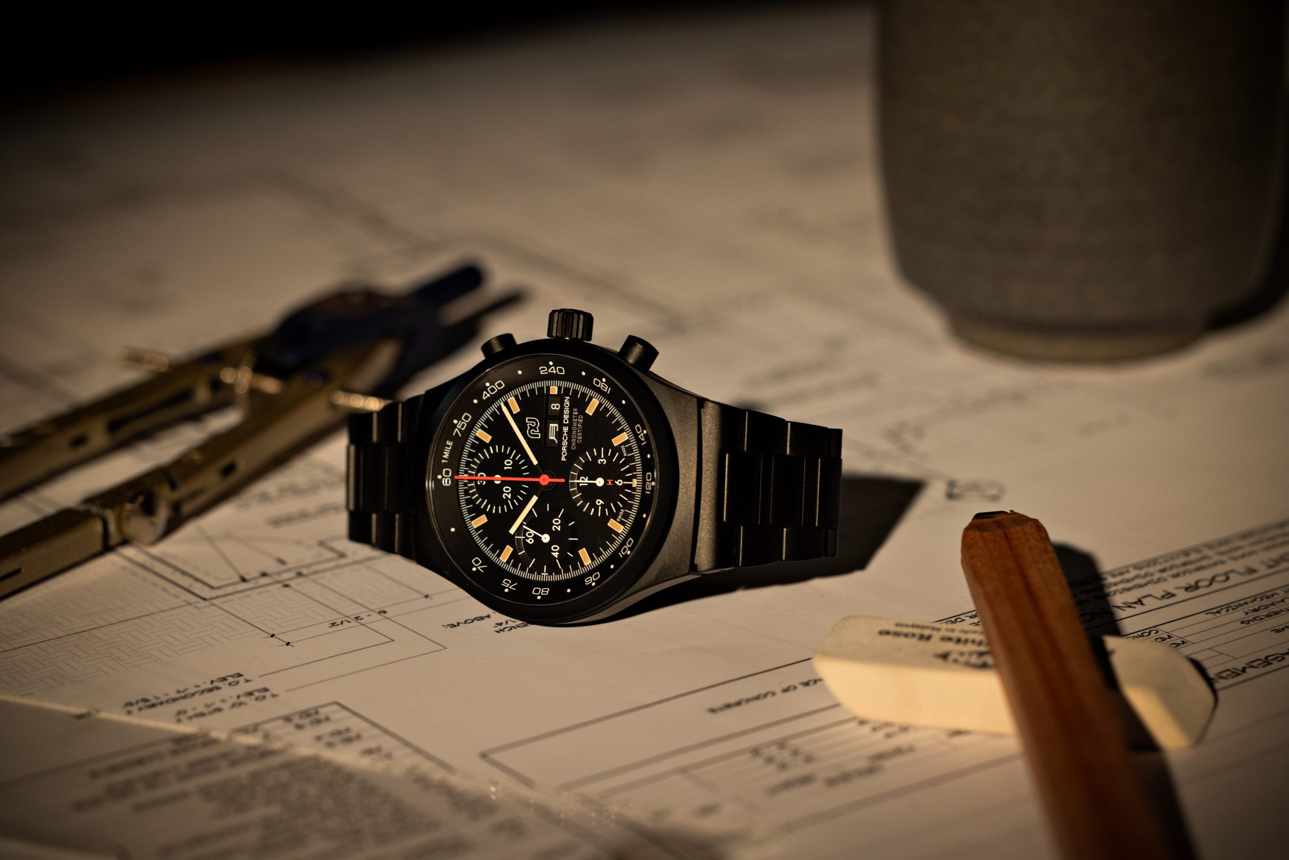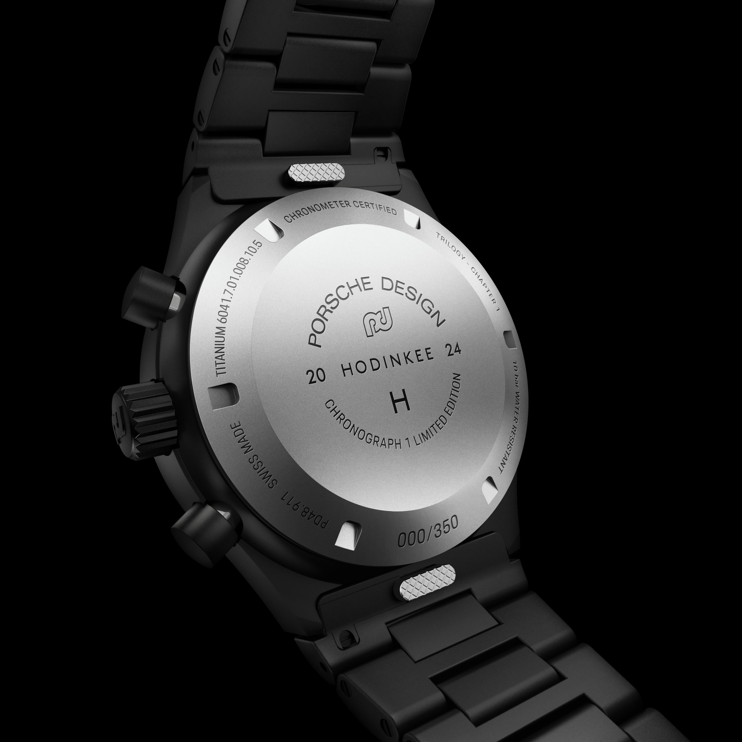Der Chronograph 1 – Hodinkee 2024 Edition ist weltweit auf 350 Stück limitiert und kombiniert zeitloses Design, das den Geist der 1970er Jahre einfängt, mit modernster Technologie. Das Gehäuse ist vollständig aus ultra-robustem und leichtem Titan gefertigt und mit hochkratzfestem Titancarbid schwarz beschichtet. Der geschlossene Gehäuseboden trägt das historische Porsche Design Icon sowie den Porsche Design Schriftzug und die Limitierungsnummer (XXX/350). Darüber hinaus ist er mit dem Hodinkee-Schriftzug, dem Hodinkee Icon (H), der Jahreszahl „2024″ und der Gravur „TRILOGY – CHAPTER 1″ versehen. Diese kennzeichnet den Chronographen als ersten der Partnerschaft mit Hodinkee. Das Armband aus Titan mit schwarzer Titancarbid-Beschichtung ist in dem Farbton gehalten, der den Original Chronograph I berühmt machte. Für ein angenehmes Tragegefühl bietet die Faltschließe mit Titan-Sicherheitsdrückern eine sichere Befestigung am Handgelenk, während der Schnellwechselmechanismus einen einfachen Tausch des Armbands ohne Werkzeug ermöglicht. „Porsche und Porsche Design sind in gewisser Weise ein Kernstück der DNA von Hodinkee. Daher ist dieses gemeinsame Projekt des Chronograph 1 etwas, von dem wir schon seit fast einem Jahrzehnt geträumt haben. Die letzten Jahre daran zu arbeiten war unglaublich und wir können es kaum erwarten, das Timepiece der Hodinkee- und Porsche-Community zu präsentieren“, sagt Benjamin Clymer, Gründer und geschäftsführender Vorsitzender von Hodinkee.