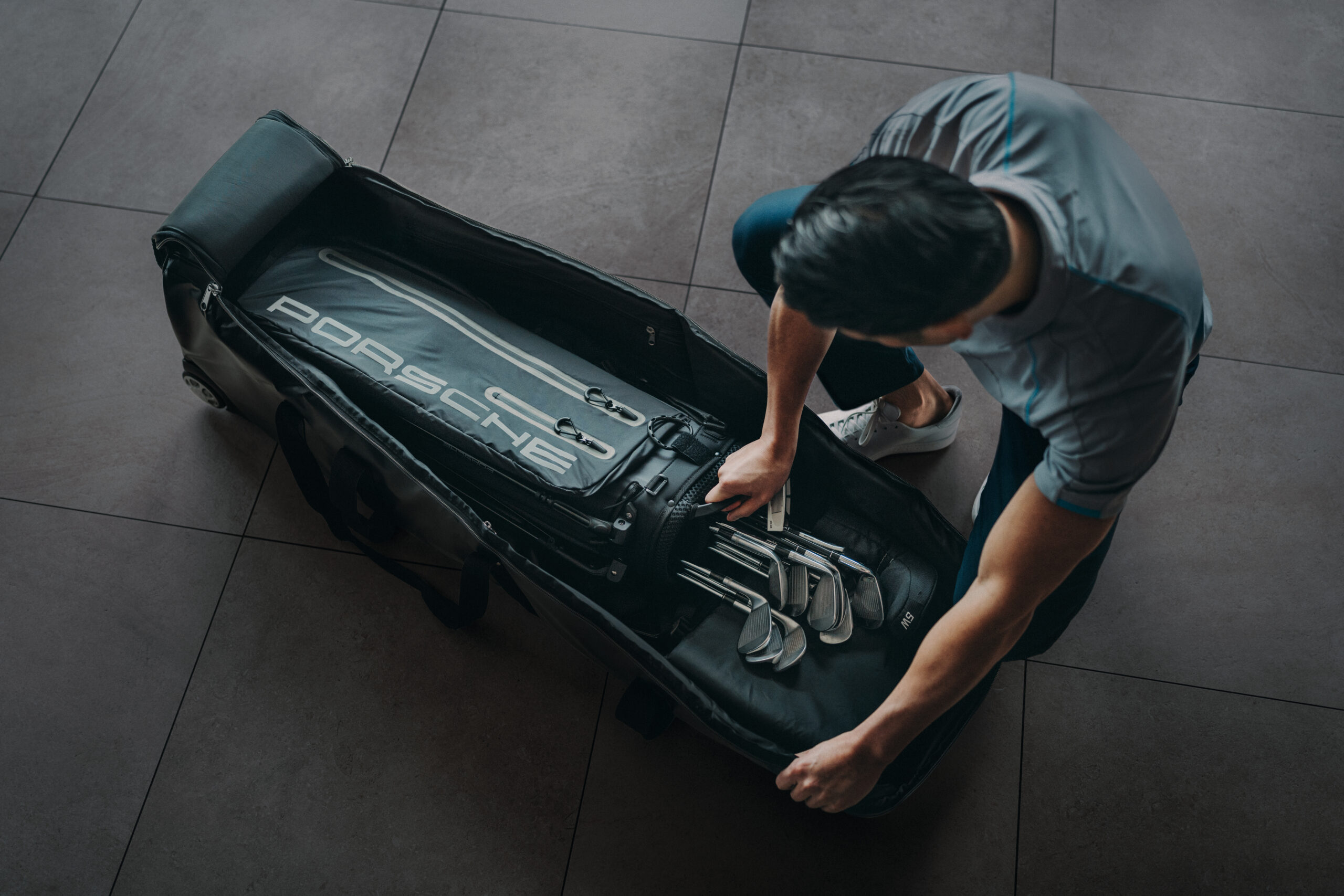 Präzises Design und funktionale Technik bringen den geschichtsträchtigen Golf-Sport und Porsche Werte zusammen und laden zu sportlichen Challenges auf dem Grün ein. Das neuaufgelegte Porsche Golfzubehör bietet Golfliebhabern einzigartige Möglichkeiten, stilvoll abzuschlagen und ihre Fähigkeiten auf prestigeträchtigen Plätzen zu verbessern. Das vielseitig einsetzbare Equipment in der sportlichen und zeitlos eleganten Farbgebung Schwarz-Grau umfasst eine Cartbag, eine Standbag, eine Travelbag, eine Pencil Bag, eine Shoe Bag sowie eine Boston Bag in ikonischem Porsche Design und überzeugt mit durchdachten Features sowie hohem Detailreichtum. Das Cartbag ist extra leicht und mit einem weichen, gepolsterten Schultergurt versehen. Zudem verfügt es über einen Schirm- und Handschuhhalter. Das Standbag hat ebenfalls einen Handschuhhalter sowie ein komfortables und individuell einstellbares Gurtsystem. Beide Taschen besitzen einen Überzug gegen Regen sowie versiegelte Nähte und wasserdichte Reißverschlüsse. Das Travelbag ist aus einem reißfesten und wasserdichten Materialmix gefertigt und zum Schutz der Schläger – insbesondere der Schlägerköpfe – besonders wattiert und mit Schaumstoff gepolstert. Die Gurte im Inneren sind verstellbar und die Reißverschlüsse nicht nur langlebig, sondern auch besonders groß. Das Pencil Bag ist mit langlebigem und leicht zu reinigendem Nylon ummantelt und verfügt über einen Schultergurt und einen Regenüberzug. Gleiches gilt für die Shoebag, die genau in die Boston Bag passt. Diese wiederum ist die perfekte Ergänzung der Cart- und Standbag, da sie ausreichend Platz für das gesamte Golfequipment bietet. Der Porsche Golftrolley aus Aluminium macht den Transport der neuen Golfbags komfortabel wie nie zuvor und lässt sich dank abnehmbarer Räder im Handumdrehen zusammenklappen und im Kofferraum eines Porsche 911 (992) verstauen. Dank seines geringen Gewichts von nur 3,6 Kilogramm ist es eines der leichtesten 3-Rad-Trolleys auf dem Markt und verfügt über eine Flaschen-, Schirm- und Score-Card-Halterung.