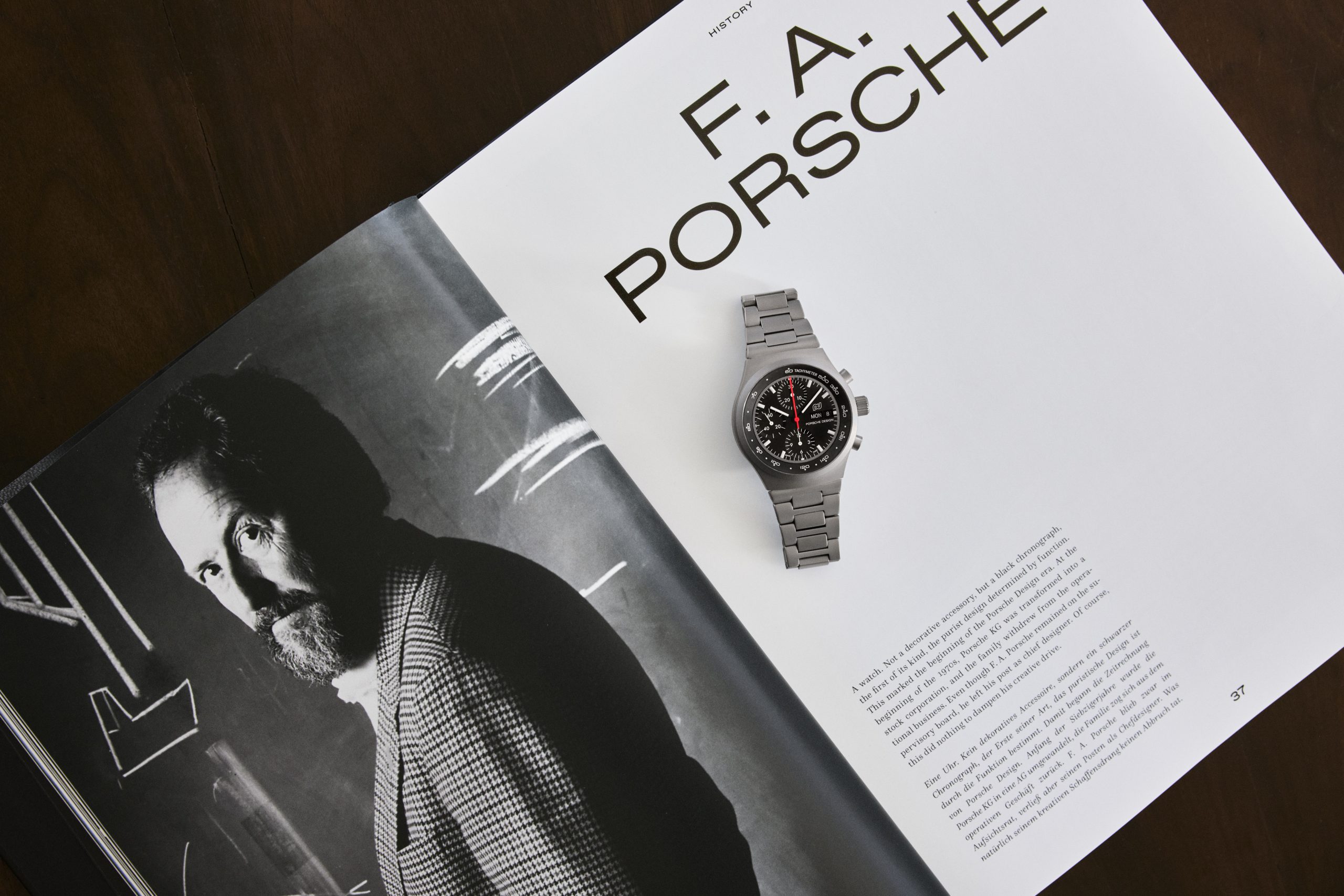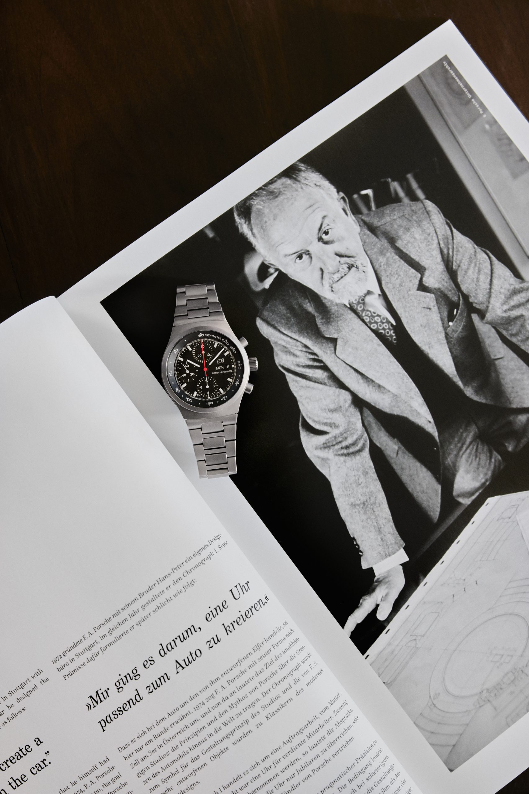 In den 1960er Jahren revolutionierte F. A. Porsche das Automobildesign mit der Kreation des Porsche 911 – ein bleibendes Symbol für Performance, Purismus und zeitloses Design. Sein Designethos, dass Form und Funktion gleichbedeutend sind, gilt auch heute noch für alles, was Porsche Design gestaltet. 1972 übertrug F. A. Porsche seine Vision des 911 auf die Horologie und revolutionierte die Uhrenindustrie mit dem ersten komplett schwarzen Chronograph I, der einen neuen Standard in Design und Funktionalität setzte. Nach dem Erfolg des Chronograph I aus schwarz beschichtetem Edelstahl verfeinerte F. A. Porsche 1975 dessen unverwechselbaren Charakter und kombinierte das schwarze Zifferblatt mit einem gebürsteten, unbeschichteten Edelstahlgehäuse. Das Ergebnis war eine funktionale Eleganz, die später die Grundlage für militärische Varianten bildete, die bei Eliteeinheiten der Luftwaffe und Marine ebenso begehrt war wie bei Liebhabern.