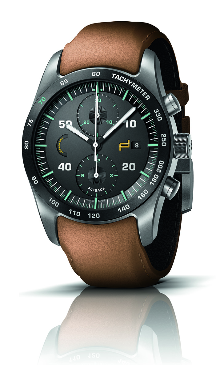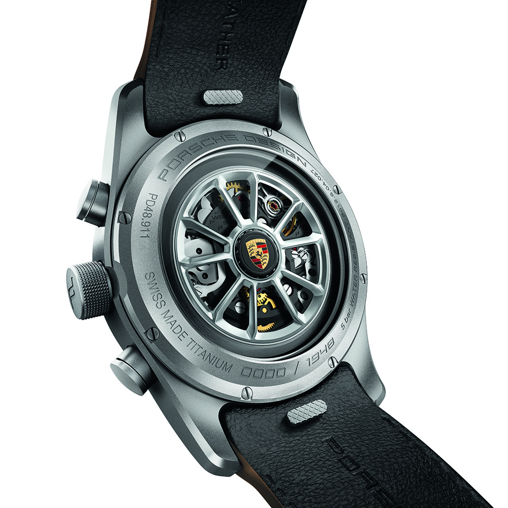Wie bei Porsche Design seit 1980 üblich, ist das Gehäuse, 42,0 x 15,3 mm groß und druckgeprüft bis 5 bar, aus Titan gefertigt. Das Hightech-Material, das bei Porsche seit Jahrzehnten erfolgreich unter anderem im Antriebsbereich eingesetzt wird, ist rund 40 Prozent leichter als Edelstahl und bietet neben optimaler Hautverträglichkeit und hoher Belastbarkeit auch höchsten Tragekomfort. Die schwarze Titancarbid-Beschichtung unterstreicht zudem die sportliche Gestaltung des Zeitmessers.
