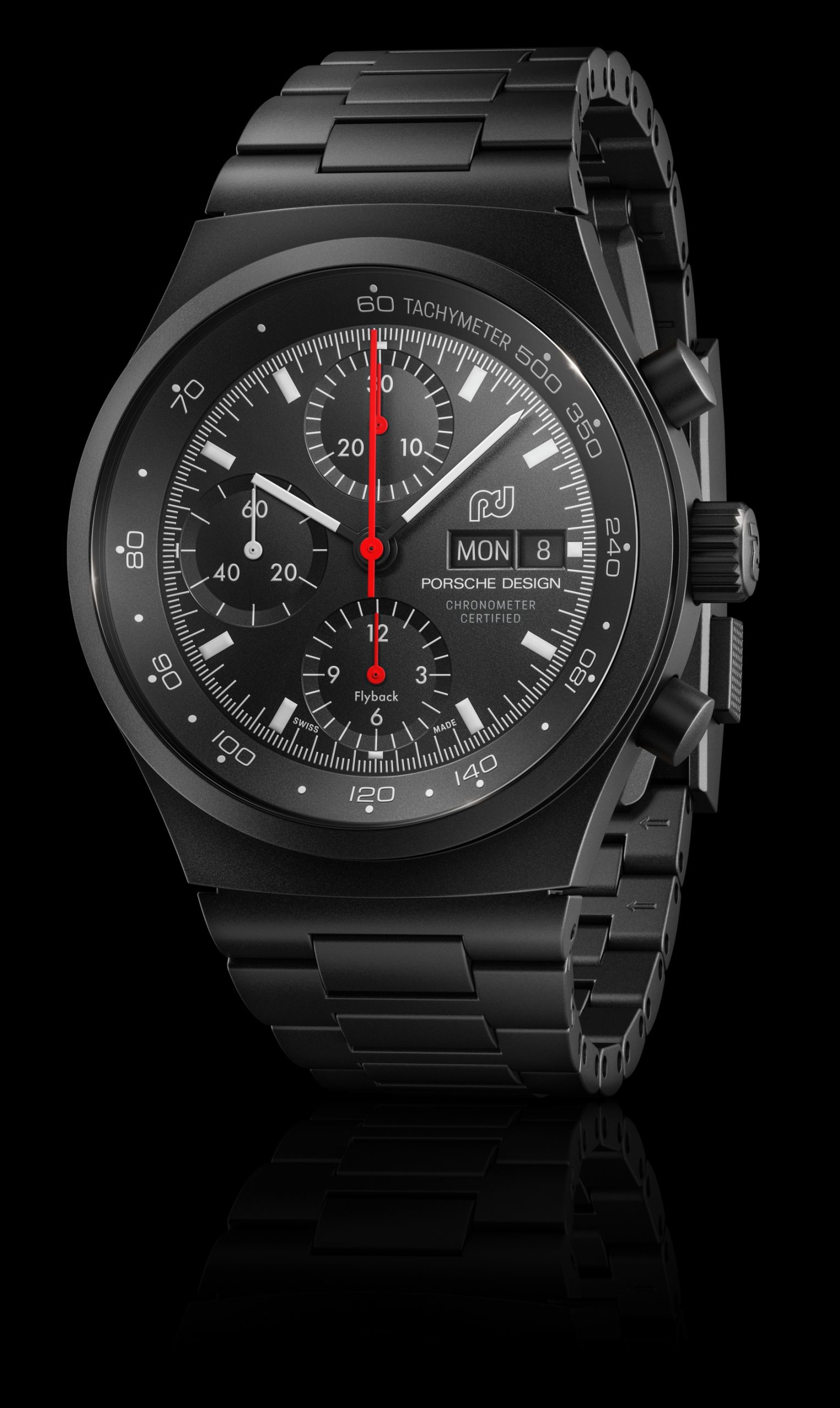 In 1972, Professor Ferdinand Alexander Porsche designed the Chronograph I, the world’s first completely black timepiece. This timeless, sporty precision instrument with a minimalist design followed the design principles of the Porsche 911, also designed by F. A. Porsche. By combining the black case with a low-reflection black dial, which ensured perfect readability, the Chronograph I was a revolution in the art of watchmaking and at the same time shaped the idea of the „sports car for the wrist“.