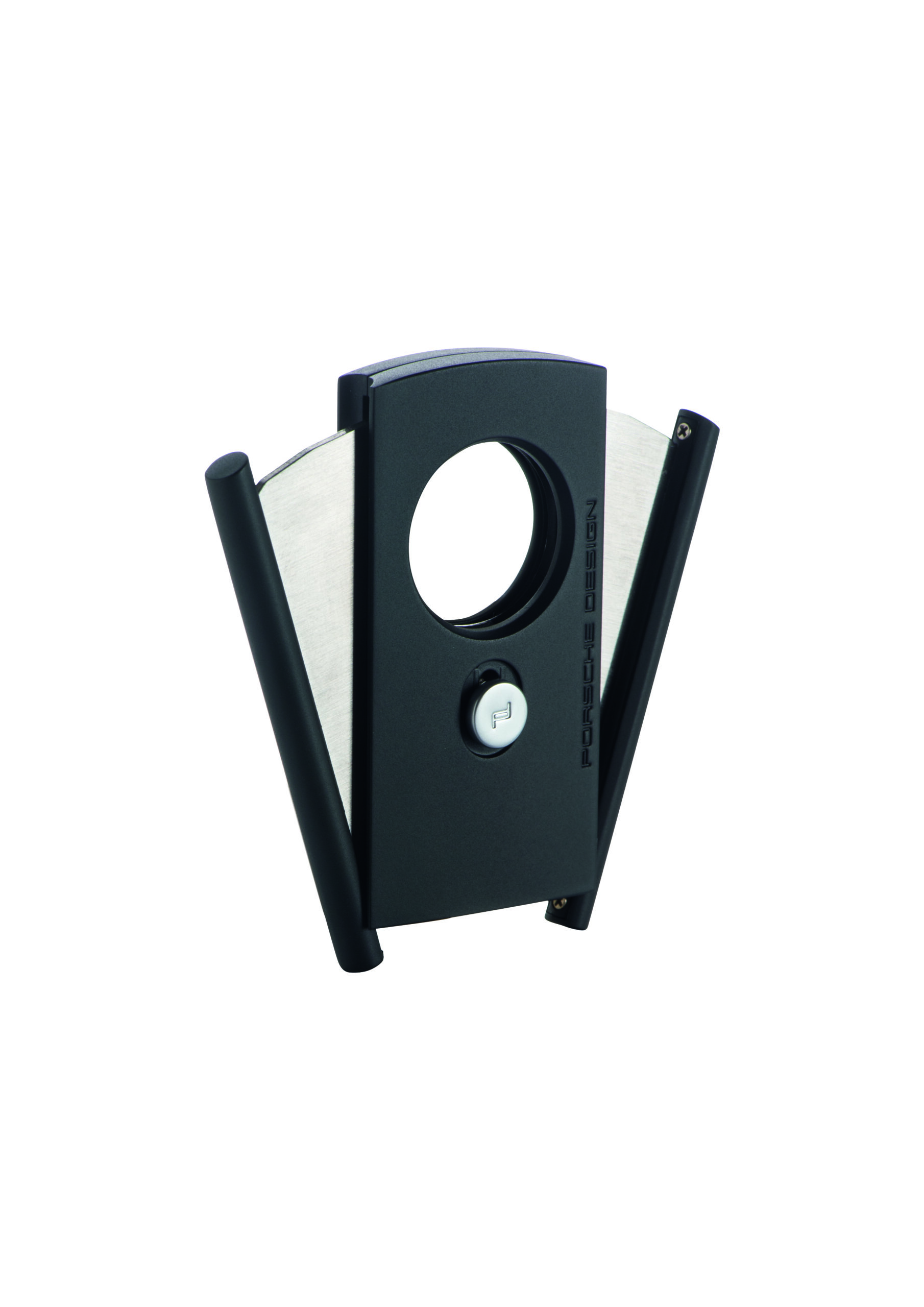Simple elegance and secure handling: Cigar cutter P‘3621 is the classic Porsche De-sign smoking accessory. The dual blades made from high-quality Japanese stainless steel guarantee a perfect cut by combining radial and axial motion. It has a ring gauge of 60. RRP EUR 115.00.