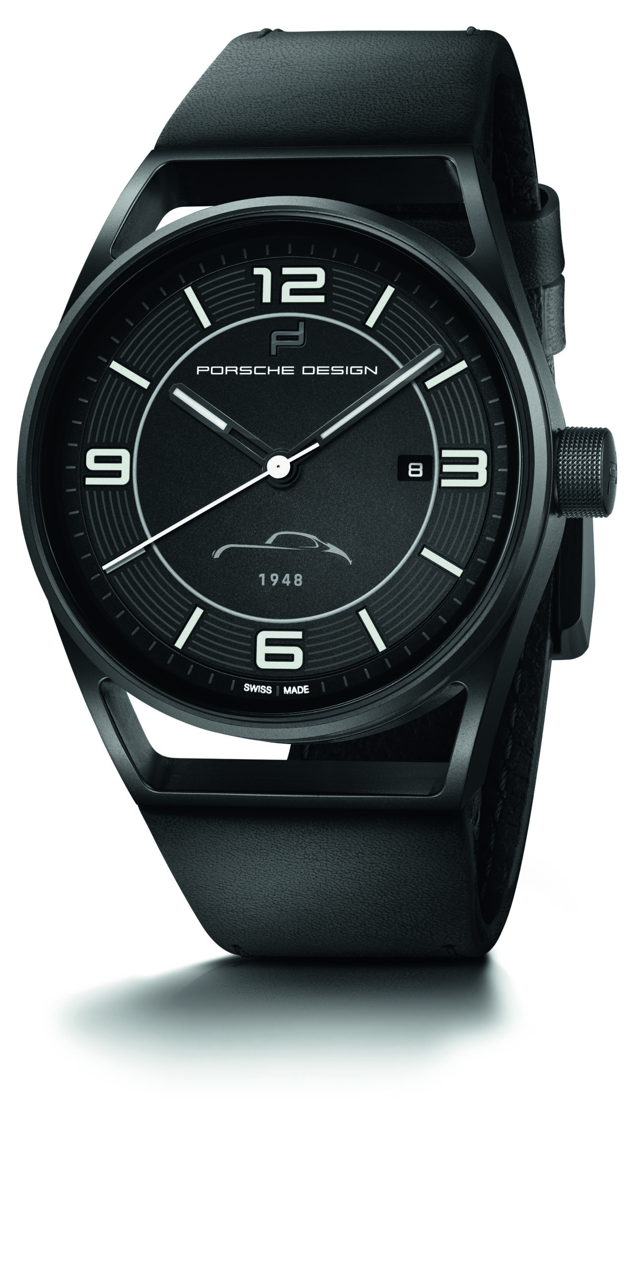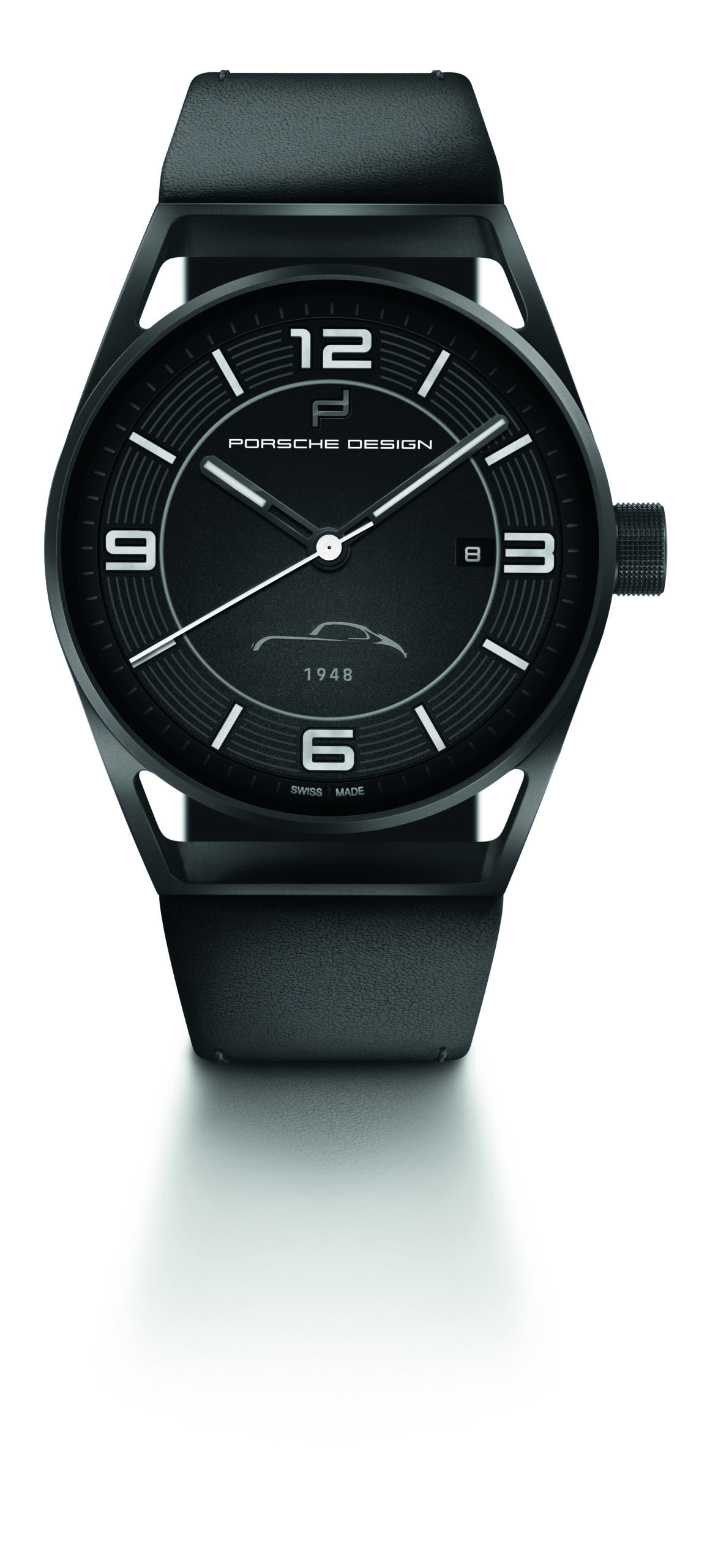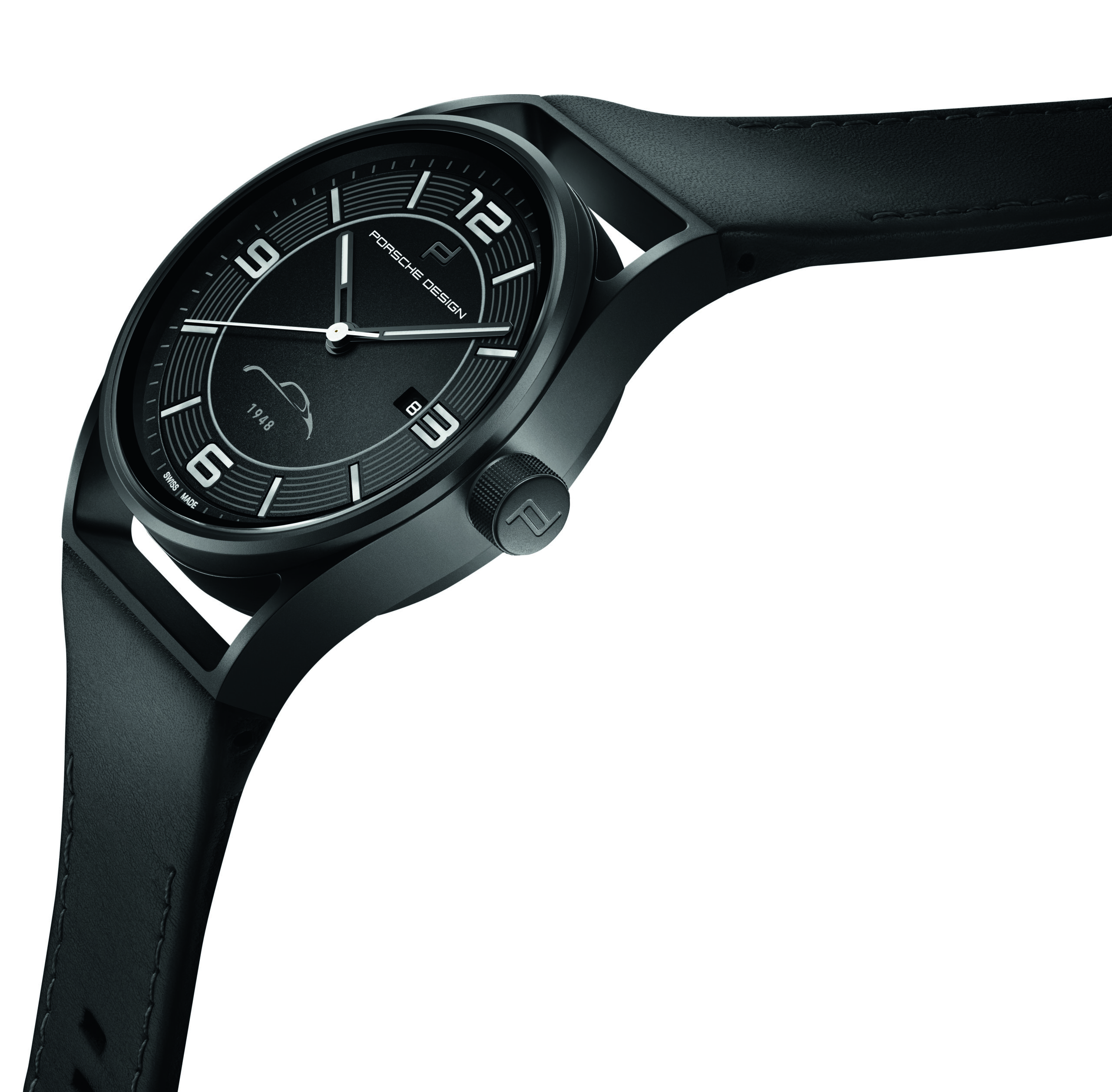 Decorated with the silhouette of the Porsche 356 and the year 1948, the watch commands attention with its clear and functional design. The dial includes the characteristic tachometer rings used in the dashboard of the legendary Porsche 356. In order to guarantee maximum contrast and readability, the hands are executed in white, and the three-dimensional ceramic numbers and indices are precisely inserted into the dial’s perfectly shaped, milled recesses. Even at night, they offer extreme brightness. The date window at “3 o’clock” ensures an easy-to-read display, without visually disturbing the dial’s minimal design. And just like the seats of Porsche sports cars, the bracelet of the anniversary watch is made of the highest quality leather.
