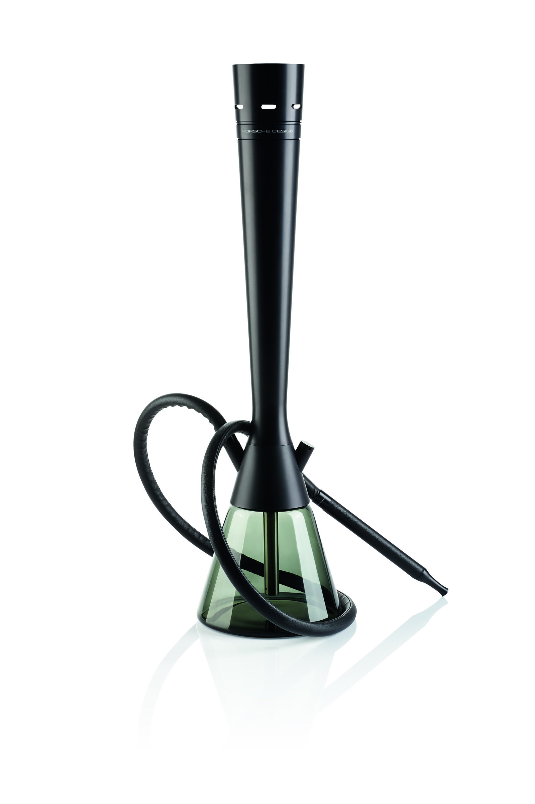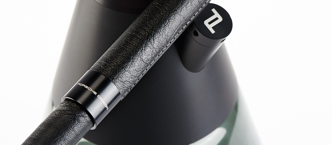 Delivering an exceptional user experience every time, Shisha 2.1 Black‘s shape, volume-improved tobacco head, and optimal windscreen fit all convey iconic, Porsche Design style. Details in black anodized-aluminum paired with a massive, hand blown, dark glass vase ensure an elevated look of the 73-centimeter-high water pipe. Both a hand-worked leather hose and tobacco head, made of heat-resistant ceramic, enhance the high-quality workmanship featured throughout.