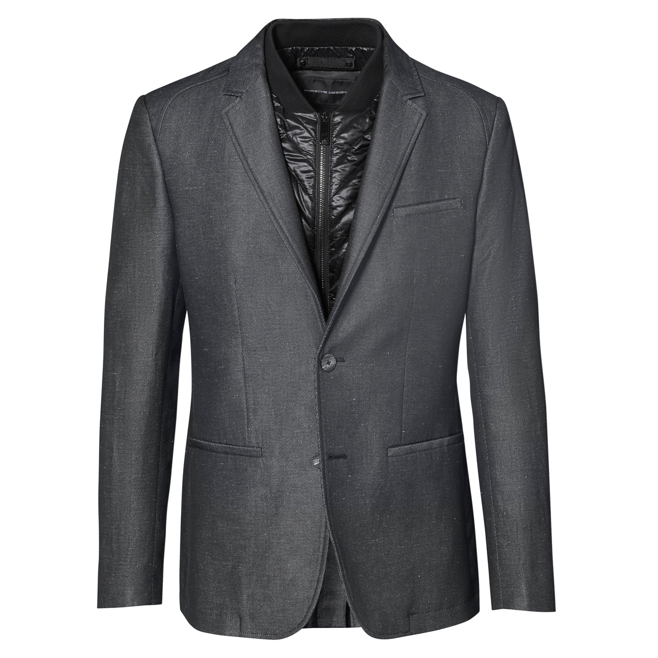 In addition to natural and technically refined materials, the collection features soft leather and textured knitwear. Unique patterns, clean graphical stitching, and me-tallic-effect surfaces create outfits packed with energy and character. The expres-sive Neon Mint, a shade that perfectly unites futuristic technology and nature, pro-vides a vibrant contrast to the basic hues of Asphalt, Black, White, Navy and Grey. Versatile pieces such as the Porsche Design 2-in-1 Leather Hybrid Jacket with re-movable sleeves or the Porsche Design Hybrid Electrified Blazer with padded ny-lon insert perfectly transfer the Porsche Design philosophy to modern life.