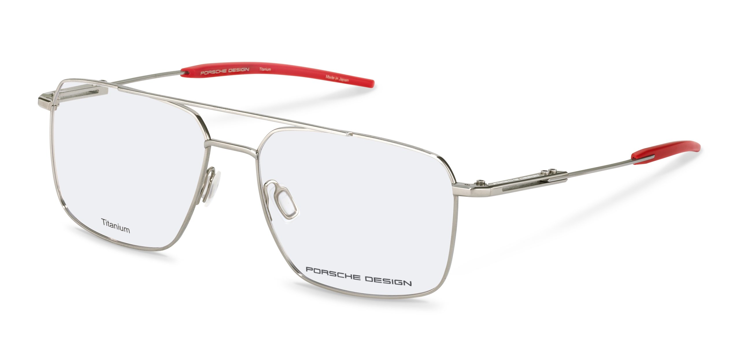 Completing the collection are the optical frames, made entirely from titanium. The P’8779 model, featuring a single bridge, is available in several combinations: black frame with red temple tips, dark grey frame with green temple tips, dark blue frame with blue temple tips, and gold frame with black temple tips. The series is rounded off by the P’8780 optical frame, distinguished by its double bridge design. This model is offered in a variety of color options, including black and grey, grey and dark blue, blue and black, and silver with red temple tips.