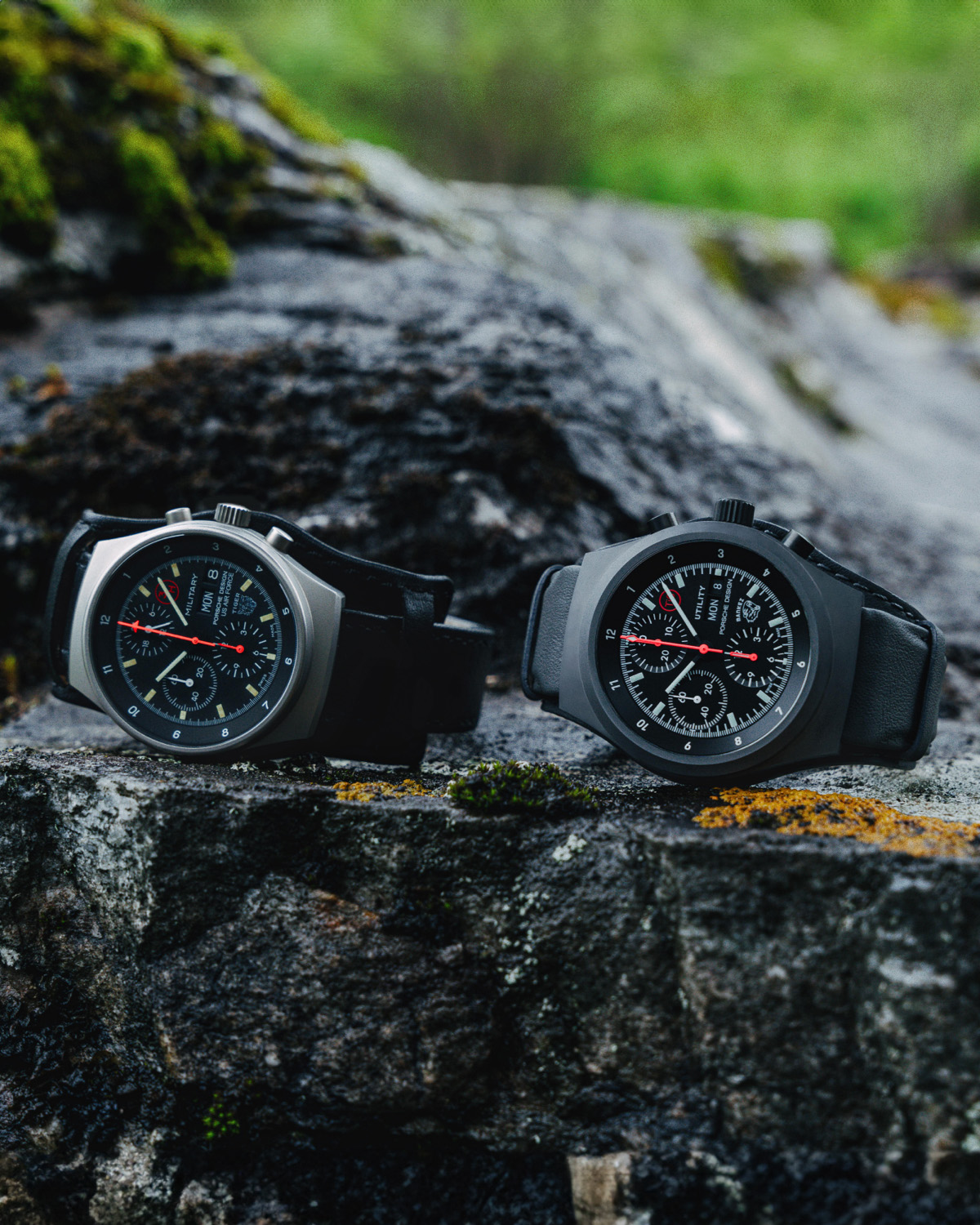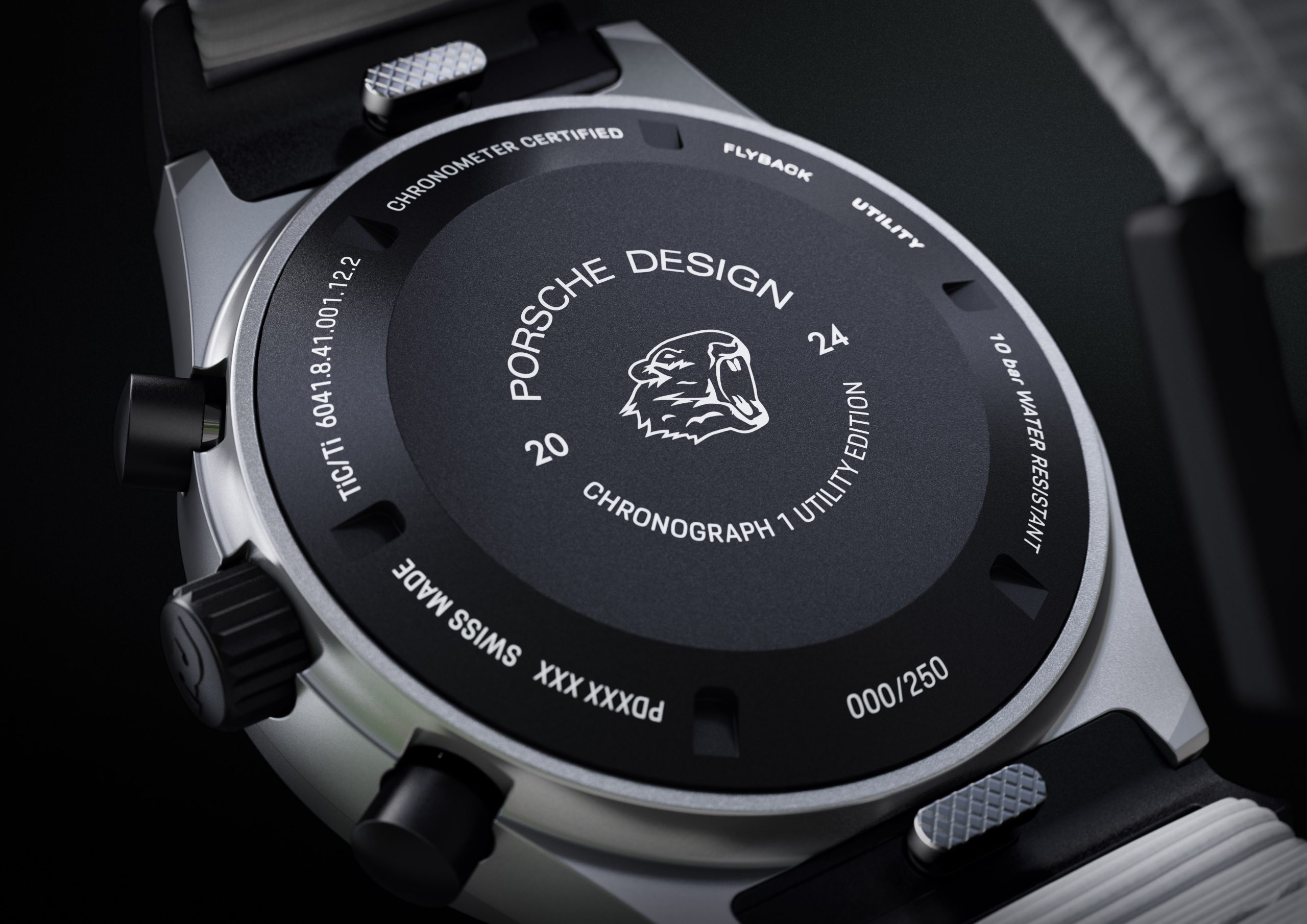 The Chronograph stands out technically with its ultra-precise WERK 01.240 caliber, which boasts COSC certification and a flyback function, enabling starting, stopping, and resetting in a single motion. The watch comes with a slate-gray calf leather strap, crafted from Porsche vehicle interiors, and a white textile strap, perfectly suited for winter sports and racing activities. The use of titanium carbide for the case sets new standards in durability and aesthetics. This revolutionary material, developed and patented by Porsche Design, makes the case significantly more robust, exceptionally scratch-resistant, and, compared to its steel predecessor, extremely lightweight and hypoallergenic. The Chronograph 1 Utility – Limited Edition thus combines exceptional design, top-tier functionality, and advanced technology, making it a stylish companion for any adventure.