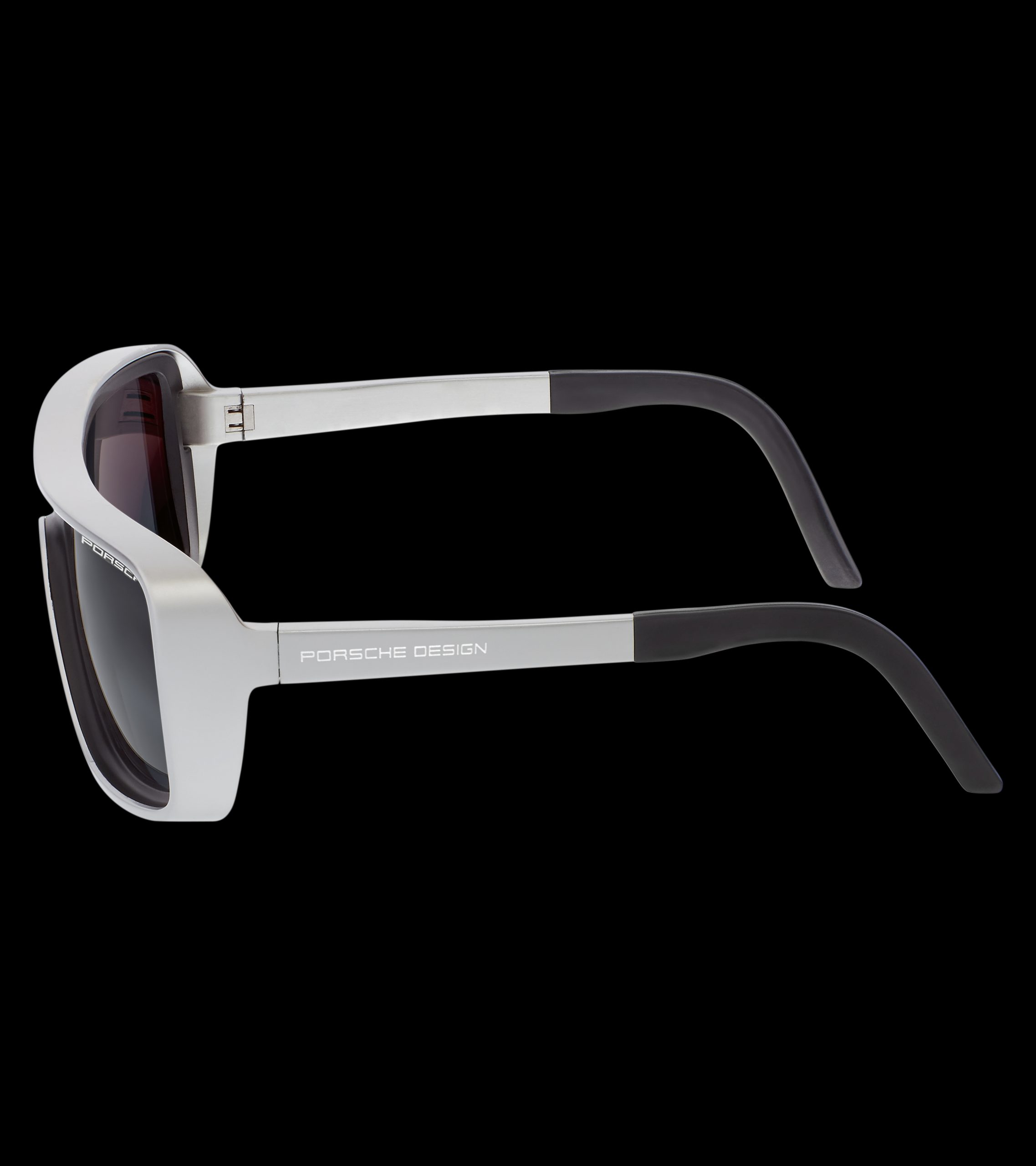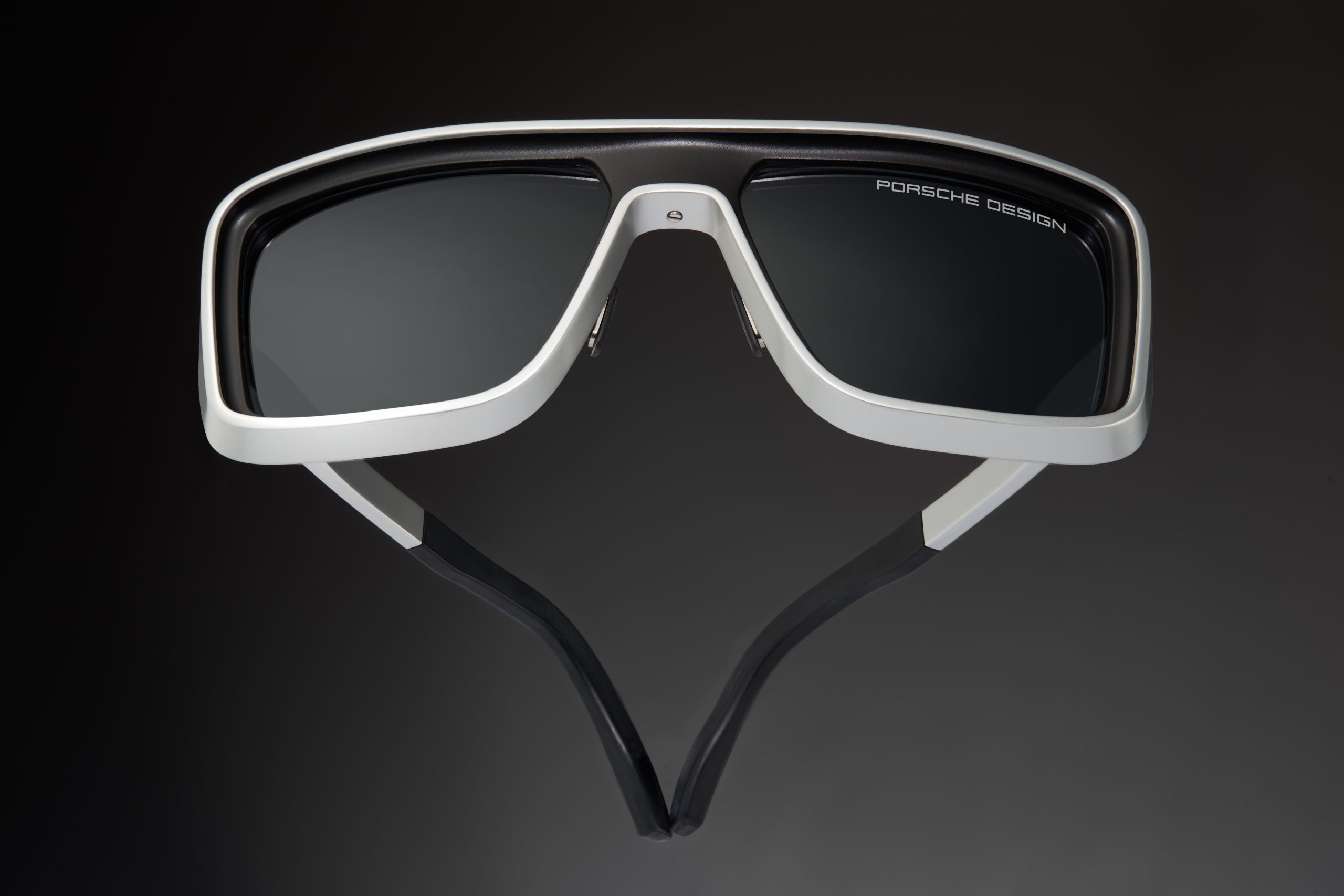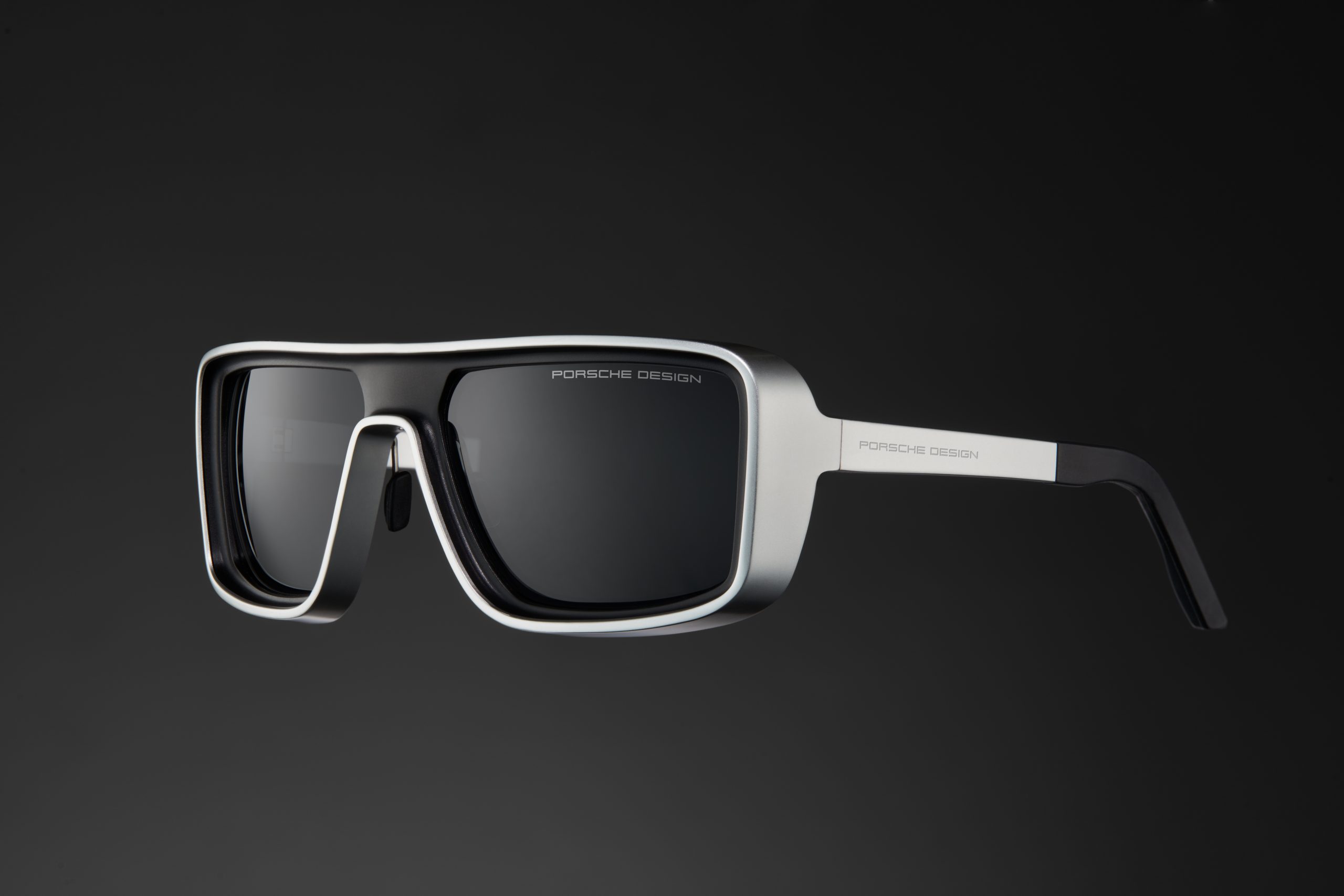This effect is enhanced by the harmonious combination of aluminum and the high-performance polyamide RXP®—two materials with different surfaces and colors. Despite their bold form, the sunglasses surprise with their lightness, achieved using high-quality materials and their processing. Another detail is the elegant integration of the temples into the frame, creating another unique curve.