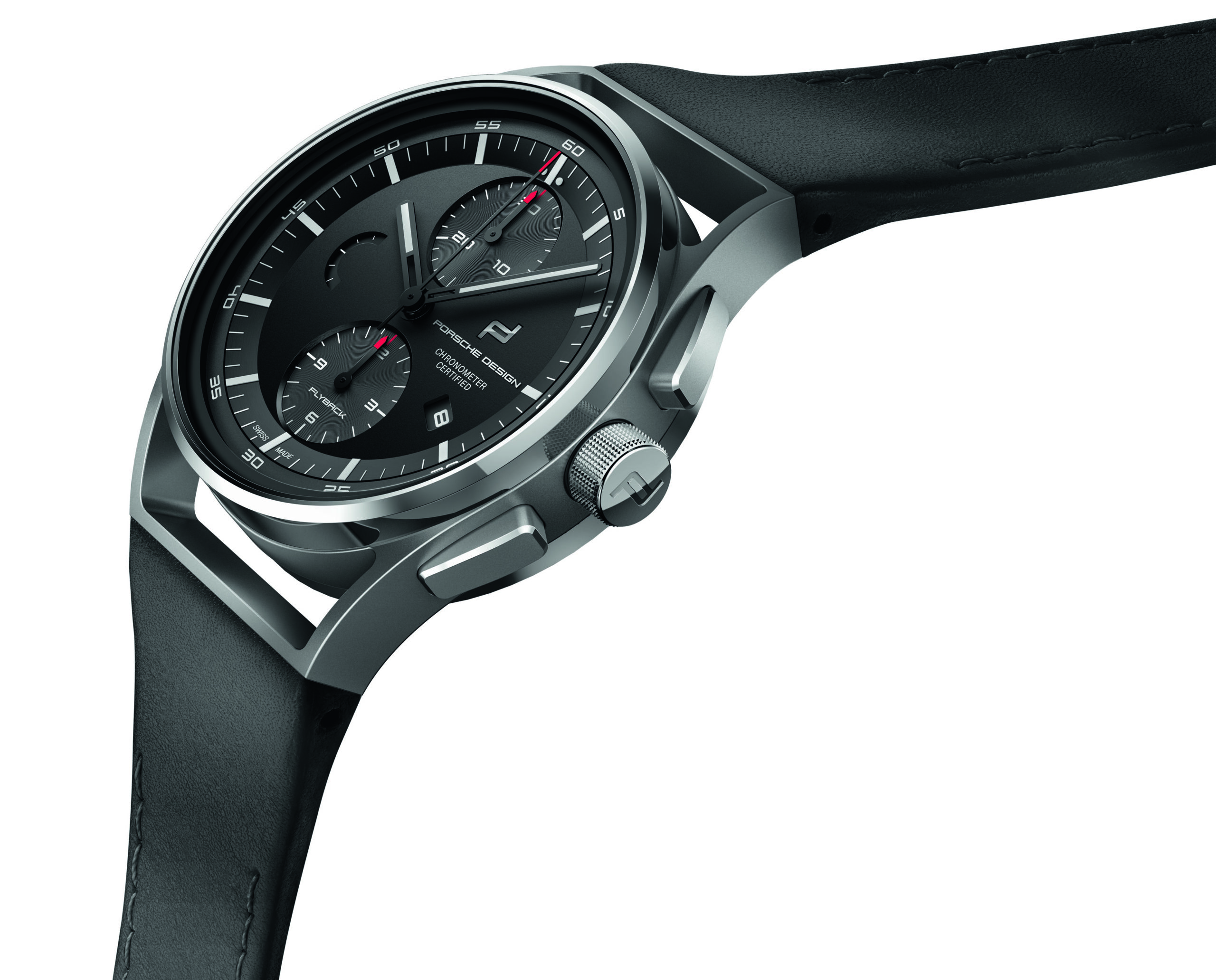 Porsche Design expands its series of 1919 Collection timepieces with the introduction of the 1919 Chronotimer Flyback Black & Leather. Paying meticulous attention to detail, intelligent design meets maximum functionality, putting the Porsche philosophy directly on the wrist. Tested and certified by the official Swiss Chronometer Testing Institute (COSC), the innovative 1919 Chronotimer Flyback Black & Leather – in addition to its technical features – stands out and competes through use of its sophisticated silhouette and subtle design cues.