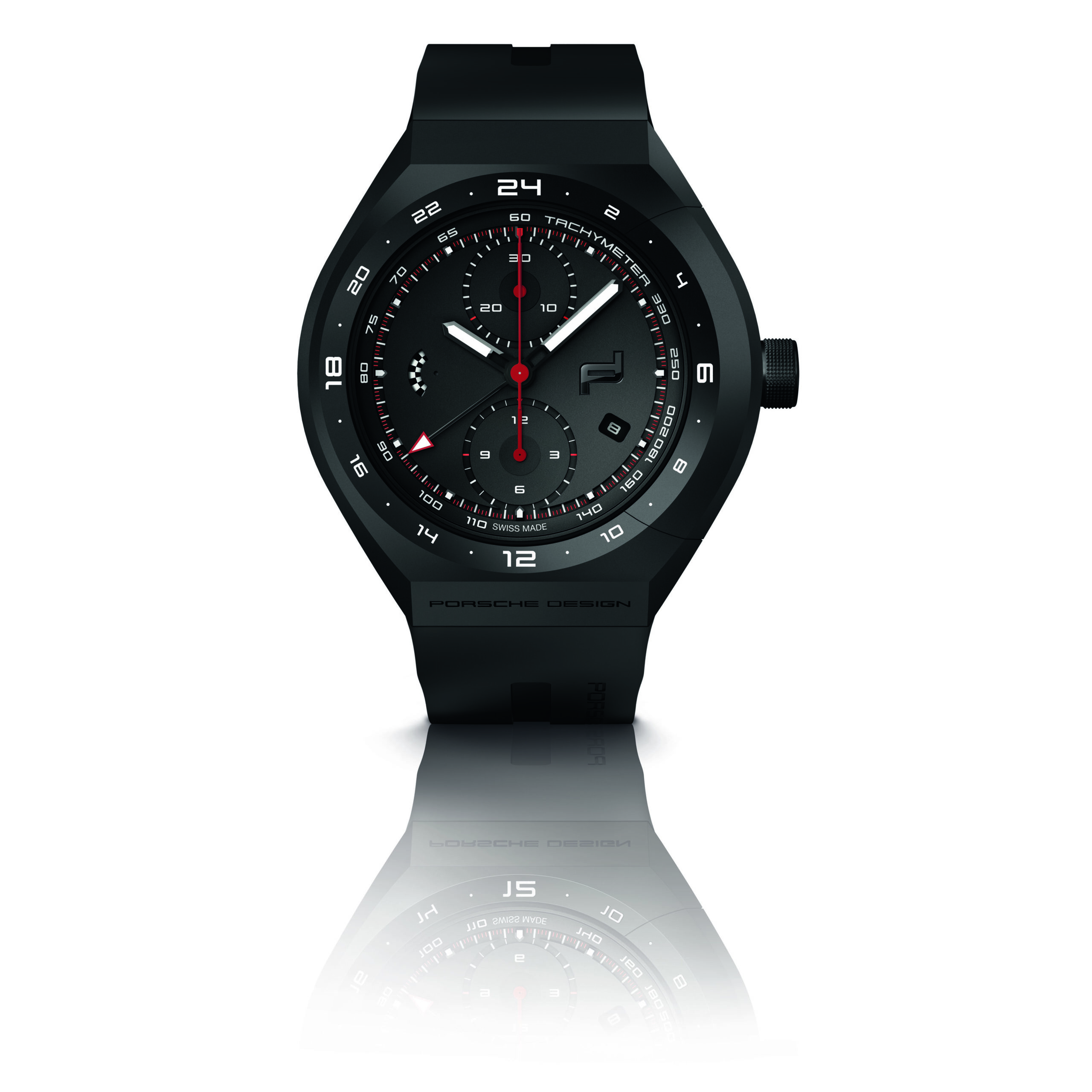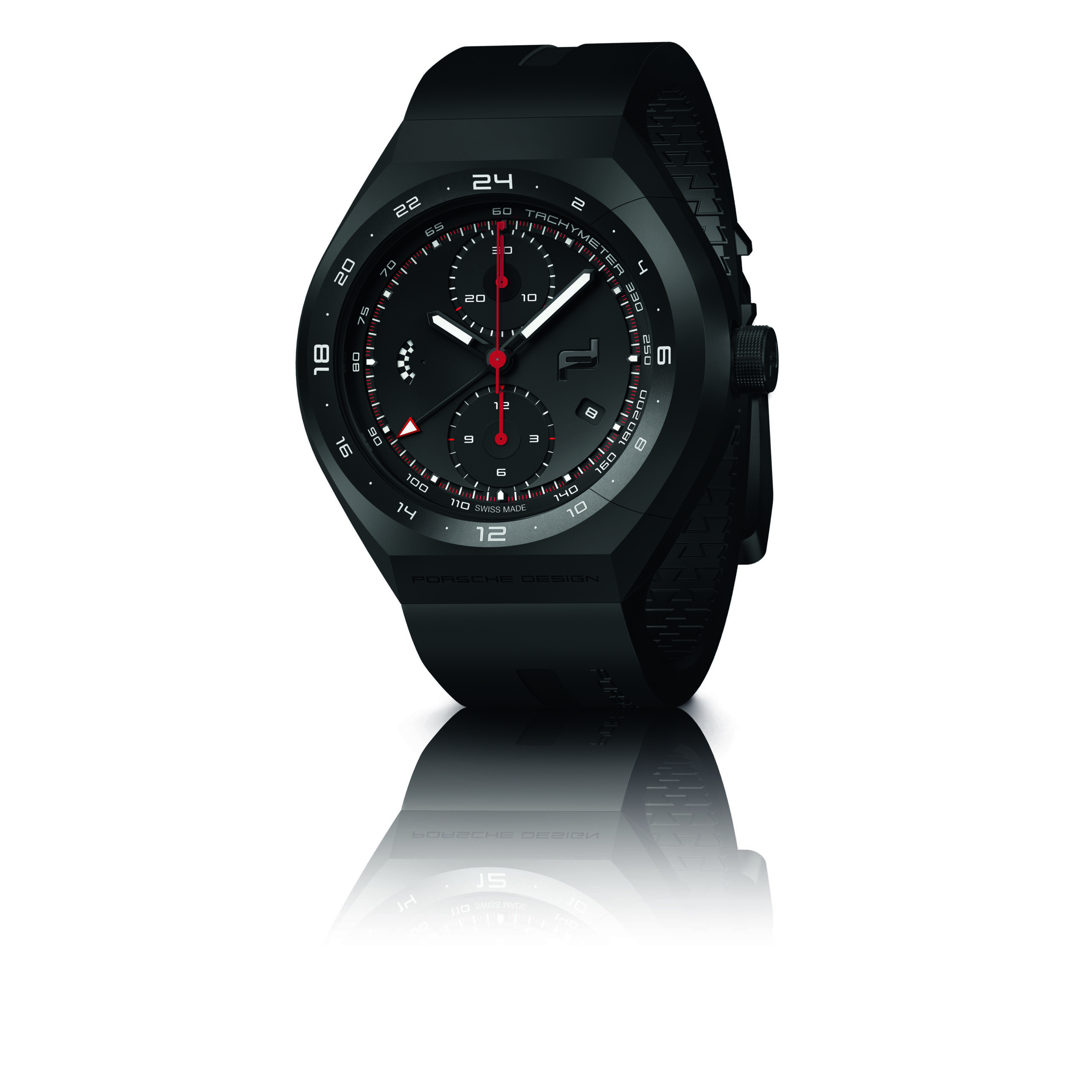 The MONOBLOC ACTUATOR 24H-Chronotimer features an innovative black titanium-carbide coating over its titanium case, a matte black dial, and a checkered-flag-design function indicator at “9 o’clock” – especially useful due to its optimal readability. This model is exclusively available on a rubber strap with deployment buckle.
