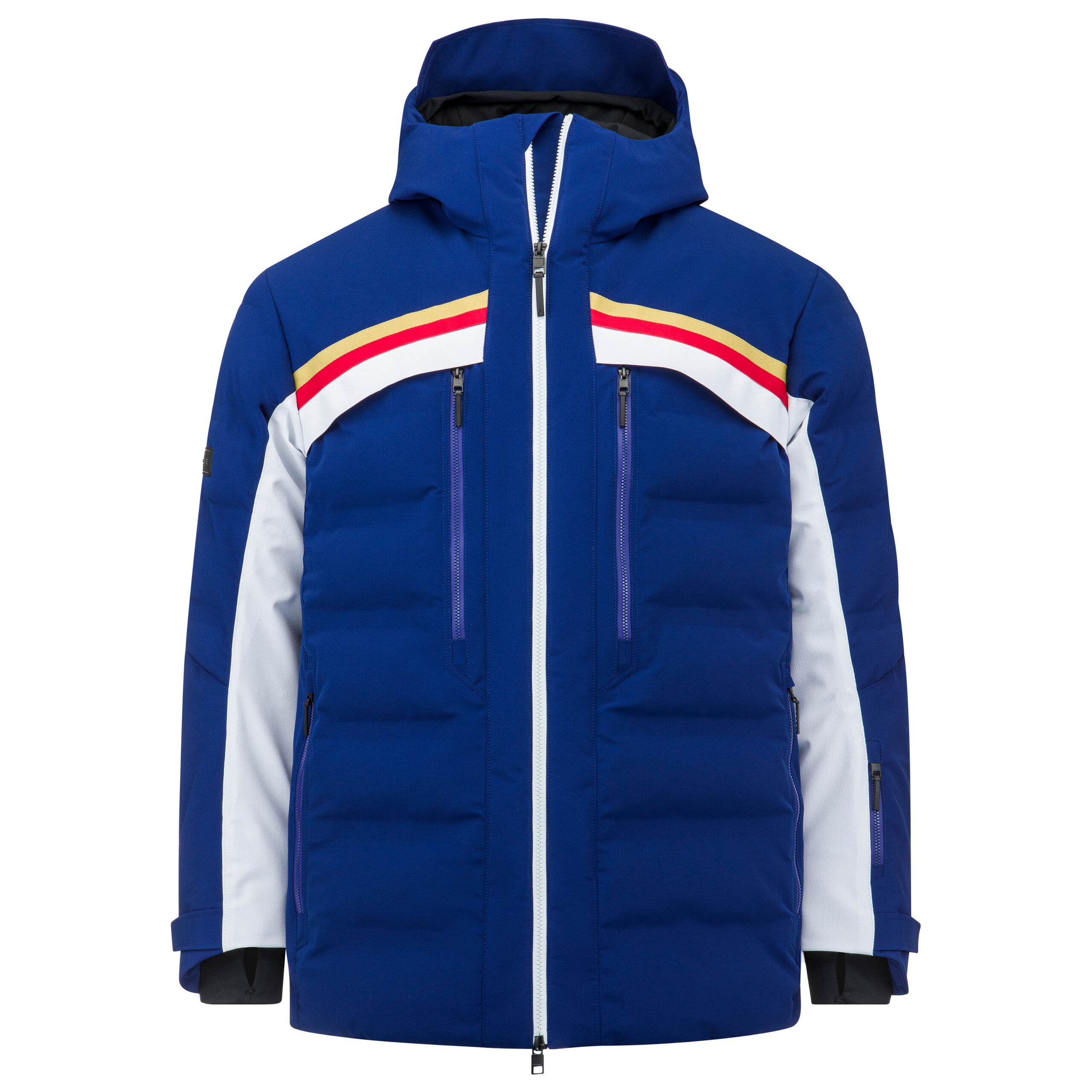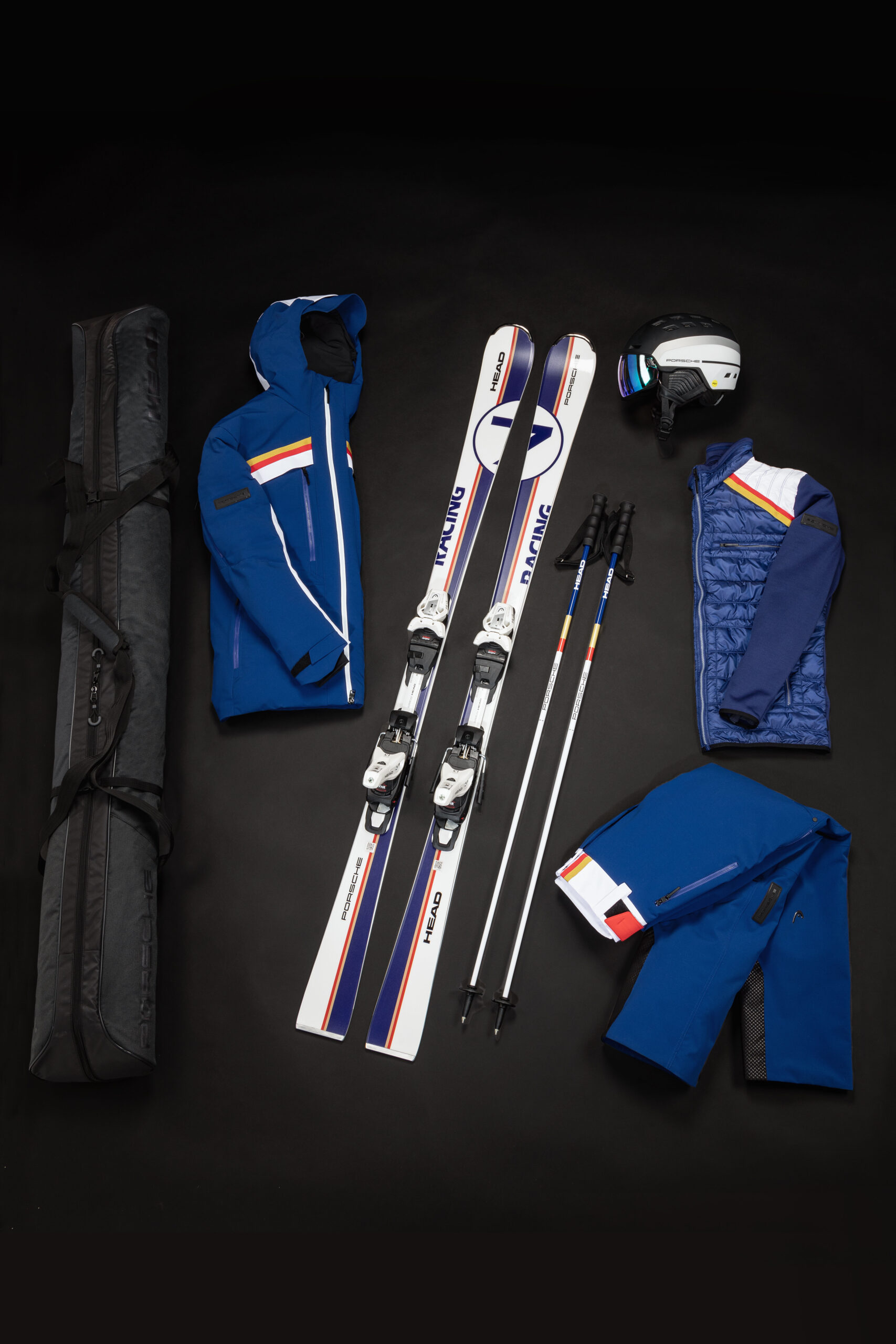 For the PORSCHE | HEAD collection, technically sophisticated men’s apparel was designed in a timeless design. The skiing jacket and pants are warm and snug, thanks to PrimaLoft ThermoPlume and PrimaLoft Black padding. The IAM membrane, specially developed by HEAD Sportswear, protects against wind and moisture. Exclusively environmentally friendly, PFC-free fabrics are used. The MXM technology offers intelligent climate management, in which sweat is transported to the surface of the material and evaporates there. With blue and white and accents in red and gold, the design of the collection picks up the colors of the skis, creating a distinctive head-to-toe look.