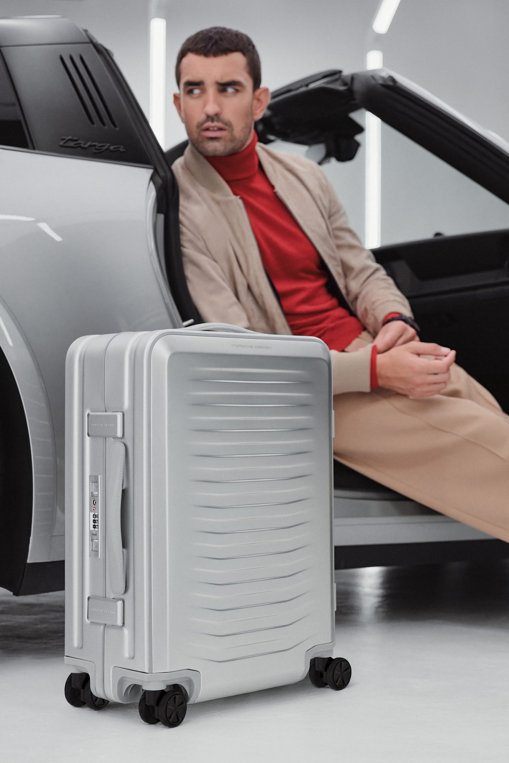 Another design element that pays homage to the elegant Porsche 911 Targa is the front design, whose curvature echoes the aerodynamic front lines of the 911 from a bird’s-eye view. These powerful lines seamlessly flow toward the sides, embodying the unmistakable look —sportsmanship and elegance — that defines Porsche Design. The choice of aluminum is as deliberate as the design itself — a robust material that, like the 911 Targa, offers maximum security, a sporty yet elegant appearance, and captivates both Porsche enthusiasts and design aficionados alike. A unique feature of the material is that just as the mileage of a car tells the story of unforgettable road trips, the aluminum luggage develops its own individual patina over time, making each piece truly one of a kind.