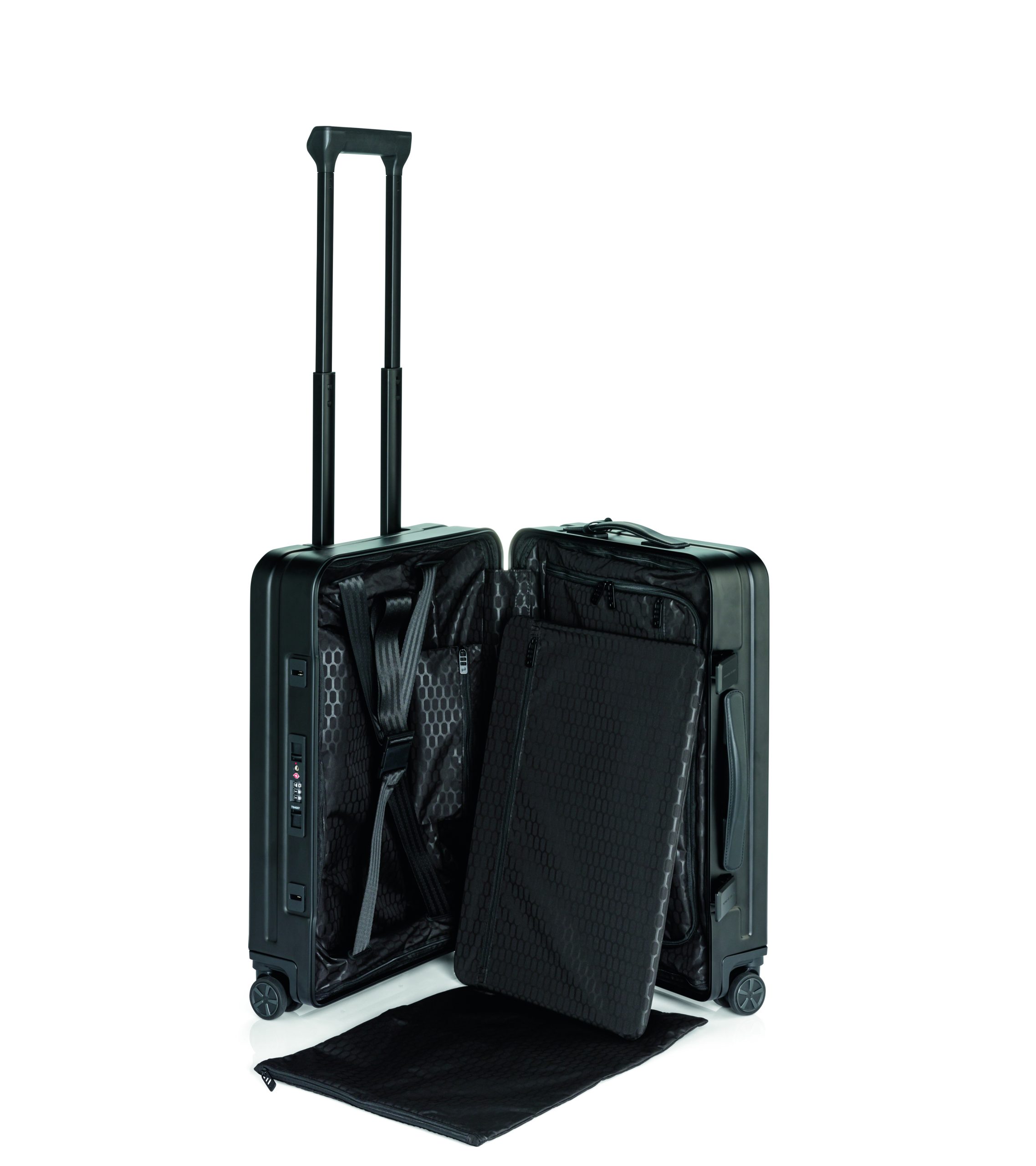 Just as the Targa concept redefined the driving experience of Porsche, the new suitcase by Porsche Design aims to set new standards in the world of travel luggage. The Roadster Aluminum features a stabilizing frame. Inspired by the manufacturing process of a car body, the front and back panels of the trolley are stamped and then attached to the frame. This gives the luggage a clean and modern design without visible rivets or traditional corner joints.