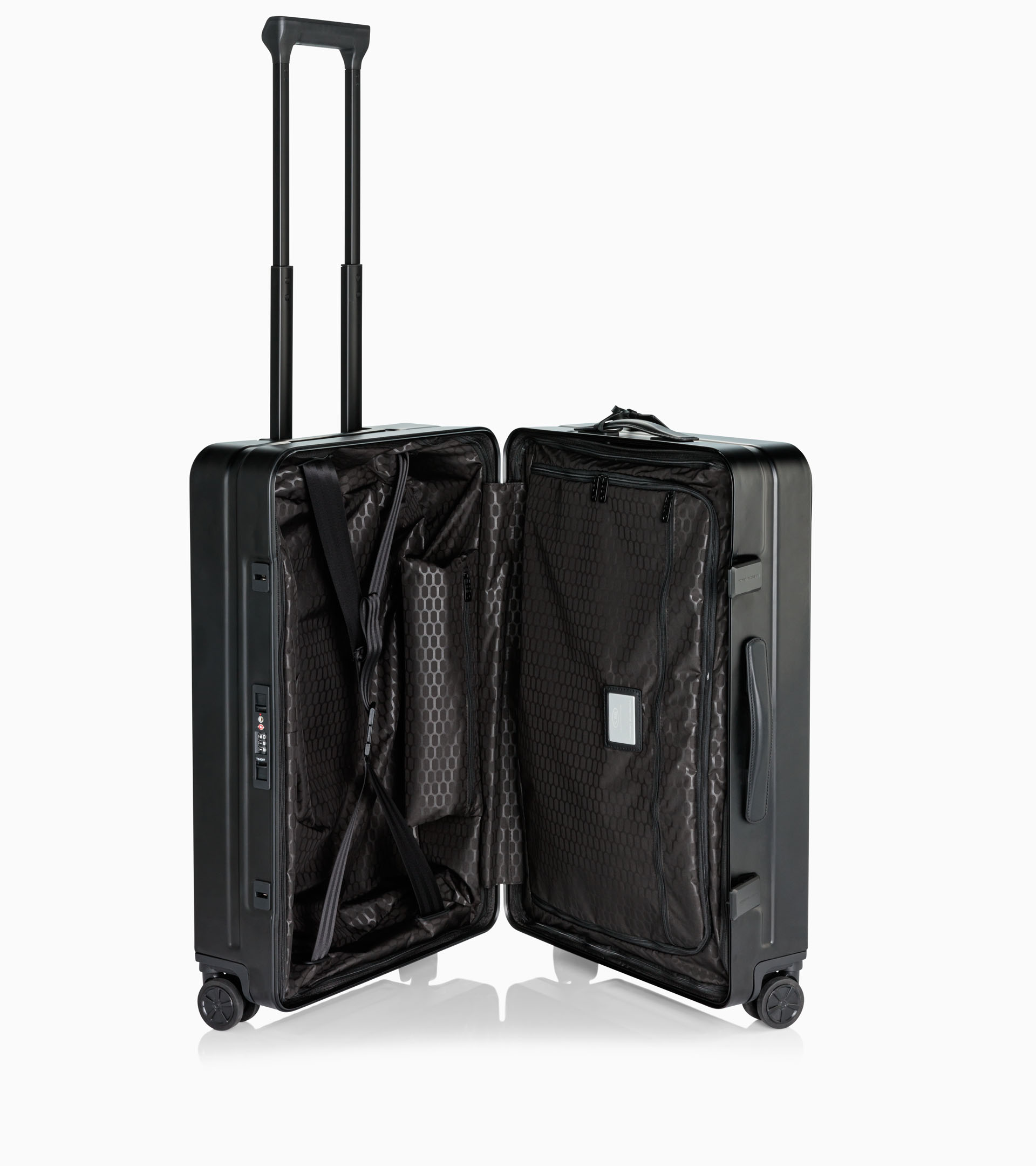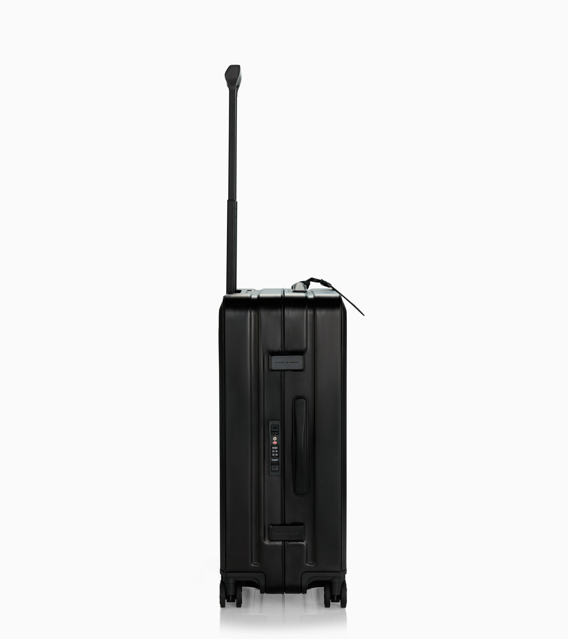 With the introduction of the new Black colorway, Porsche Design consistently evolves the Roadster Aluminum series, adding a further model to the collection. Its reduced design language and clean lines follow Porsche Design’s signature philosophy. The result is a synthesis of innovation and heritage that defines the Roadster Aluminum. The Roadster Aluminum remains true to its origins: as a tribute to the iconic Porsche 911 Targa, it echoes the design language of the so-called safety cabriolet, whose brushed aluminum roll bar set new standards in 1965 and continues to shape the unmistakable identity of the Porsche brand to this day. The principles of protection, stability, and precision are reflected both in the material and in the clear, reduced construction. Inspired by automotive body manufacturing, the front and back panels of the trolley are stamped and then mounted onto a stabilizing frame. This process results in a clean, contemporary design – free from visible rivets or traditional corner joints.