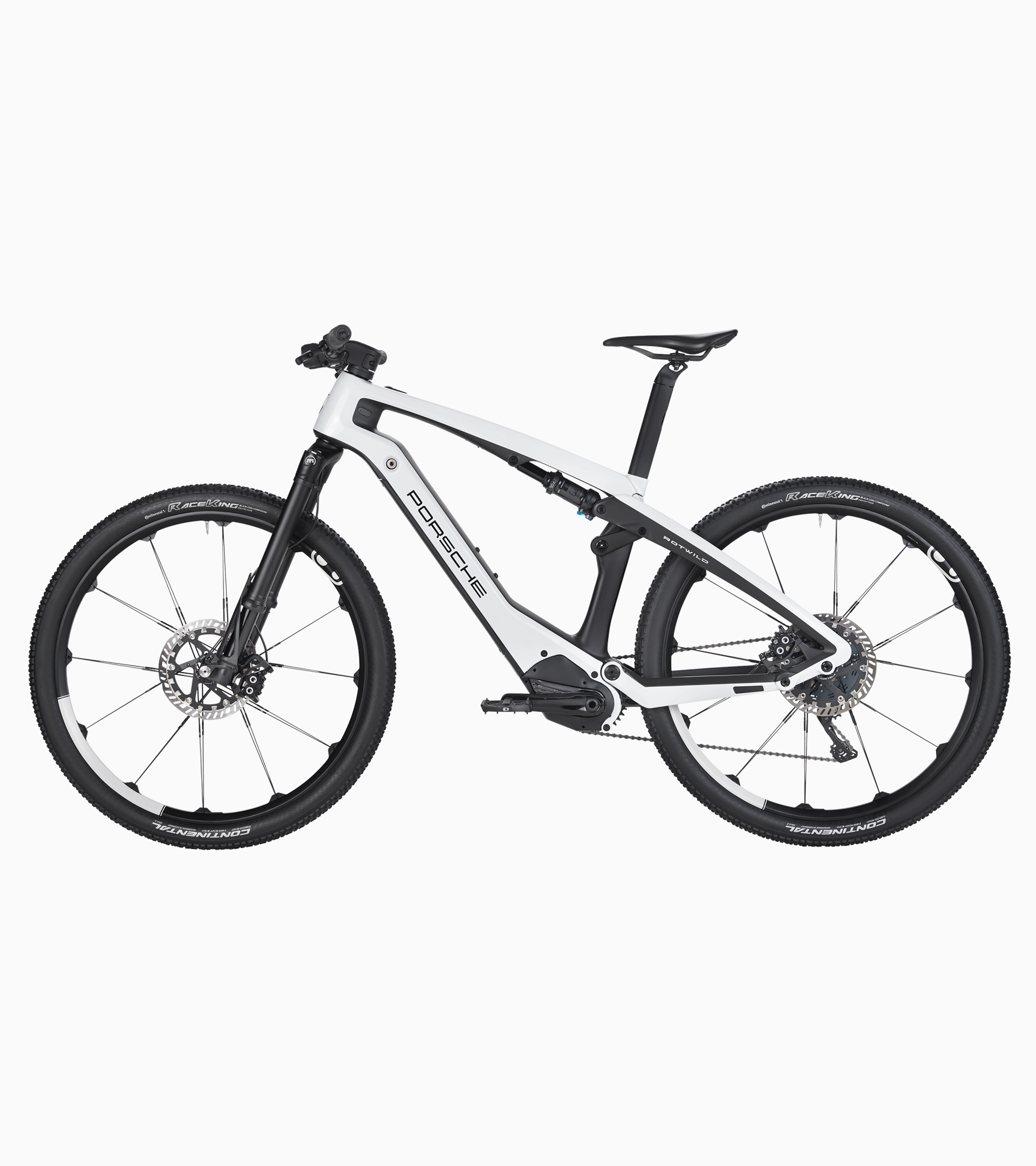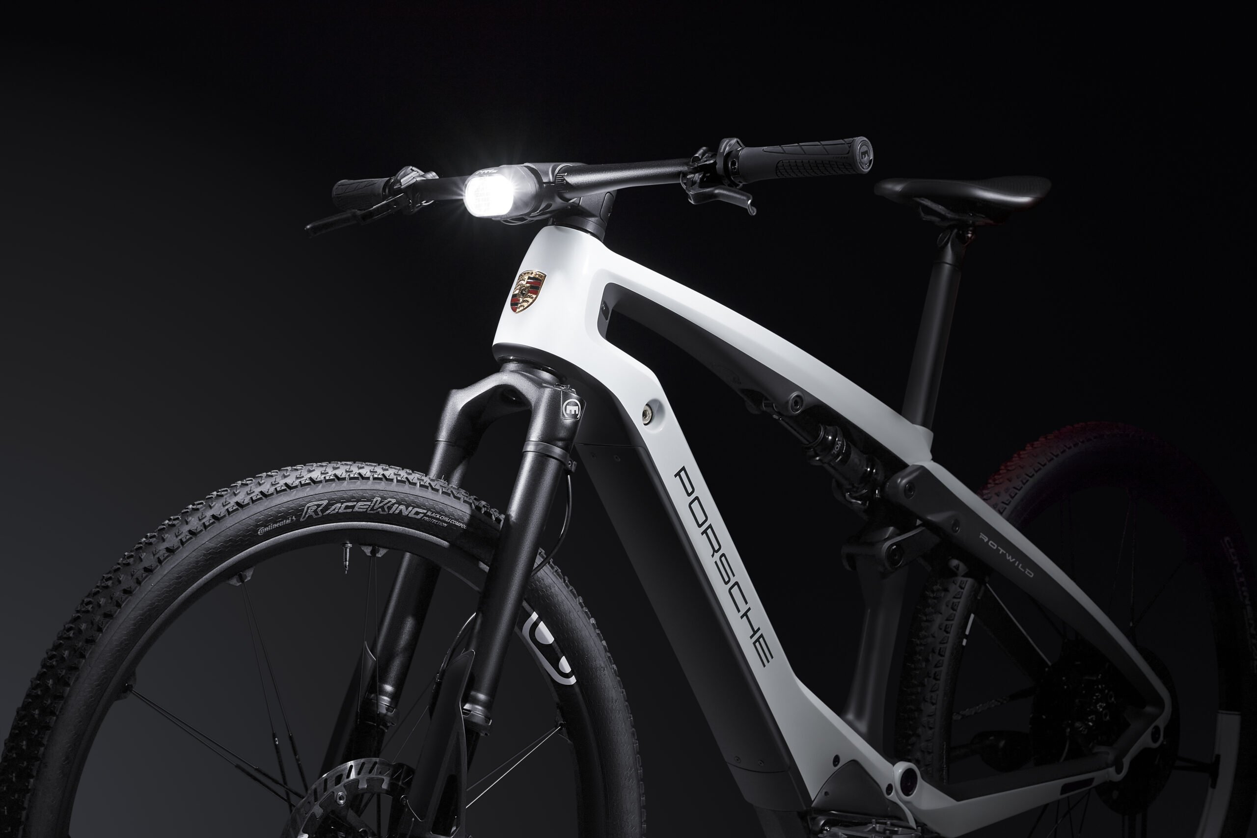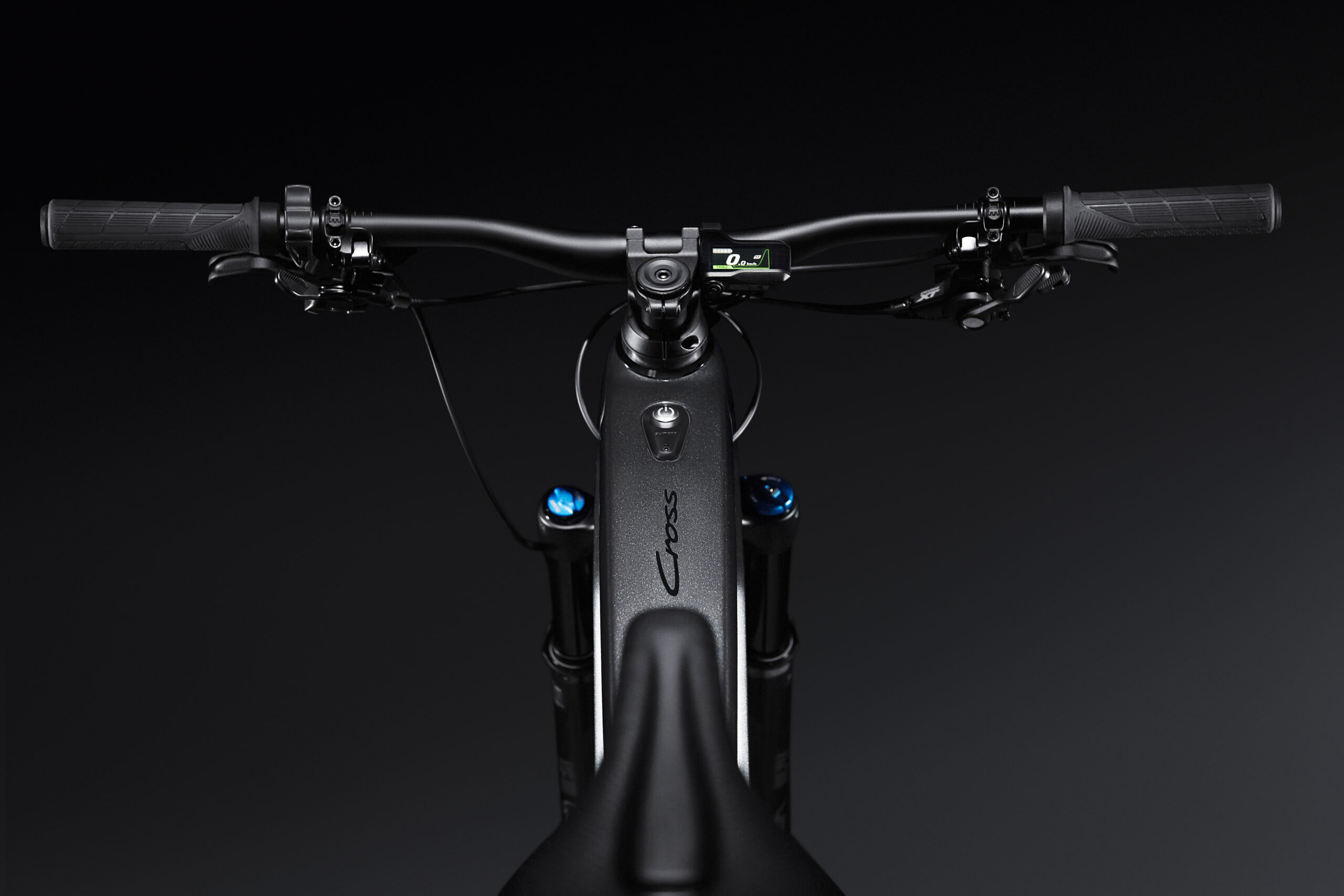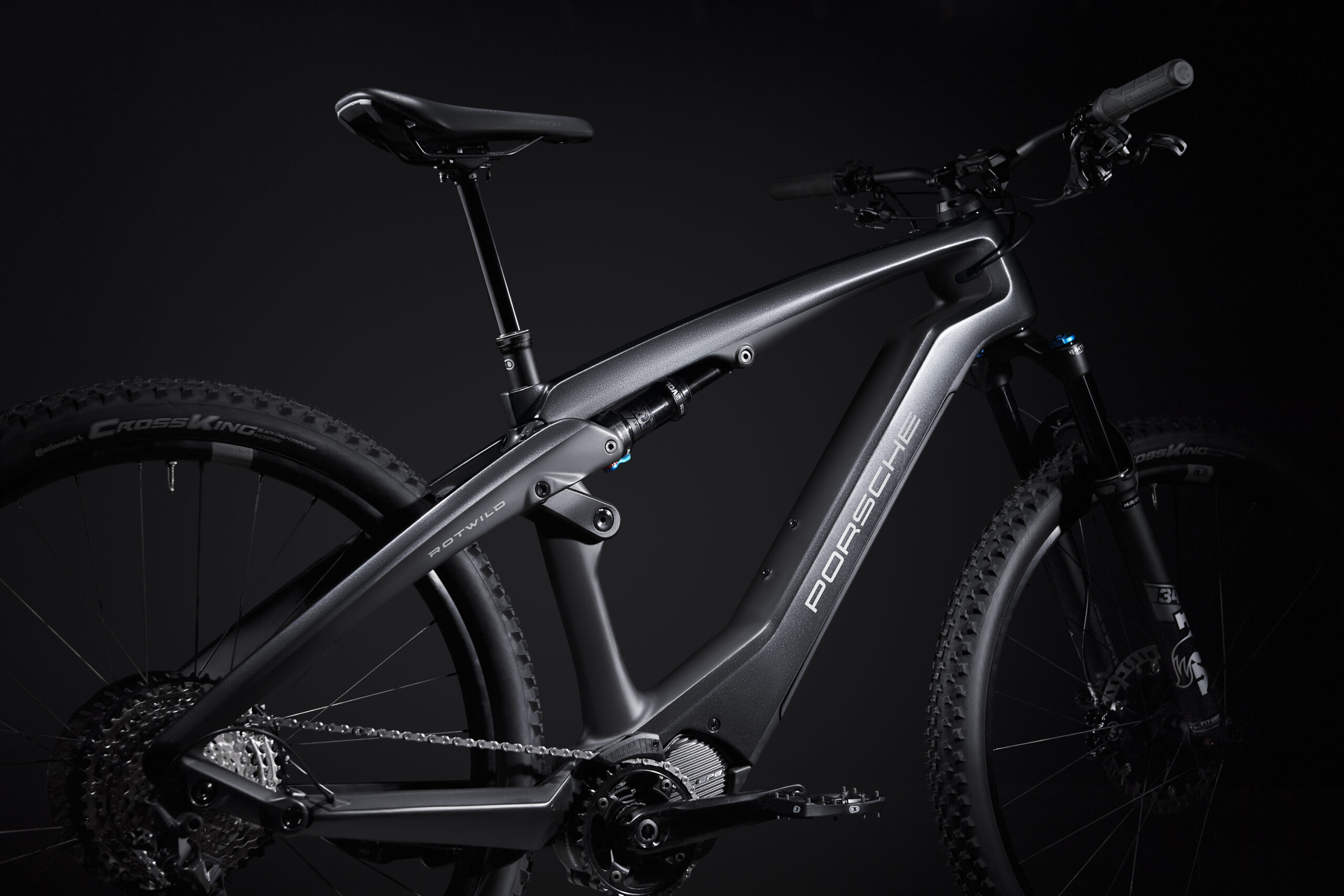 The Porsche eBike Cross comes into its own away from paved roads. Especially uphill, in difficult terrain, the powerful EP-8 engine newly developed by Shimano really shines and supports the rider with maximum performance and a natural driving experience. The Magura-MT trail disc brakes—with brake discs optimized for e-bikes—ensure optimal deceleration, while the Shimano XT rear derailleur guarantees quick gear changes depending on the requirements and terrain. The hydraulically adjustable Crankbrothers seat post ensures an ideal and quickly adjustable seating position with maximum freedom of movement. The new Fox 34 Performance suspension fork with 120 mm of travel, in combination with the Fox Float DPX damper with 100 mm of travel in the rear, ensures a gentle ride and expands the bike’s range of applications.