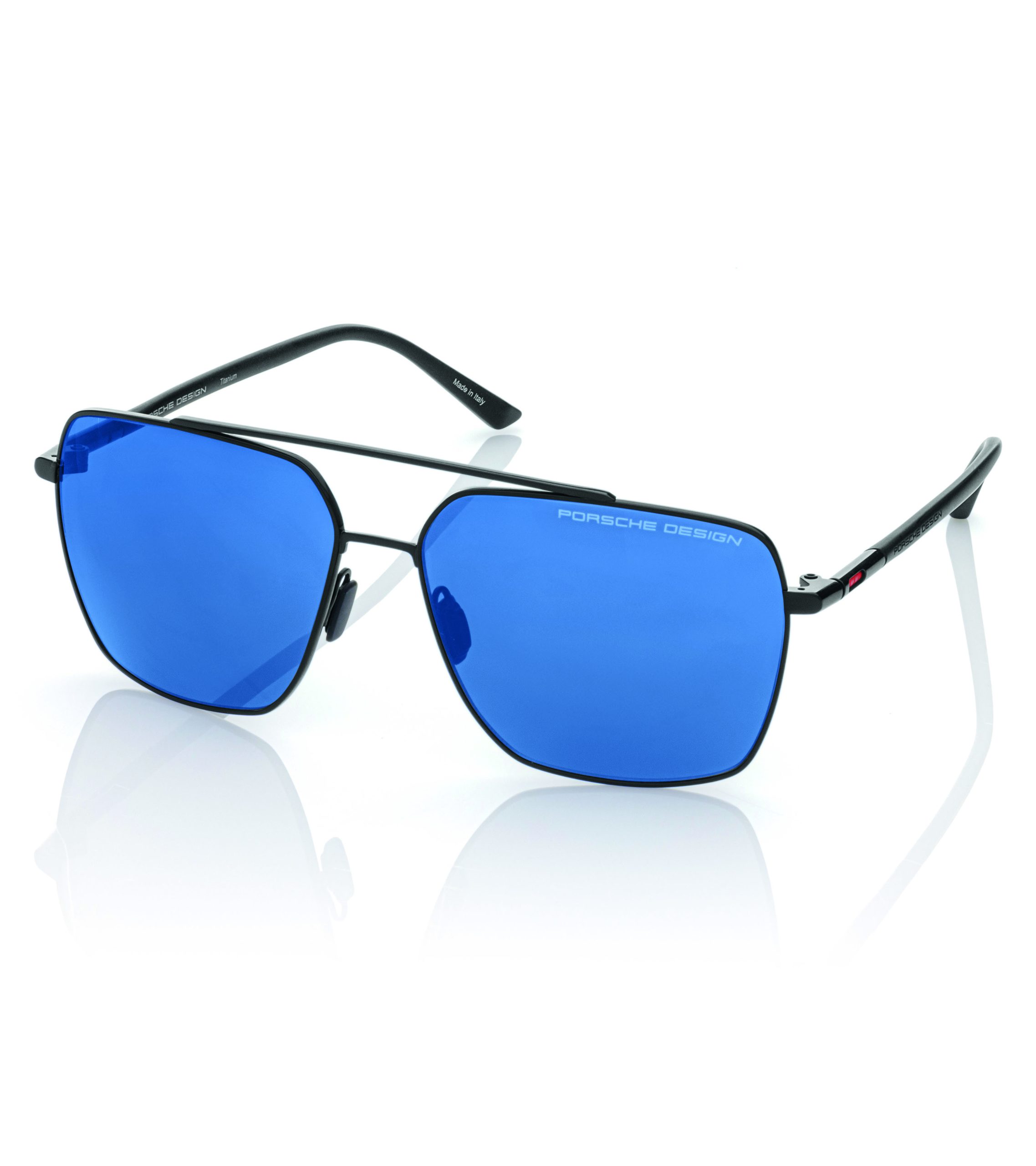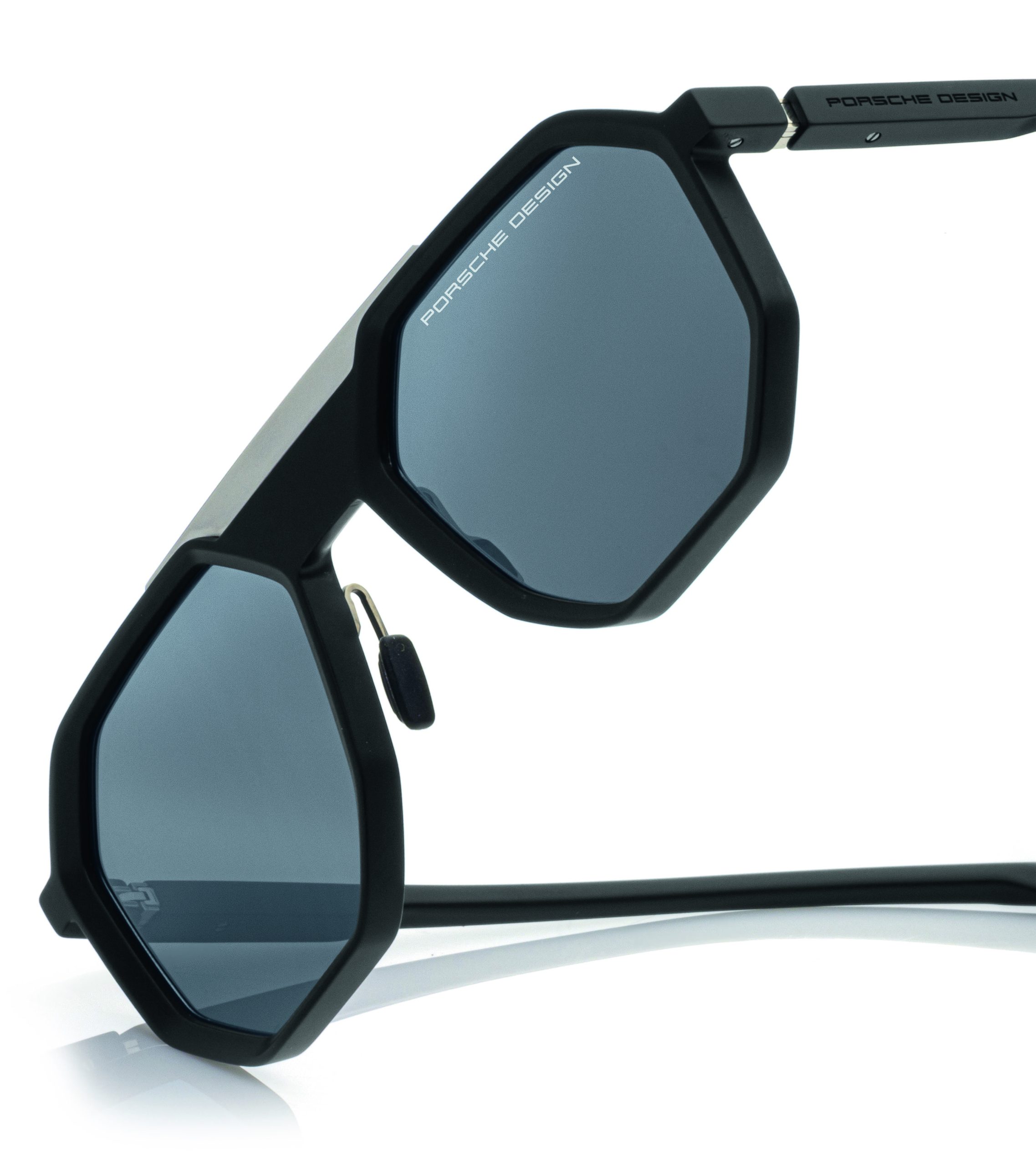 In the new Absorber Series, technical sophistication and functional elements are transformed into unique designs. The main goal is to enhance comfort, style, and performance by leveraging the shock absorber technology that is found in Porsche vehicles. This one-of-a-kind technical solution integrates a unique buffer system made of rubber that reduces contact pressure and maximizes wearing comfort through its shock-absorbing effect. It also acts as a subtle, contrasting design detail that gives the series a technical, automotive-inspired appearance. The series comprises of two sunglasses models – the P’8974 double-bridge squared aviator style and the P’8973 rectangular model. The models P’8974 and P’8973 are available in four different colors each.