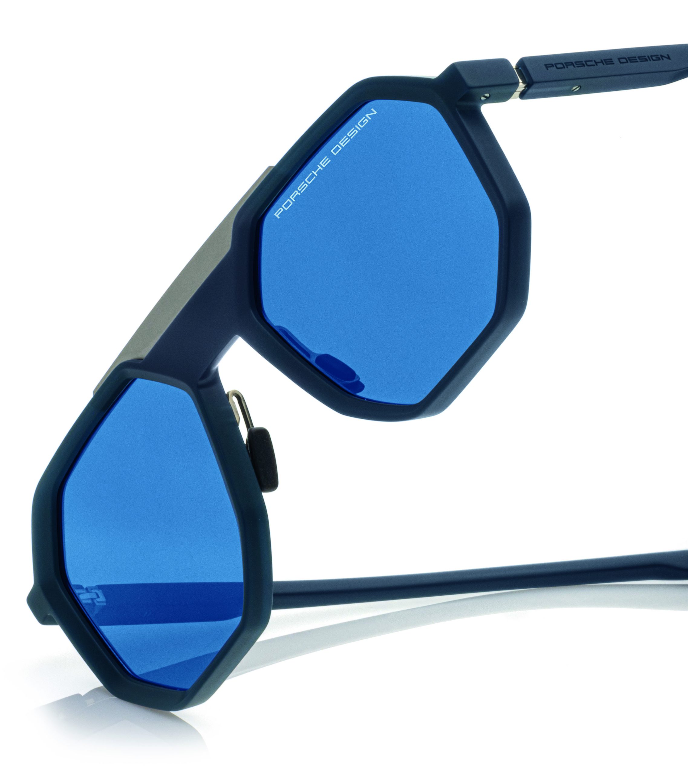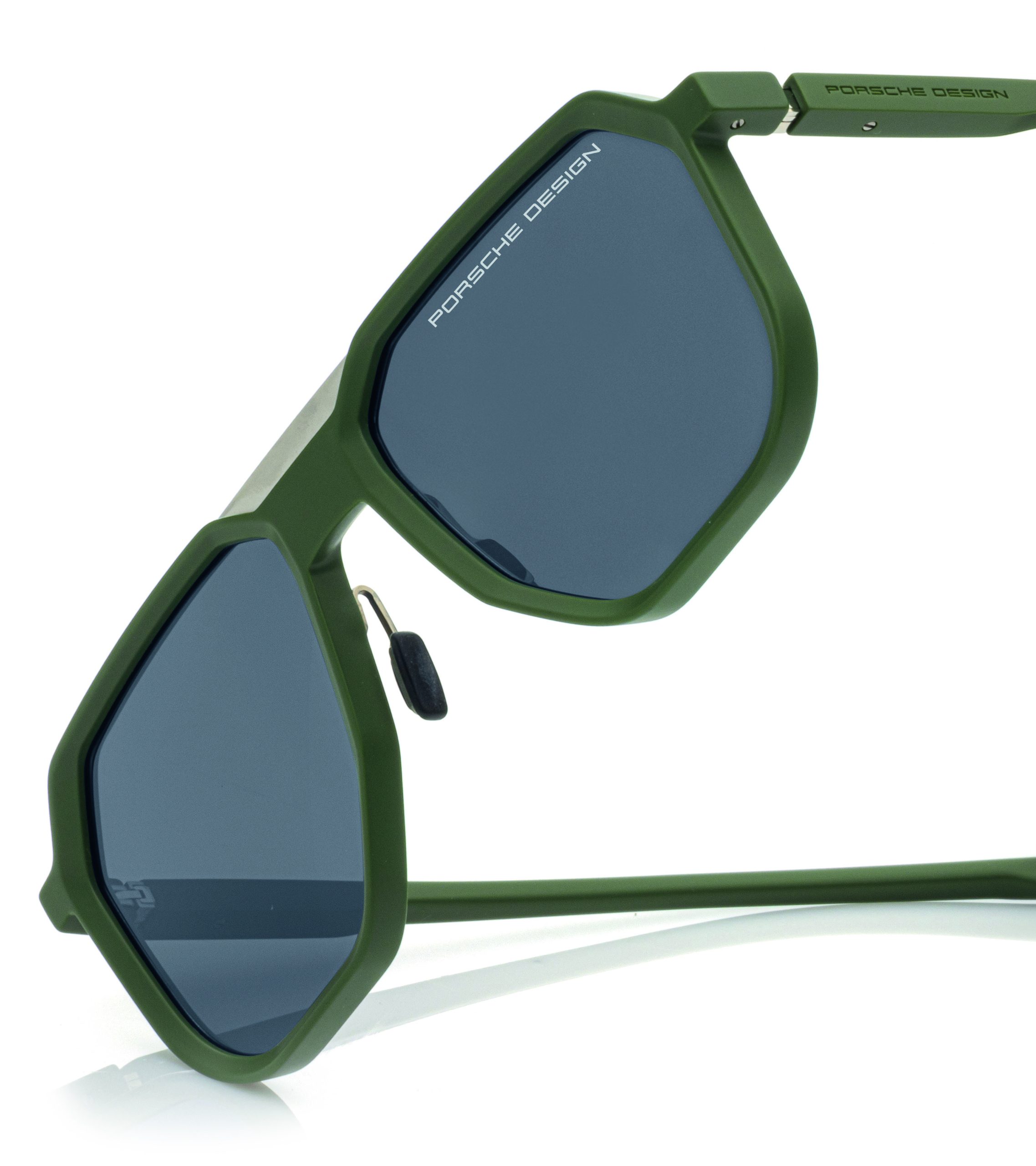 Inspired by the hexagonal screws of the Porsche 911 motor block, the Hexagon Series transforms passion, performance and motorsports into eyewear. The precisely milled 100 percent titanium front, complemented by the iconic hexagonal screws ensure a robust and precise design. The frames provide optimal wearing comfort, thanks to the ultra-light and adjustable high-performance RXP® temples. The bestselling Hexagon Series is complemented with two additional colors. The P‘8937, a rectangular shape with a double bridge, is now available in an additional colorway – an exciting combination of a dark green frame with black blue mirrored lenses. While the P‘8938, a classic aviator style, is extended with a brown-golden color.