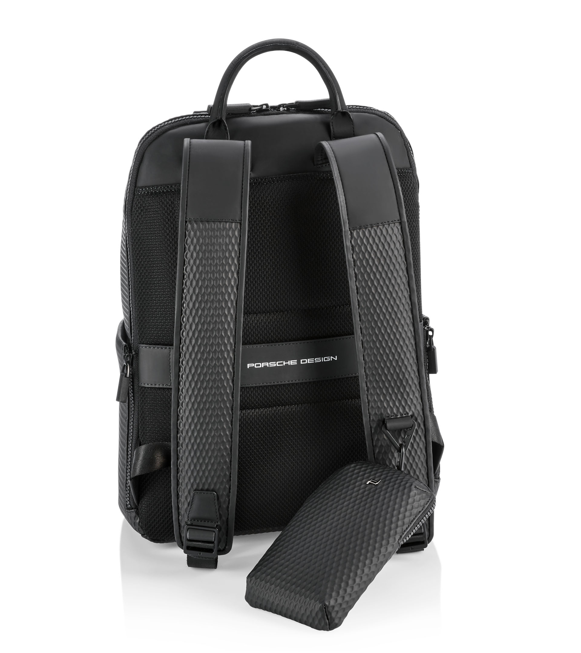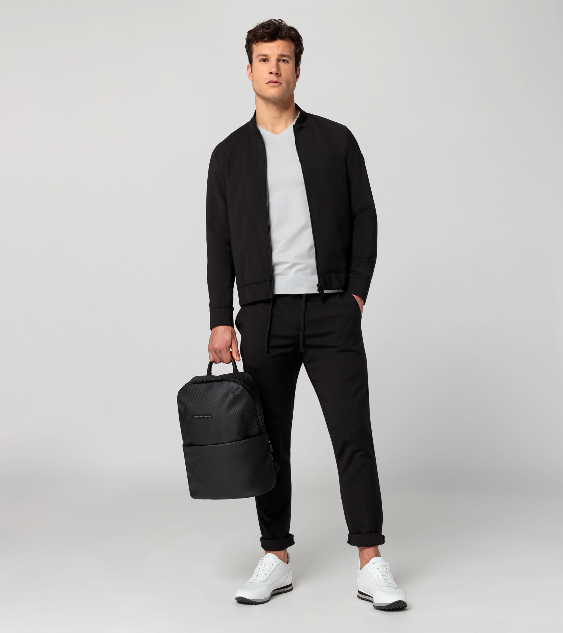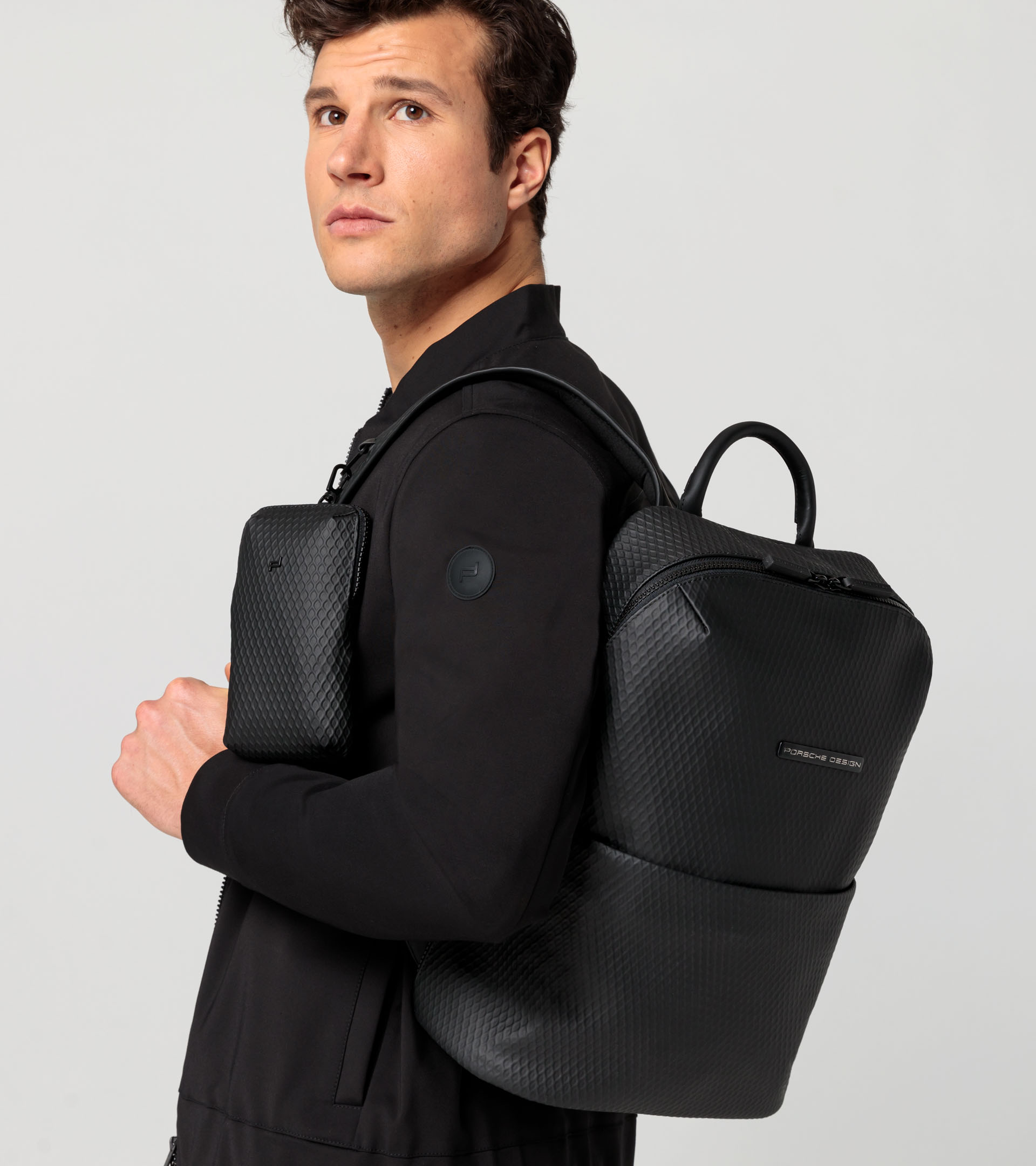 Premium design details and smart product features define the Studio Collection. The large-dimensioned zipper made of cast metal comes into its own, as does the distinctive rubber handle on the Backpack M, Backpack S, and Tote Bag. The Porsche Design logo, discreetly placed on the front of each bag, underlines the casual elegance of the new Porsche Design Studio Collection.