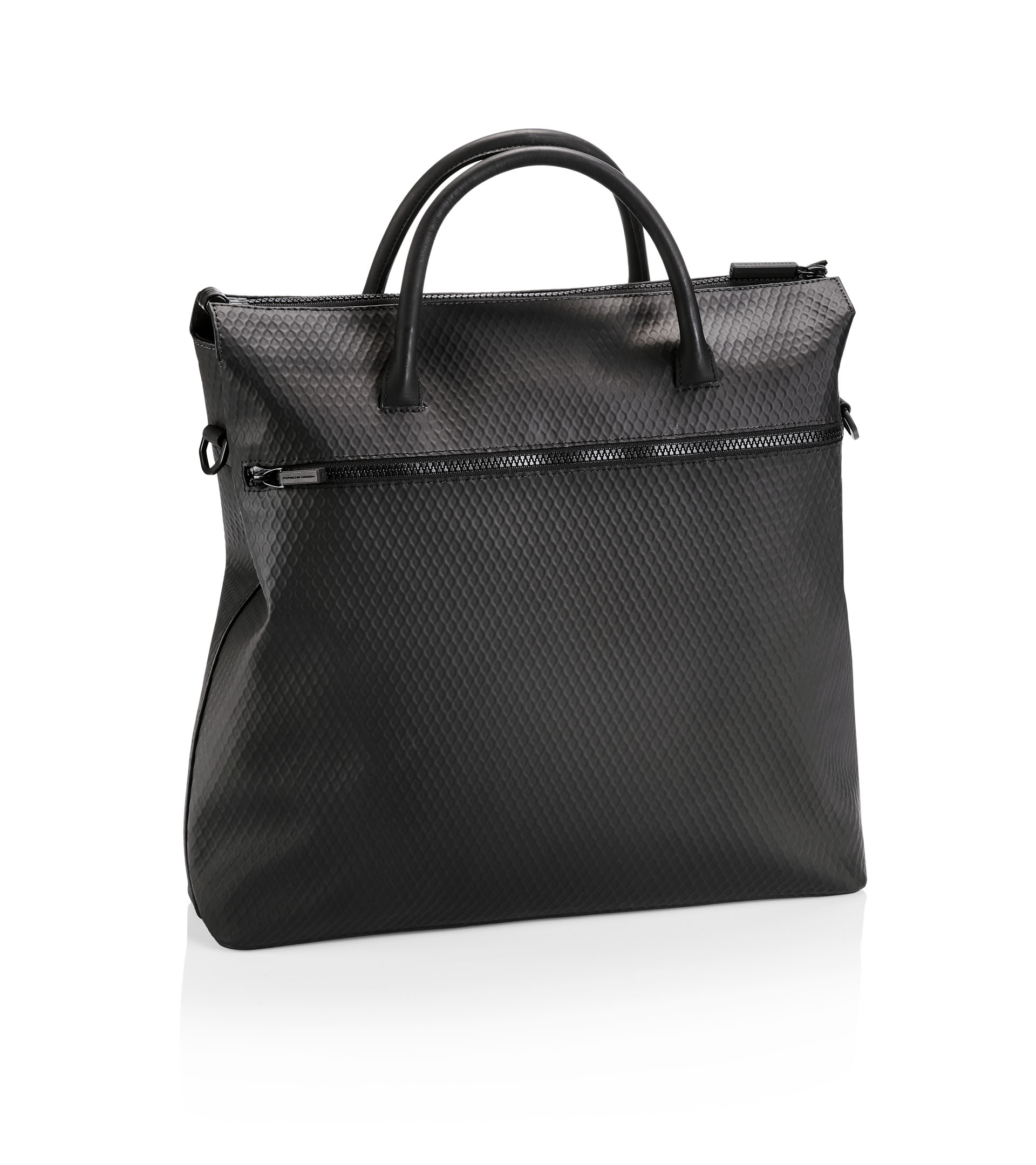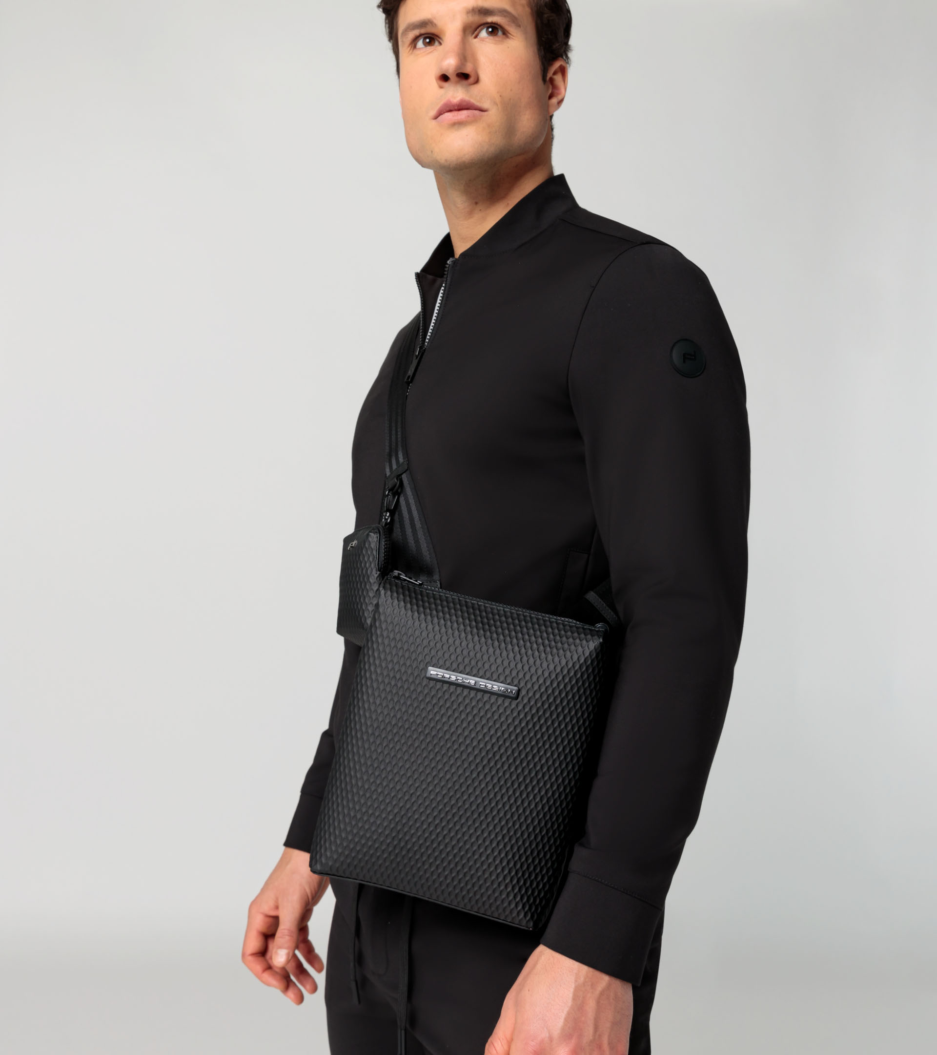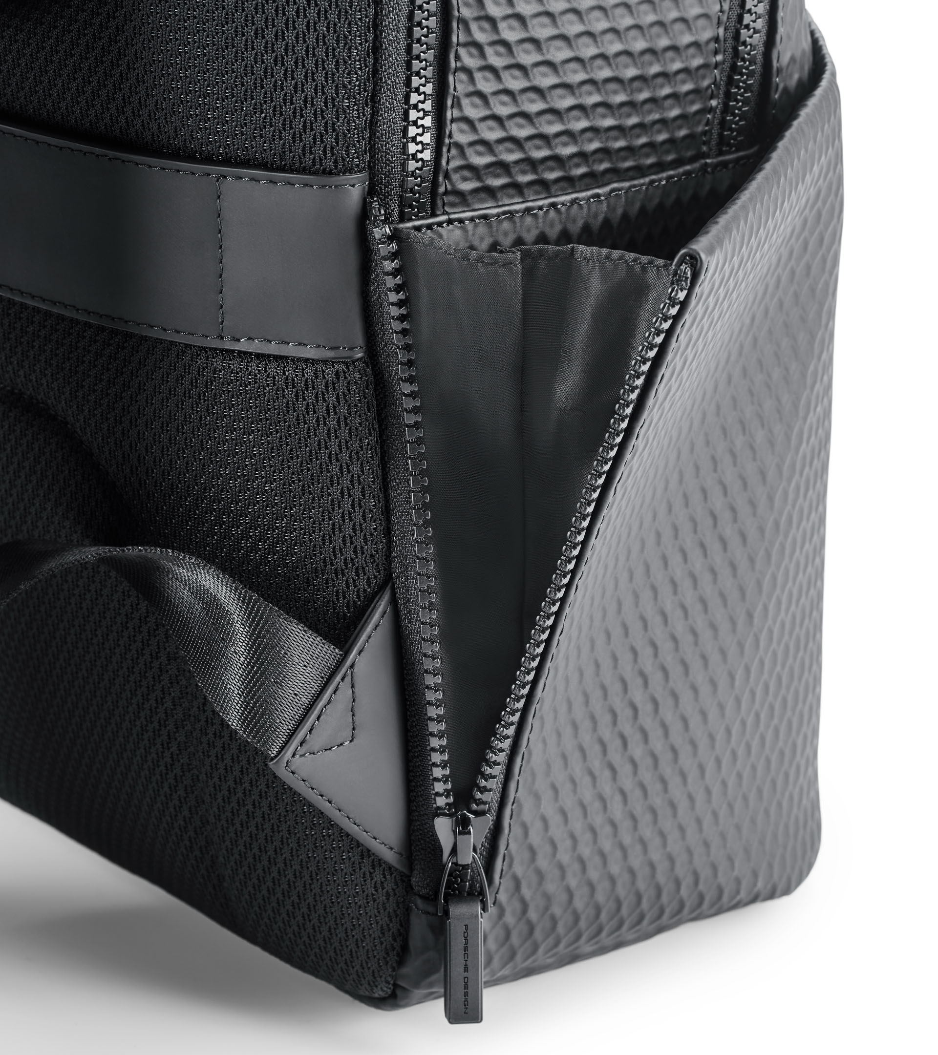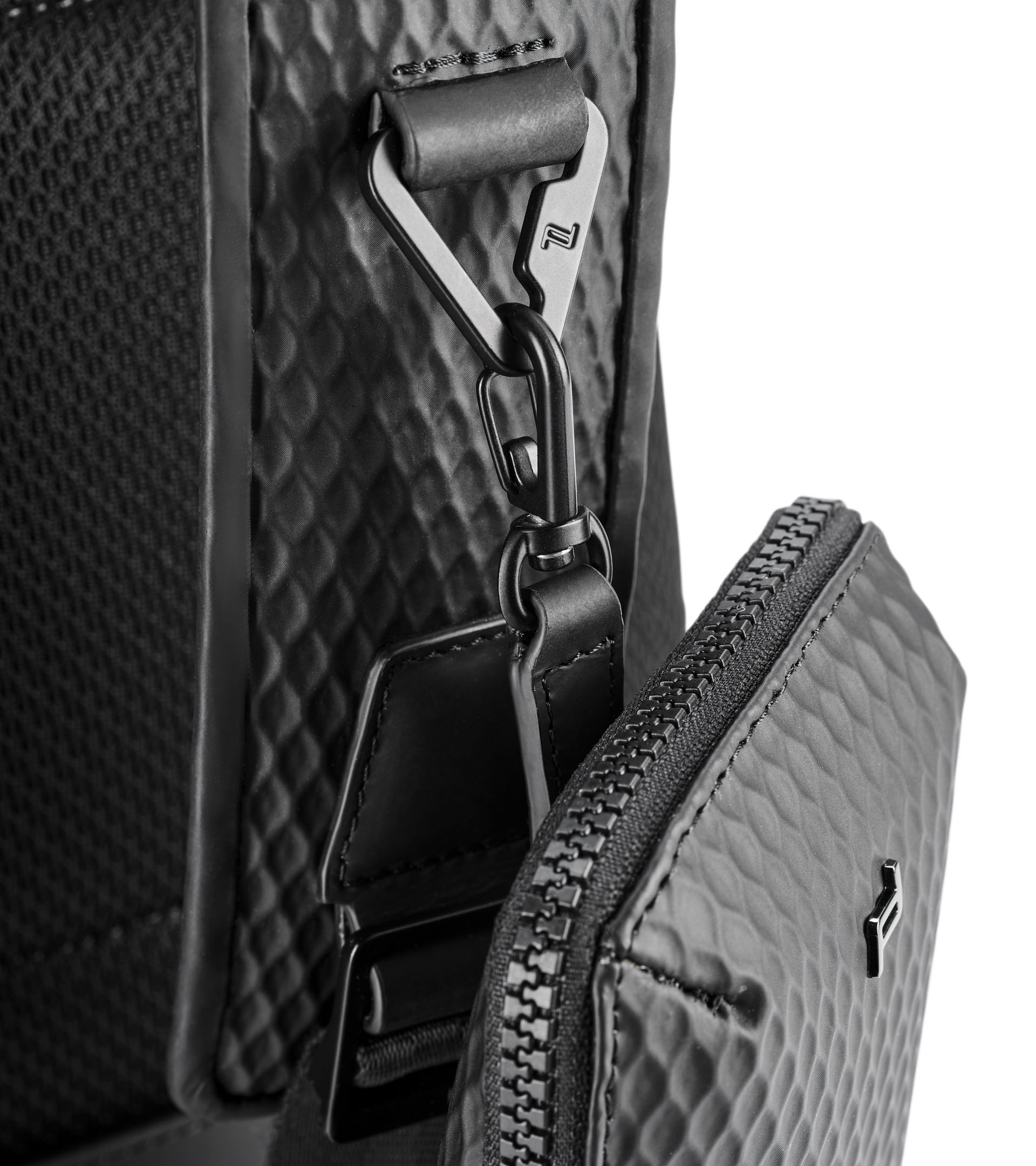 With the Studio Collection, Porsche Design presents a new luggage series that is characterized by using high-quality engineered materials embodying a unique modern style. Made of coated polyurethane air mesh, the bags are manufactured with great craftsmanship. A unique characteristic of this collection is the aesthetically appealing honeycomb structure. The mix of materials and the rubberized leather trim give the collection a cool, urban look. The rubber coating on the polyurethane fabric ensures that the exterior is scratch-resistant and weatherproof at the same time.