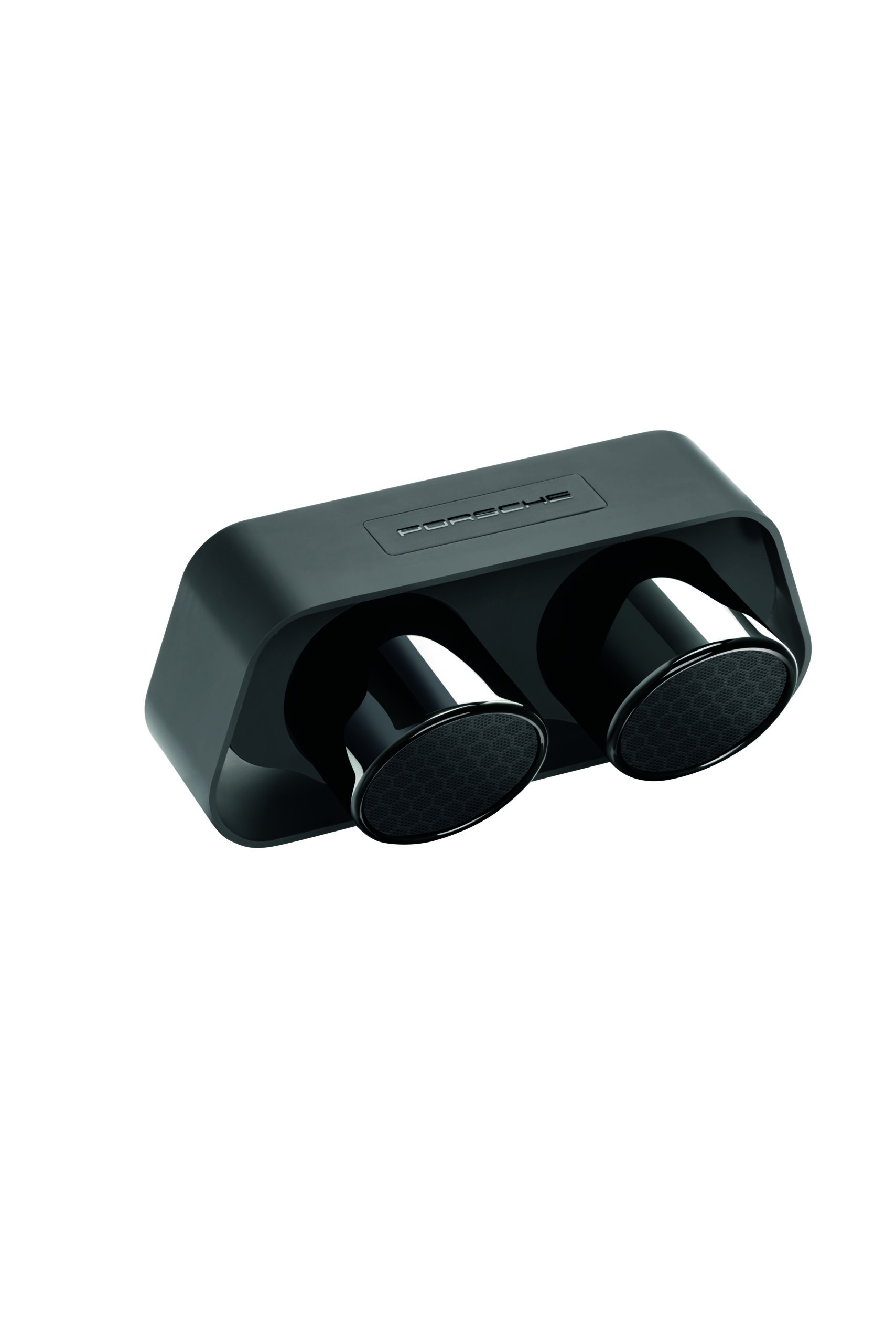On the racetrack, the sound of the of the Porsche 911 GT3 exhaust system is unmistakable. So is the tailpipe cover of the sports car, which is equally distinctive and is now more than just a functional element – it’s also a design feature. Porsche Design has taken the imposing rear aspect of the 911 GT3 and used the original tail-pipe cover as the main part of its new Bluetooth® 911 Speaker. The result: maximum power and sound, as impressive as the engine sound on the track. An absolute must-have for music and sports car enthusiasts.