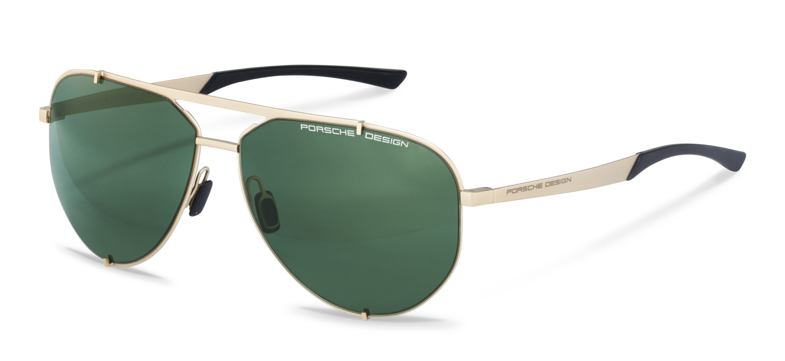 The P`8920 combines perfection and precision, as well as heritage and innovation. Inspired by the design of the P`8478, with the P`8920 Porsche Design reintroduces the iconic „Hooks“ as an unmistakable element that is ingrained in the brand’s history. A small detail, but with tremendous trendsetting influence. Thanks to these iconic lens fixings, the frames of the Hooks Series exude a masculine and technoid look. Whereas the P‘8920 reflects the classic aviator style, the P‘8919 transforms the design into the modern age with a squared aviator shape. The interaction of various dimensions complements the overall concept of the frame and adds a futuristic element. The use of precisely manufactured stainless steel and temple tips made from high-performance plastic RXP® guarantee maximum wearing comfort, flexibility, and lightness. The P`8920 D with a subtle gold hue for the frame combined with green tinted lenses emphasizes the elegant look of this new sunglasses model.