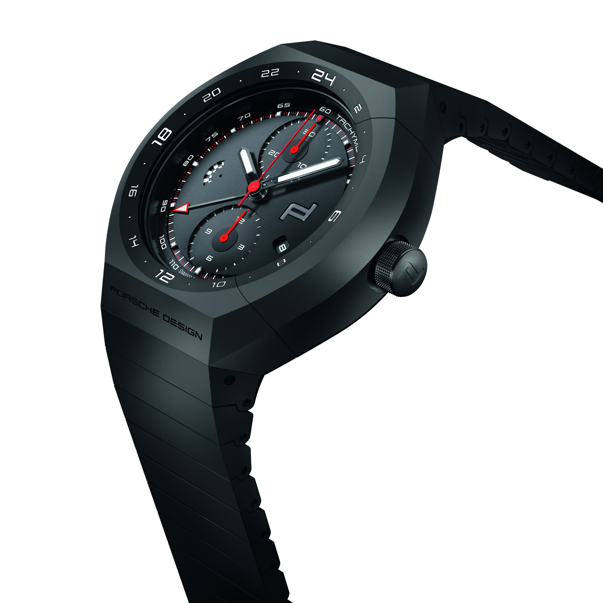Similar to the case design of the Monobloc Actuator 24H-Chronotimer All Black, the new titanium bracelet with black titanium-carbide coating is the result of a balanced relationship between form and function, with an overall focus on comfort and precision. Robust yet elegant, the newly developed and thoroughly tested titanium bracelet is especially comfortable on the wrist, thanks to the specific characteristics of the material. The origin of titanium within Porsche Design dates back to 1980, when it was first used for the titanium bracelet of the Titan Chronograph. Maximum safety and comfort are guaranteed, thanks to the new titanium folding-clasp with fine adjustment.