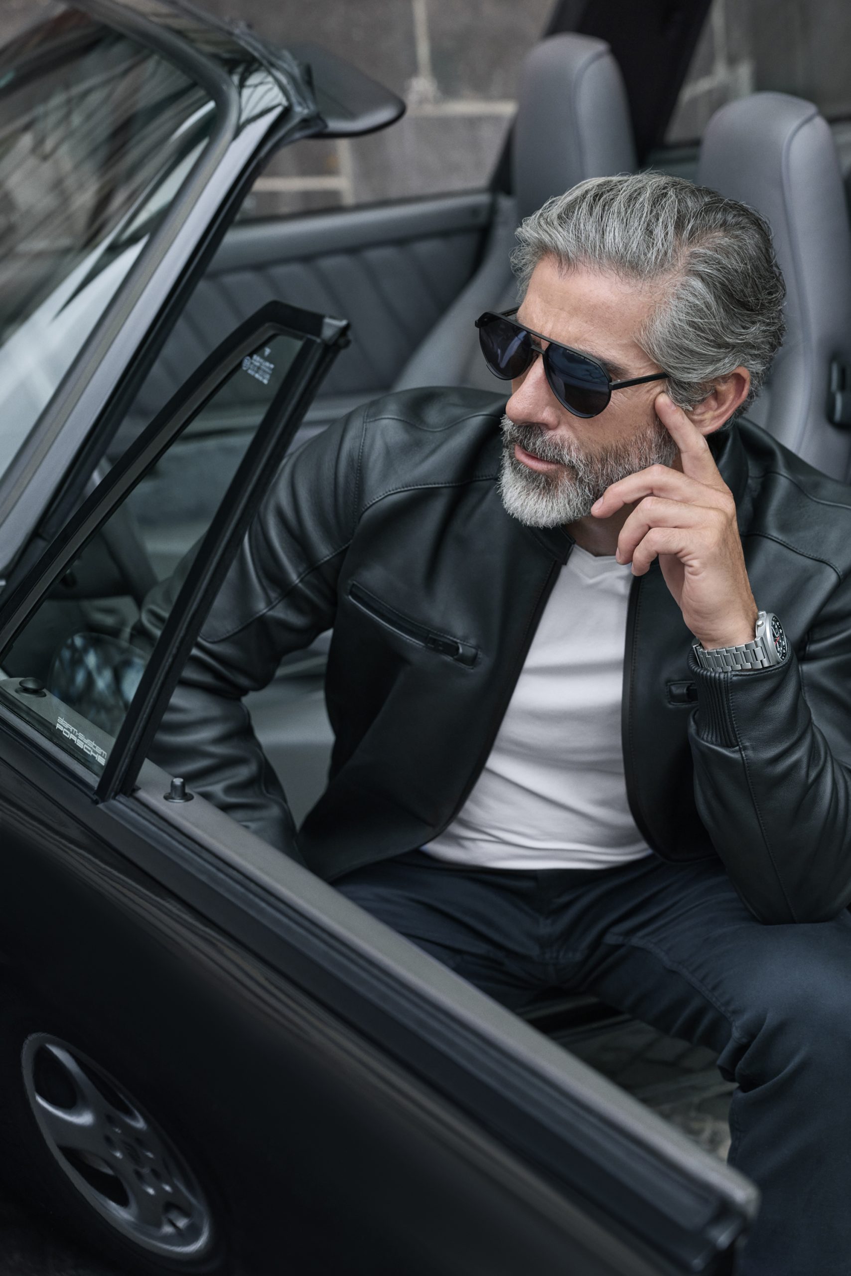 The collection introduces the P’86001 sunglasses model, featuring a contemporary squared shape and a stainless steel front with the Eternal Series’ iconic temple design. It is available in black with brown lenses, blue/dark grey with grey lenses, palladium/black with gradient grey lenses and brown/black with green lenses.