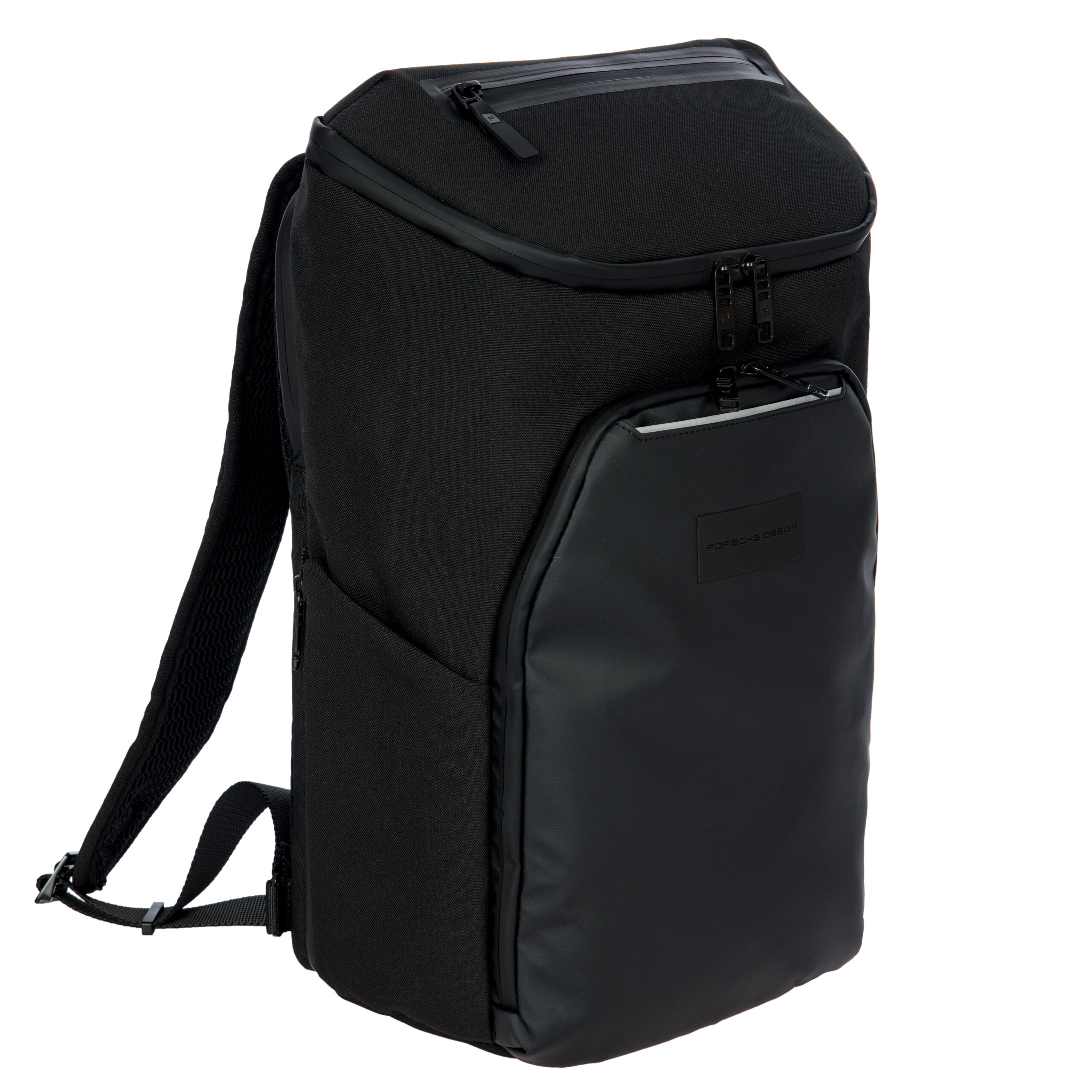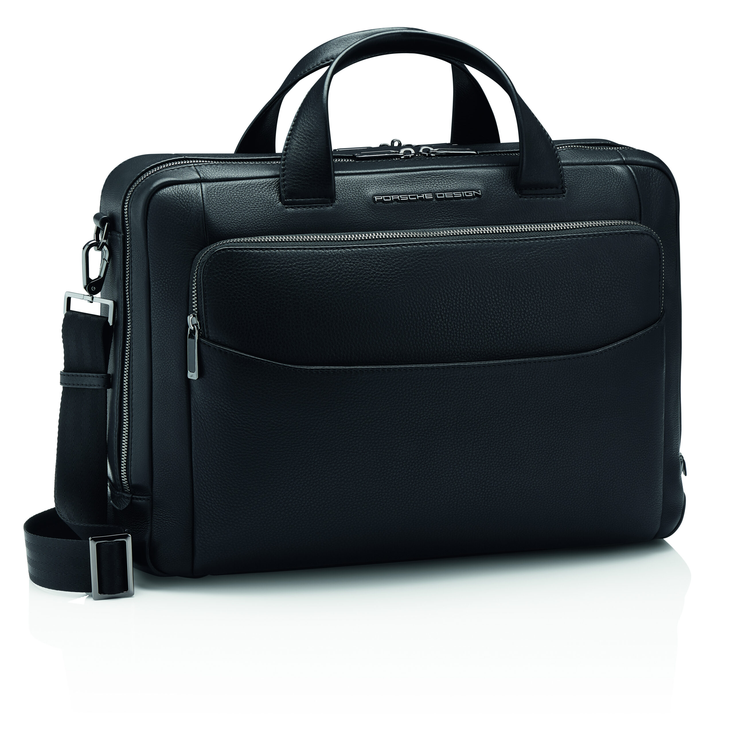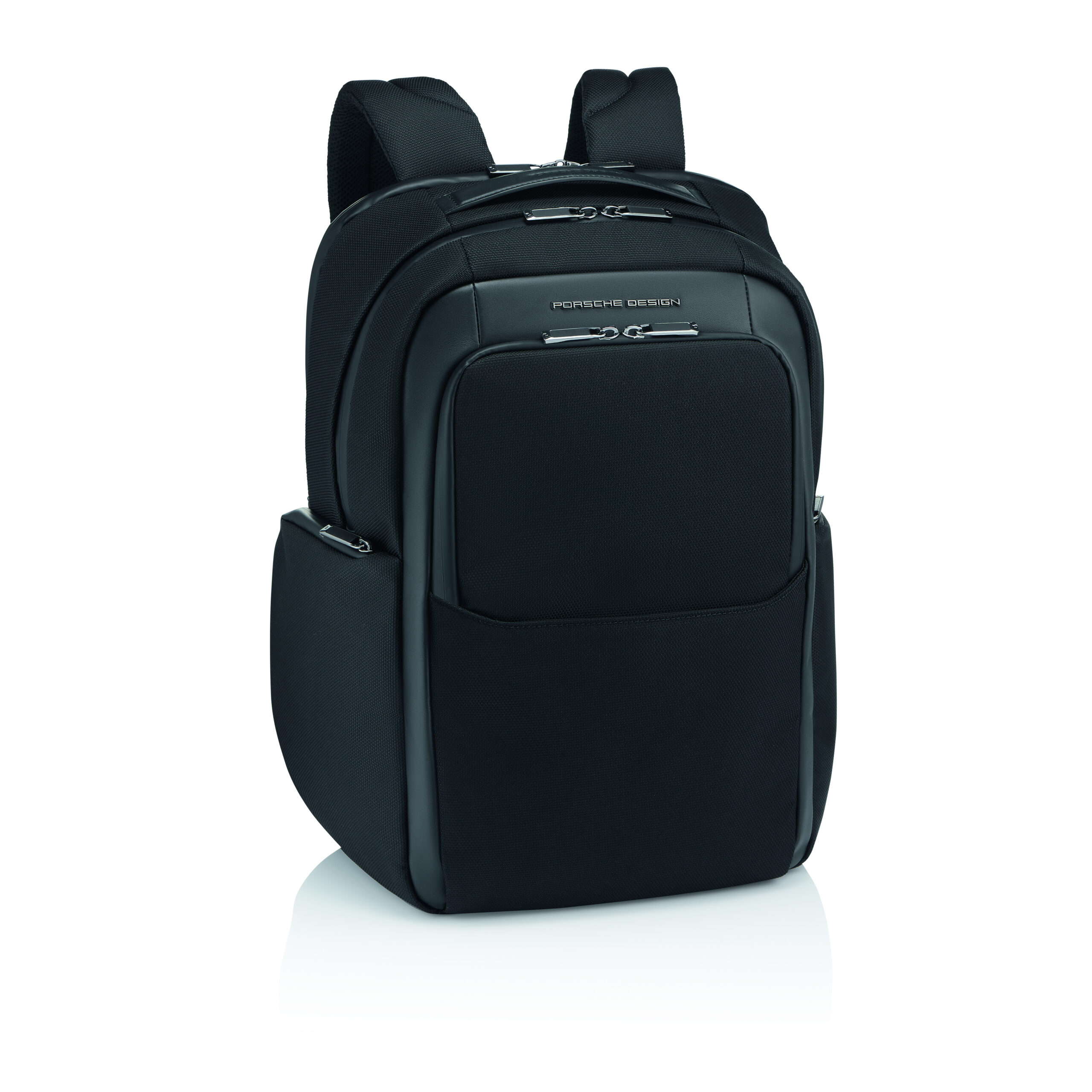Die Roadster Nylon Collection aus wasserabweisendem, strukturiertem Nylon mit Akzenten aus Glattleder erfüllt die Bedürfnisse anspruchsvoller Konsumenten in jeder Hinsicht. Zur Serie gehören Taschen und Rucksäcke in verschiedenen Formen und Größen. Wasserdichte Reißverschlüsse zeichnen die Kollektion aus, erhöhen ihre technische Attraktivität und verleihen ihr ein klares und modernes Design. Dank ihrer hohen Funktionalität, extremen Strapazierfähigkeit, dem leichten Material und den praktischen Details ist diese Kollektion perfekt für den täglichen Gebrauch, sowohl in der Stadt als auch auf Reisen. Im Inneren bieten geräumige Fächer, funktionelle Taschen und ein Business-Organizer reichlich Platz und optimalen Schutz für mobile Endgeräte und Dokumente. Alle Laptoptaschen sind gepolstert und mit zweiwege-Reißverschlüssen gesichert, während zusätzliche Reißverschlussfächer Zugang und Schutz für persönliche Gegenstände bieten. Alle Rucksäcke verfügen über einen praktischen USB-Anschluss und ein verstecktes Geheimfach mit Diebstahlschutz. Direkt zugängliche Frontfächer mit Reißverschluss und erweiterbare Seitentaschen bieten praktischen Stauraum auf der Vorderseite der Taschen und Rucksäcke. Alle Aktentaschen und der Weekender sind mit einer Trolley Lasche zur Fixierung auf dem Gestänge des Koffers ausgestattet, so wird das Reisen erleichtert. Mit zwei Griffen und einem abnehmbaren Schultergurt können die Taschen entweder über der Schulter oder in der Hand getragen werden. Die Roadster Nylon Collection ist in Schwarz erhältlich; alle Beschläge sind mit Gunmetal-Veredelung und damit ein einzigartiges Designmerkmal von Porsche Design. Jedes Produkt wurde mit Bedacht designt, um sichere und praktische Aufbewahrungsmöglichkeiten zu garantieren, die sich ideal für den Geschäfts-, Reise- und Alltagsgebrauch eignen.