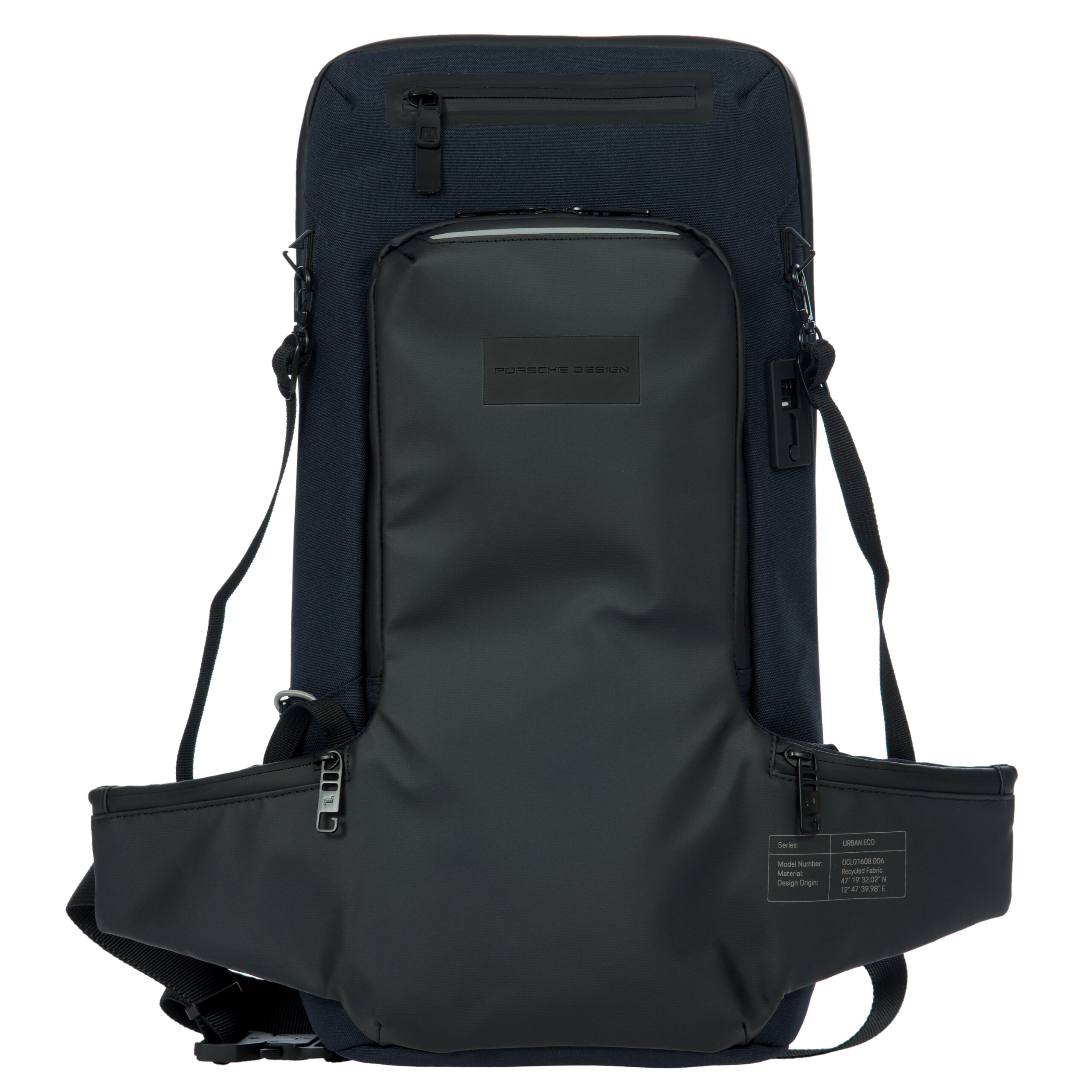 Funktionelle Taschen zu designen, die modisch und stilvoll aussehen und gleichzeitig aus hochwertigen Materialien gefertigt sind, ist eine anspruchsvolle Aufgabe. Die Urban Eco Collection hat diese Herausforderung gemeistert. Sie kombiniert Stil und Funktionalität neu und begegnet damit den Ansprüchen des täglichen Gebrauchs und auf dem Weg zur Arbeit. So erfüllt sie die Anforderungen der modernen Arbeits-, Geschäfts- und Reisewelt. Sie ist ein Beispiel für innovatives Design, das perfekt auf die Designvorgaben eingeht. Aber das ist noch nicht alles: Diese Kollektion trägt auch dem Bedürfnis nach Nachhaltigkeit Rechnung. Die Urban Eco Collection wird aus recycelten und wiederverwendeten Materialien hergestellt. Dabei gilt der Global Recycled Standard (GRS), der sich mit der Überprüfung der Ausgangsmaterialien, den Umweltprinzipien, den sozialen Anforderungen und der Kennzeichnung von Textilprodukten aus recycelten Materialien befasst. Das wasserabweisende Gewebe aus recyceltem Polyester ist mit einem Gummianteil versehen, der dafür sorgt, dass die Außenseite abriebfest und wetterbeständig ist. Die einzigartigen Ziernähte und schwarzen Beschläge runden die Verarbeitung ab. Für diejenigen, die auf der Suche nach funktionellem Stil sind, bietet die Urban Eco Collection nicht nur Rucksäcke in verschiedenen Größen, sondern auch Taschen in vielen verschiedenen Formen und Größen sowie Reiseaccessoires wie den Waschbeutel und eine Gürteltasche. Die Ausstattung konzentriert sich auf das Wesentliche für anspruchsvolle Berufstätige und reicht von strapazierfähigem und wasserabweisendem Außenmaterial über Reißverschlüsse zum Schutz wertvoller Technik, großen Zwei-Wege-Reißverschlussöffnungen, Laptop-Innenfächern, zusätzlichen Fächern zur Organisation von Alltagsutensilien, ergonomisch geformten und gepolsterten Schultergurten und Rückenelementen bis hin zu Trolley-Lasche oder Zusatztaschen und vielem mehr wie zum Beispiel der abnehmbaren Regenhülle, die unter der Bodenplatte der Rucksäcke versteckt ist. Alle Artikel lassen sich dank der elastischen Schlaufe, in die der Reißverschluss eingehakt werden kann, sicher verschließen. Ein spezielles Design für Radsportbegeisterte erfüllt alle ihrer funktionellen Anforderungen: Das technische Netzgewebe auf dem Rücken hilft, die Transpiration zu regulieren, und dank der ergonomischen Form des Rückenteils und des Hüftgurtes ist dieser Rucksack ultrabequem zu tragen. Die Helmbefestigungsriemen sind ein nützliches Detail, vor allem für Pendler. Die verschweißte Reißverschlusstasche ist absolut wasserdicht und bietet die Möglichkeit, den Rucksack individuell zu gestalten: Der Reißverschluss kann aus einer von fünf Farben gewählt werden. Alle Artikel werden mit einem Porsche-Design-gebrandeten Staubbeutel aus recyceltem Polyester geliefert.