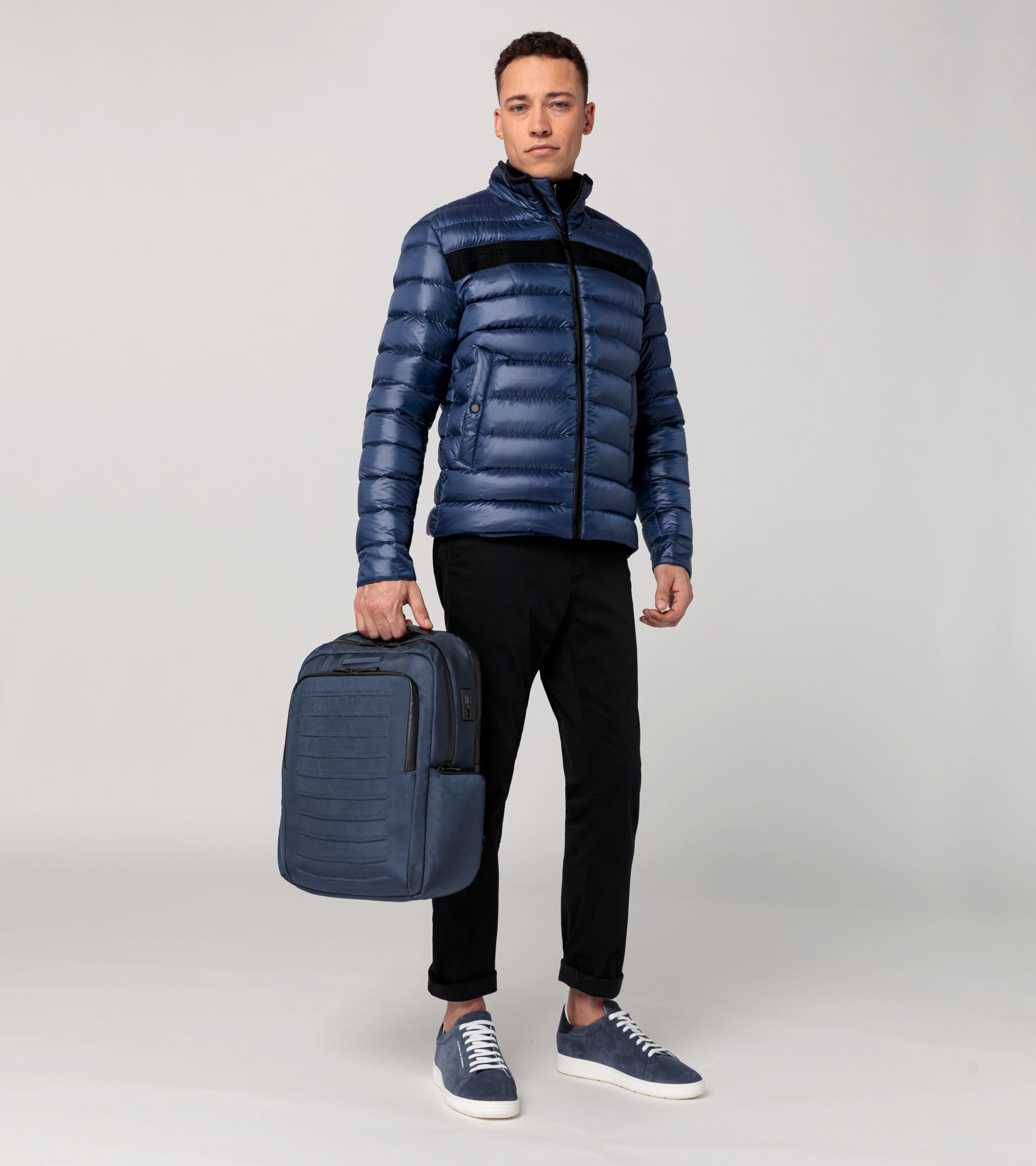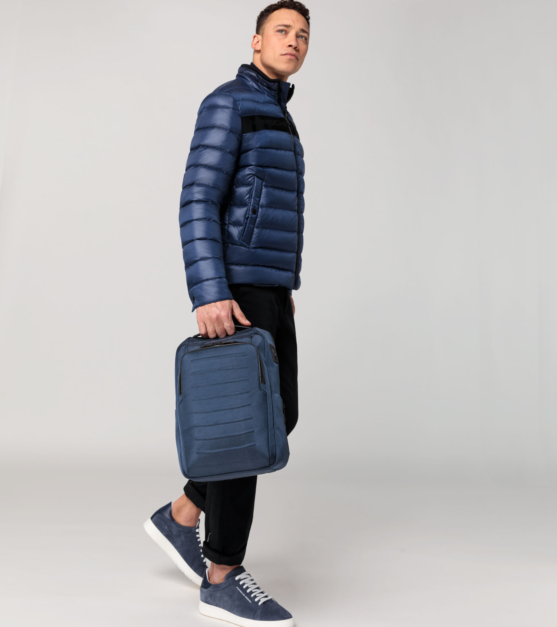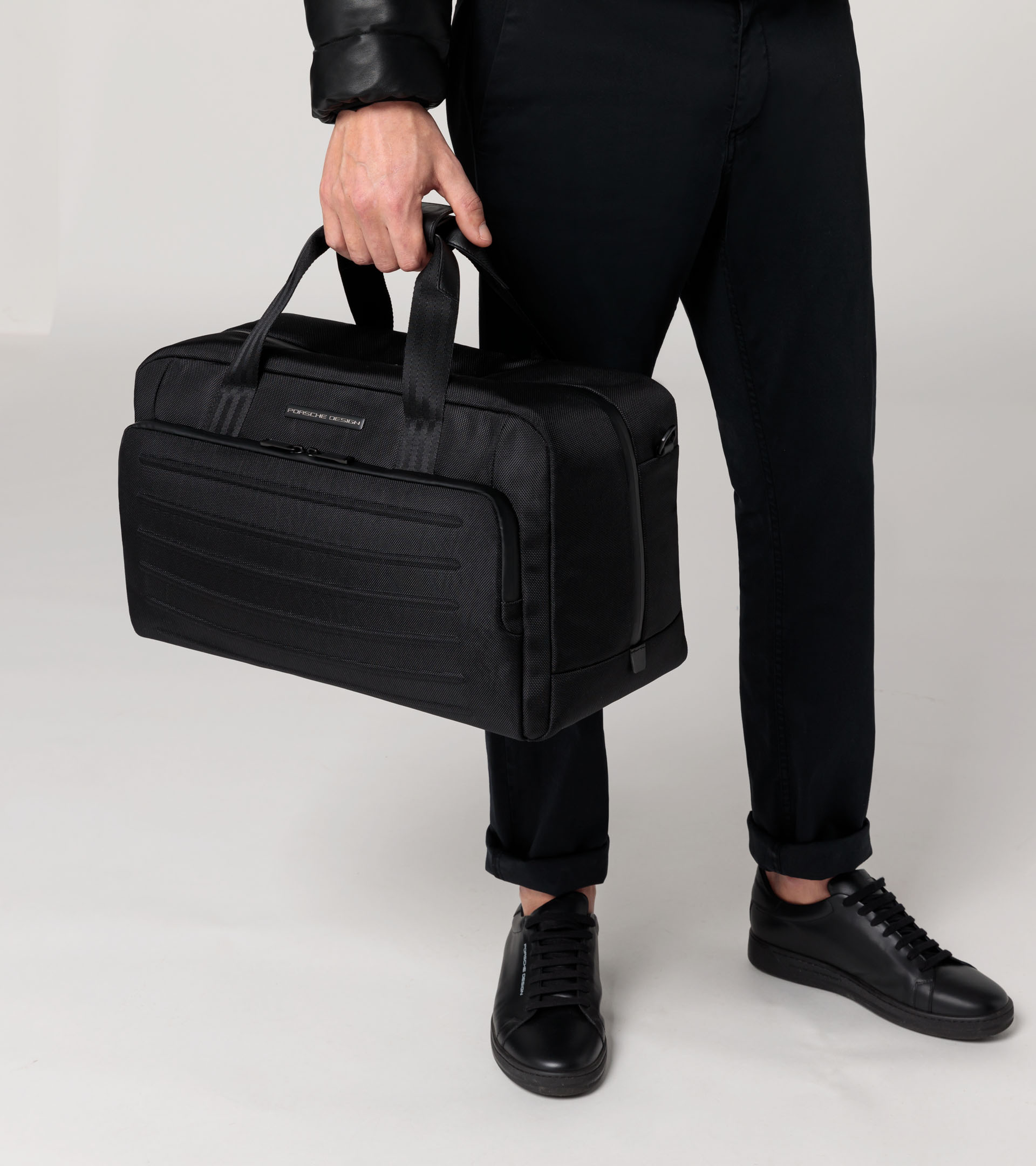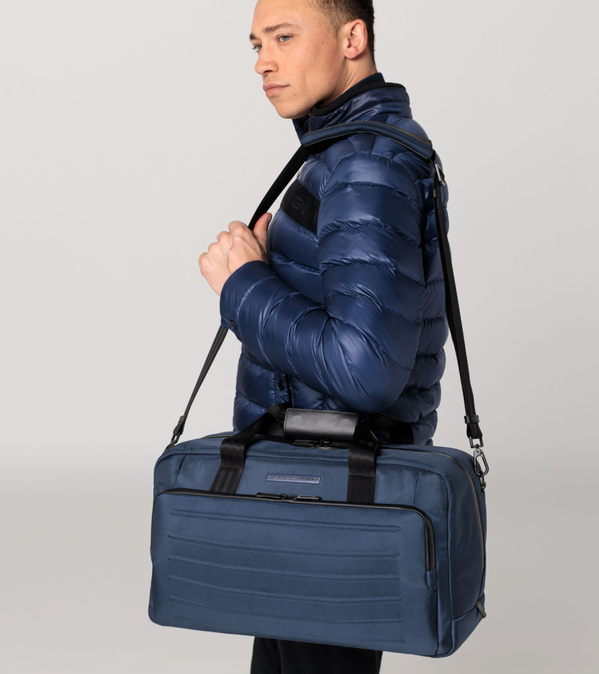 Die Modelle der Porsche Design Roadster Pro Serie aus wasserabweisendem, strukturiertem Nylon-Gewebe sind das ideale Match für jede Anforderung im Alltag anspruchsvoller Reisender. Ausgestattet mit geräumigen Fächern im Inneren und funktionellen Taschen bieten Shoulderbag, Backpack und Weekender ausreichend Platz und Schutz für elektronische Geräte, Dokumente, persönliche Gegenstände und Gepäck. Das Backpack ist in drei Größen erhältlich und lässt sich durch einen Gurt auf der Rückseite leicht am Trolleygriff eines Koffers befestigen. Zwei integrierte USB-Anschlüsse (ein Standard-USB-Anschluss Typ-A und der kleinere USB Typ-C) machen alle drei Backpack-Modelle businesstauglich. Die Shoulderbag, in zwei verschiedenen Größen verfügbar, lässt sich dank längenverstellbarem Riemen bequem über der Schulter tragen. Wer den Weekender wählt, reist dank zwei Tragegriffen und gepolstertem Schultergurt inklusive Trolley-Link besonders komfortabel. Das Design und die Farben sind abgestimmt auf die Roadster Hardcase Trolley-Kollektion.