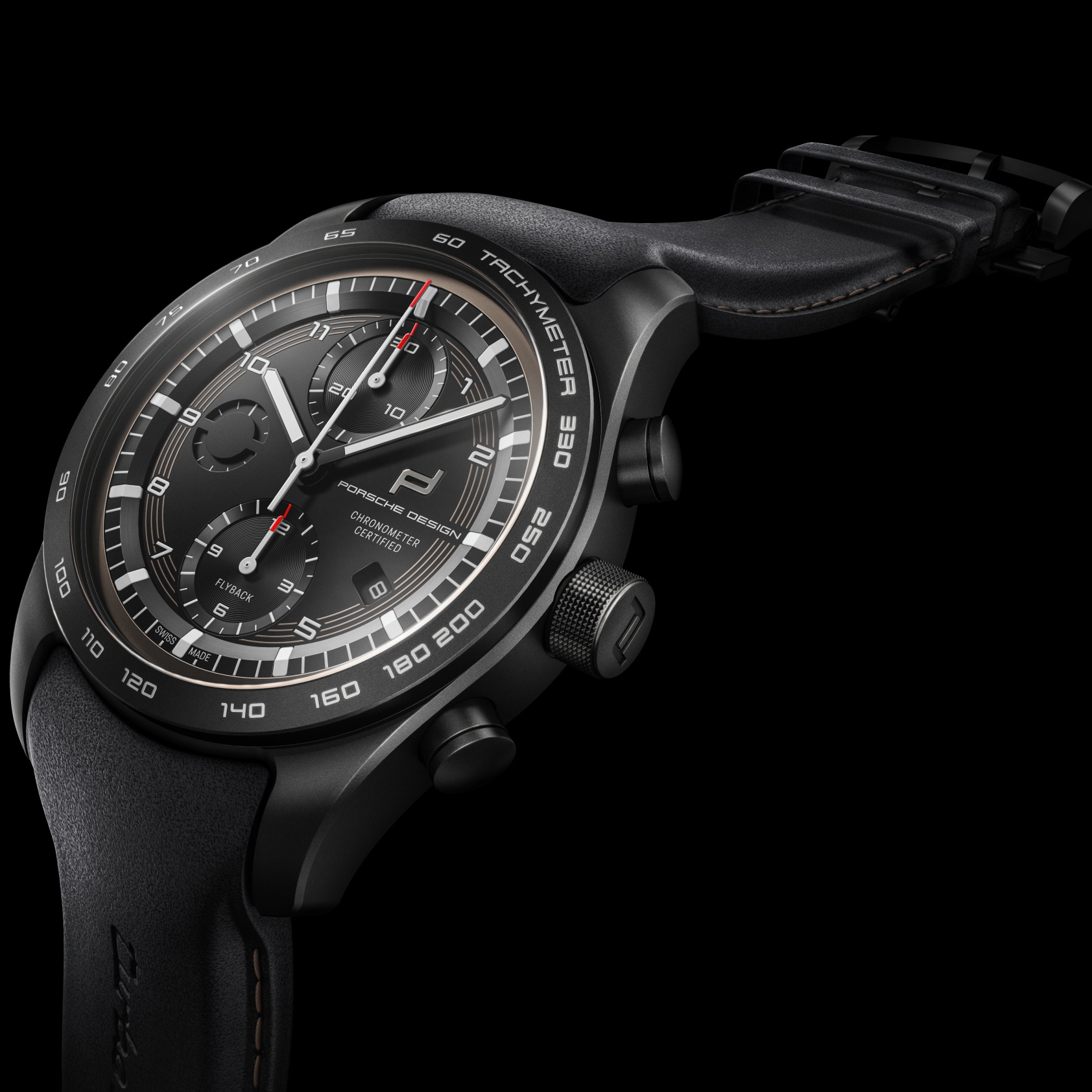 Porsche 911 Turbo S: Ein Name, der für pure Faszination steht. Im Technologieführer der „Elfer“-Baureihe trifft kompromisslose Performance auf ikonisches Design und eine Fahrdynamik, die Emotionen erzeugt. Als einer der exklusivsten Sportwagen aus Zuffenhausen bietet er eine perfekte Symbiose aus Leistung und Eleganz und übt eine magische Anziehungskraft auf Porsche Enthusiasten weltweit aus. Mit dem neuen custom-built Chronograph 911 Turbo S bringt Porsche Design diesen Mythos ans Handgelenk. Das neue, schwarz ausgeführte Zifferblatt mit Designelementen in Turbonit spiegelt die Nähe zum Fahrzeug wider. Vom reflexionsarmen Cockpit des Porsche 911 Turbo S inspiriert, setzt es auf optimale Ablesbarkeit – aus jedem Blickwinkel und bei allen Lichtverhältnissen.