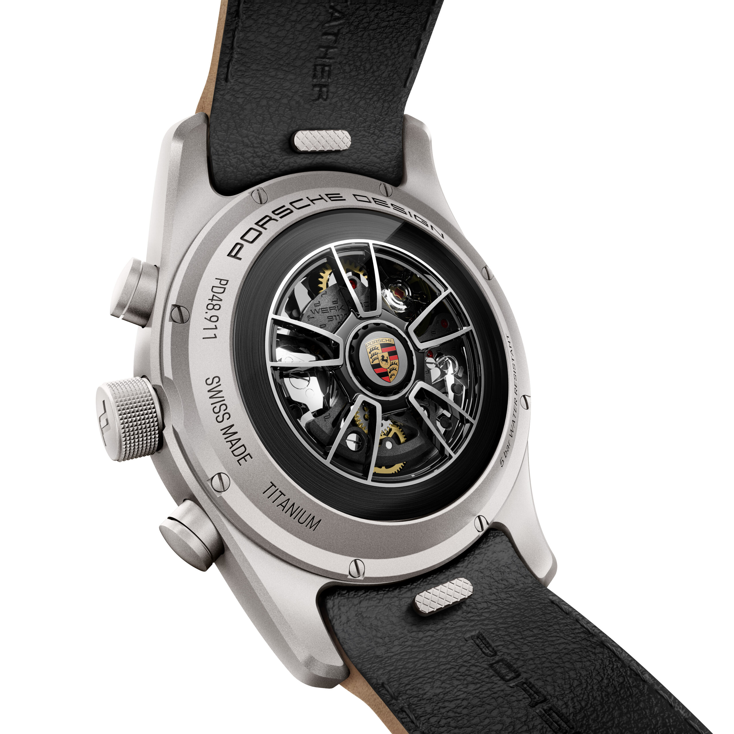 Auf Wunsch kann jedes Porsche Design custom-built Timepieces mittels einer Lasergravur auf dem Gehäuseboden zum Einzelstück gemacht werden und verleiht so jedem Zeitmesser die ultimative persönliche Note. Mit dieser Zusatzgravur kann auch die im Lieferumfang enthaltene Schmuck-Aufbewahrungsbox versehen werden. Zusätzlich kann auf Wunsch die passende Fahrzeuggrafik für die Plakette der Schmuckbox ausgewählt werden: Es stehen die Schriftzüge zur Auswahl, die auf dem Heck des Wunschfahrzeugs des Kunden zu sehen sind. Alternativ wählt er ein grafisches Logo wie beispielsweise die Flyline des aktuellen Porsche 911 Carrera aus.