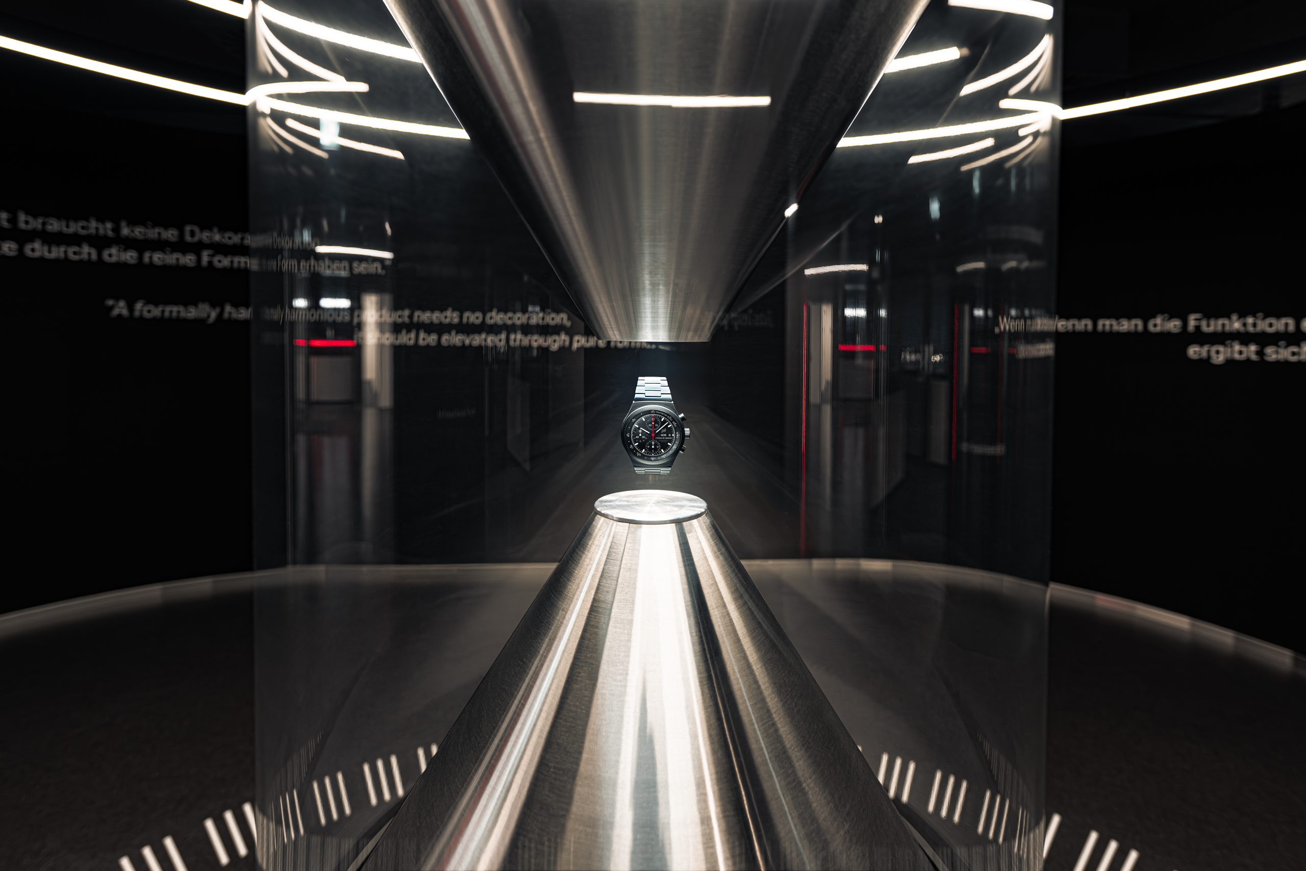 Über einen Gesamtzeitraum von drei Jahren von der ersten Begehung des damals leerstehenden Gebäudes bis zum Einzug in die fertige Manufaktur wurde ein ganzheitliches Konzept einer eigenen Produktionsstätte realisiert, welches die gestalterische und technologische DNA von Porsche in die Welt der mechanischen Uhrmacherkunst überträgt. Materialität, Technik und Gestaltung folgen dabei einem klaren Prinzip: Form und Funktion in perfekter Symbiose. „Swiss Made“ ist dabei nicht nur Herkunftsversprechen, sondern Ausdruck eines kompromisslosen Qualitätsanspruchs und integraler Bestandteil der Marken-DNA.
