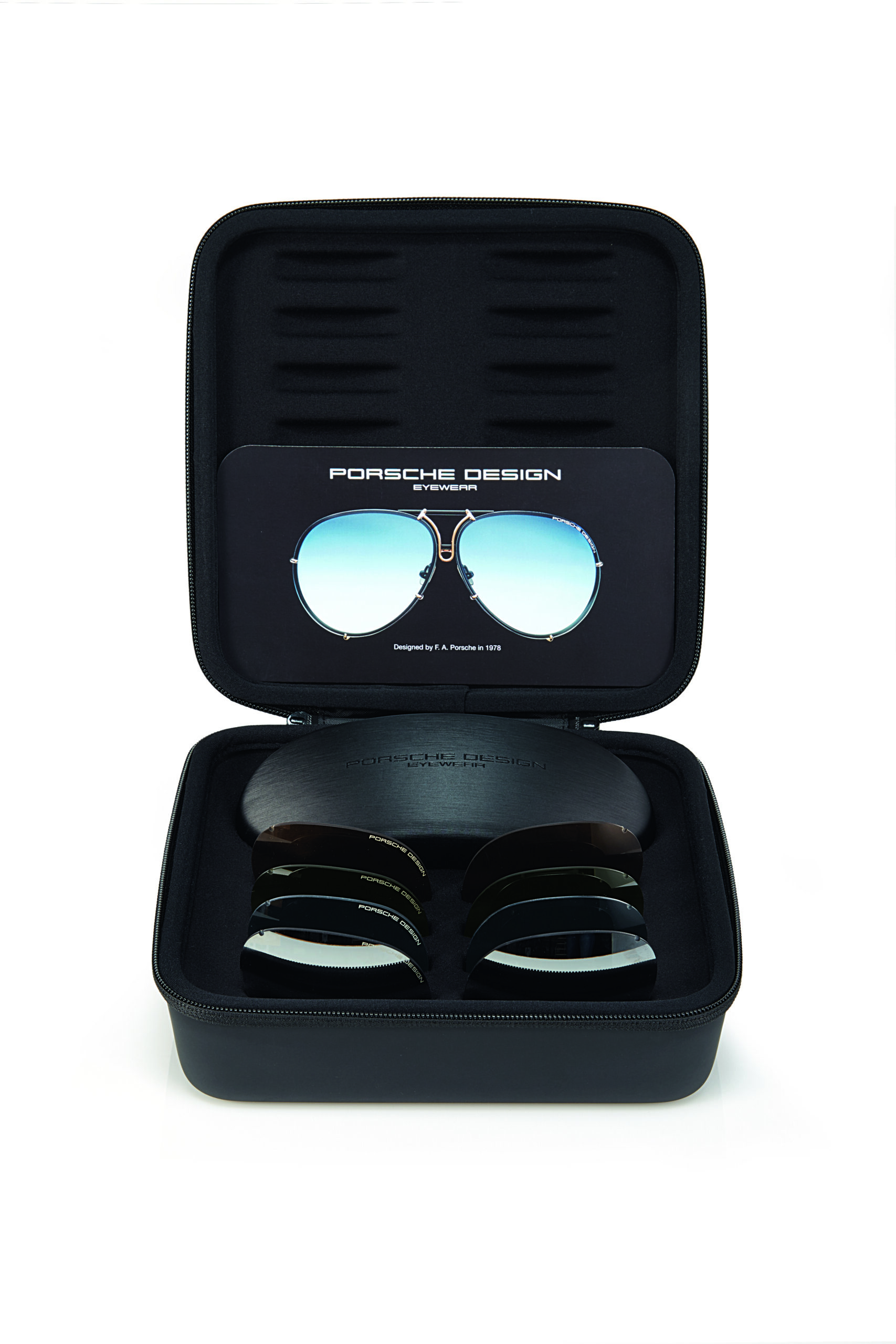 Anlässlich des 40-jährigen Jubiläums von Porsche Design Eyewear erscheint das erste Sonnenbrillenmodell der exklusiven Lifestylemarke in einer limitierten Sonderedition. Mit einer matten, schwarzen Fassung aus ultraleichtem Titan, grauen Verlaufsgläsern und goldfarbenen Nasensteg wird die Pilotenbrille zu einem wahren Sammlerstück. Ergänzt wird die Sonderedition durch vier Paar Wechselgläser in den Farben blue gradient, brown, olive/silver mirrored und mercury/silver mirrored. Das neue Exklusiv-Modell ist in zwei Größen erhältlich. Die Fassung ist auf 1978 Stück limitiert. Da die P‘8478 selbstverständlich auch auf Reisen nicht fehlen darf, wird die Jubiläumsedition in einer praktischen Reisebox geliefert, die es erlaubt, die Brille sowie die dazugehörigen Wechselgläser sicher und stilvoll zu transportieren. Ein hochwertiges Brillenetui rundet das „40Y“-Jubiläumspaket ab.