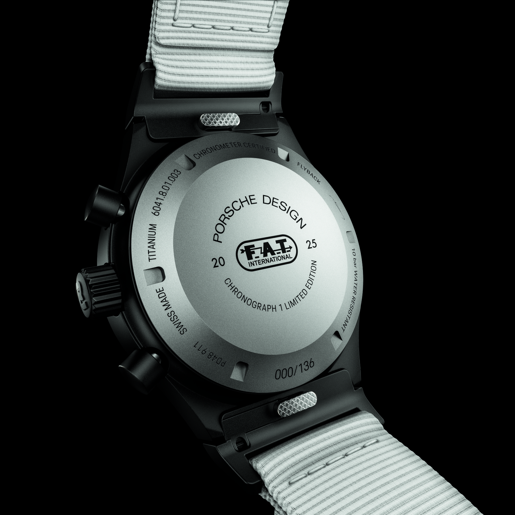 1972 revolutionierte Porsche Design die Uhrenwelt mit der Vorstellung des Chronograph I. Als erster vollständig schwarzer Chronograph setzte er neue Maßstäbe in Design und Funktionalität. Abgeleitet von der Instrumententafel des legendären Porsche 911 verfügte das reflexionsarme Zifferblatt über eine bis dato unerreichte Ablesbarkeit und klare, funktionale Gestaltung. Mit dem Chronograph 1 – F.A.T. 2025 Edition schlagen Porsche Design und F.A.T. International ein neues Kapitel dieser Erfolgsgeschichte auf. In einer streng limitierten Auflage von nur 136 Exemplaren präsentiert die Lifestyle-Marke in Kooperation mit der Car-Community erstmals einen Chronographen mit weißem Zifferblatt. Vollständig mit weißer Super-LumiNova®-Leuchtmasse beschichtet garantiert es auch bei völliger Dunkelheit eine perfekte Ablesbarkeit. Porsche Design folgt durch die Invertierung des markentypisch mattschwarzen Zifferblattes den Gestaltungsprinzipien des Gründers, Prof. Ferdinand Alexander Porsche, und kreiert damit nicht nur einen neuen Look, sondern steigert die Funktionalität des Chronographen durch weiter optimierte Ablesbarkeit.