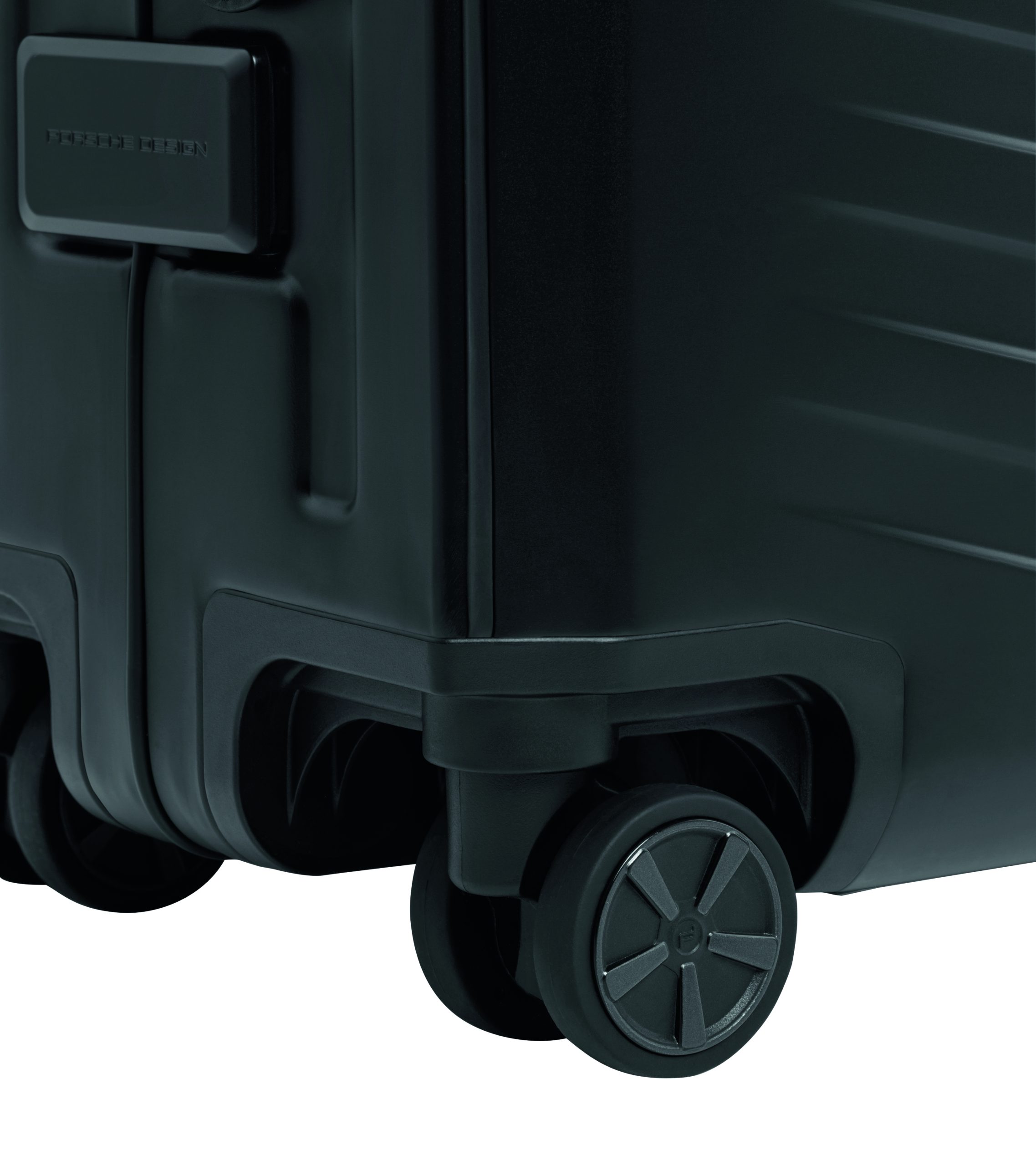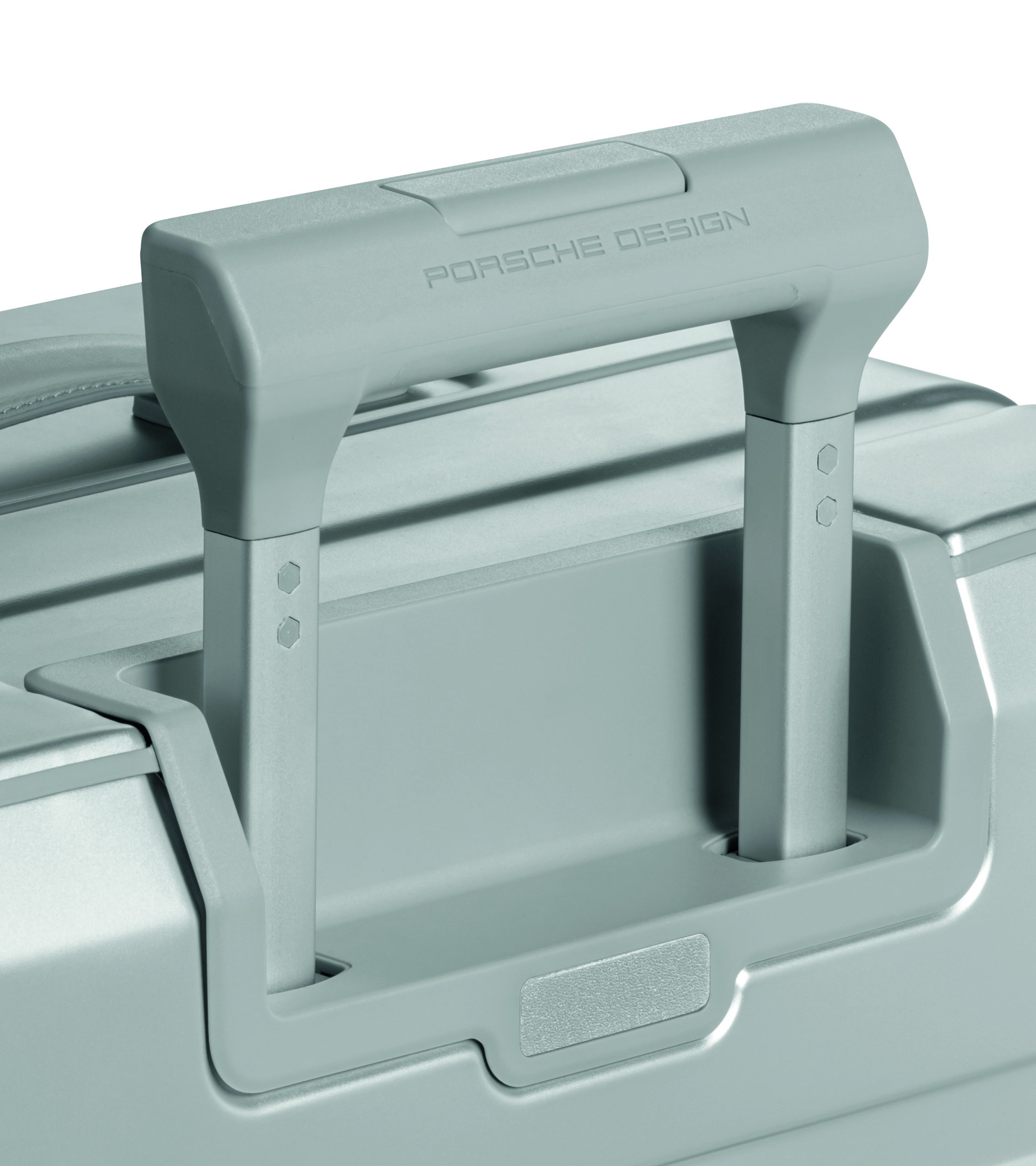 Die Vision des Roadster Aluminum verbindet markantes Design mit einer durchdachten Funktionalität, die den hohen Ansprüchen eines Premiumgepäcks gerecht wird: Das Griffgestänge, ausgestattet mit einer Multistopp-Funktion, ermöglicht eine individuelle Anpassung an die Körpergröße. Der ergonomische Griff kann nahtlos in der Rückseite des Koffers versenkt werden und gewährleistet ein optisch harmonisches Erscheinungsbild. Ergänzt wird dieses durch Griffe aus hochwertigem Leder, die durch sichtbare Steppnähte veredelt und gepolstert sind, um erhöhten Tragekomfort zu bieten. Das flache TSA-Schloss fügt sich ebenfalls nahtlos in den puristischen Look des Koffers ein und ist auf die symbolträchtige Zahl 911 voreingestellt – eine besondere Hommage und ein liebevolles Detail für alle Porsche-Enthusiasten. Zudem sind die leichtläufigen Doppelräder mit Kugellager 360° drehbar und orientieren sich in ihrem Design an der Carrera Classic Felge von Porsche.