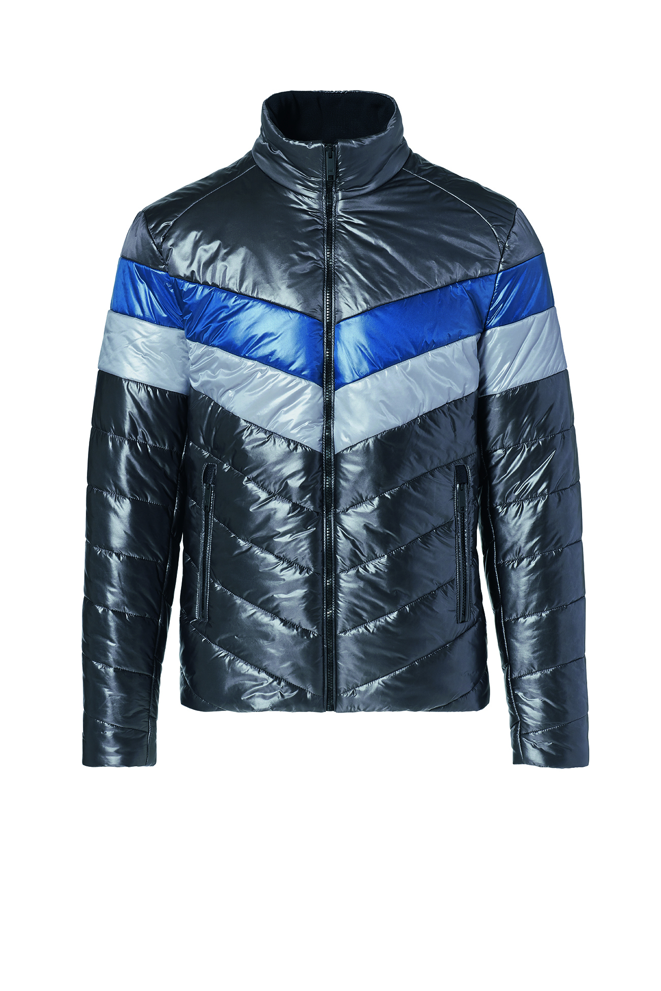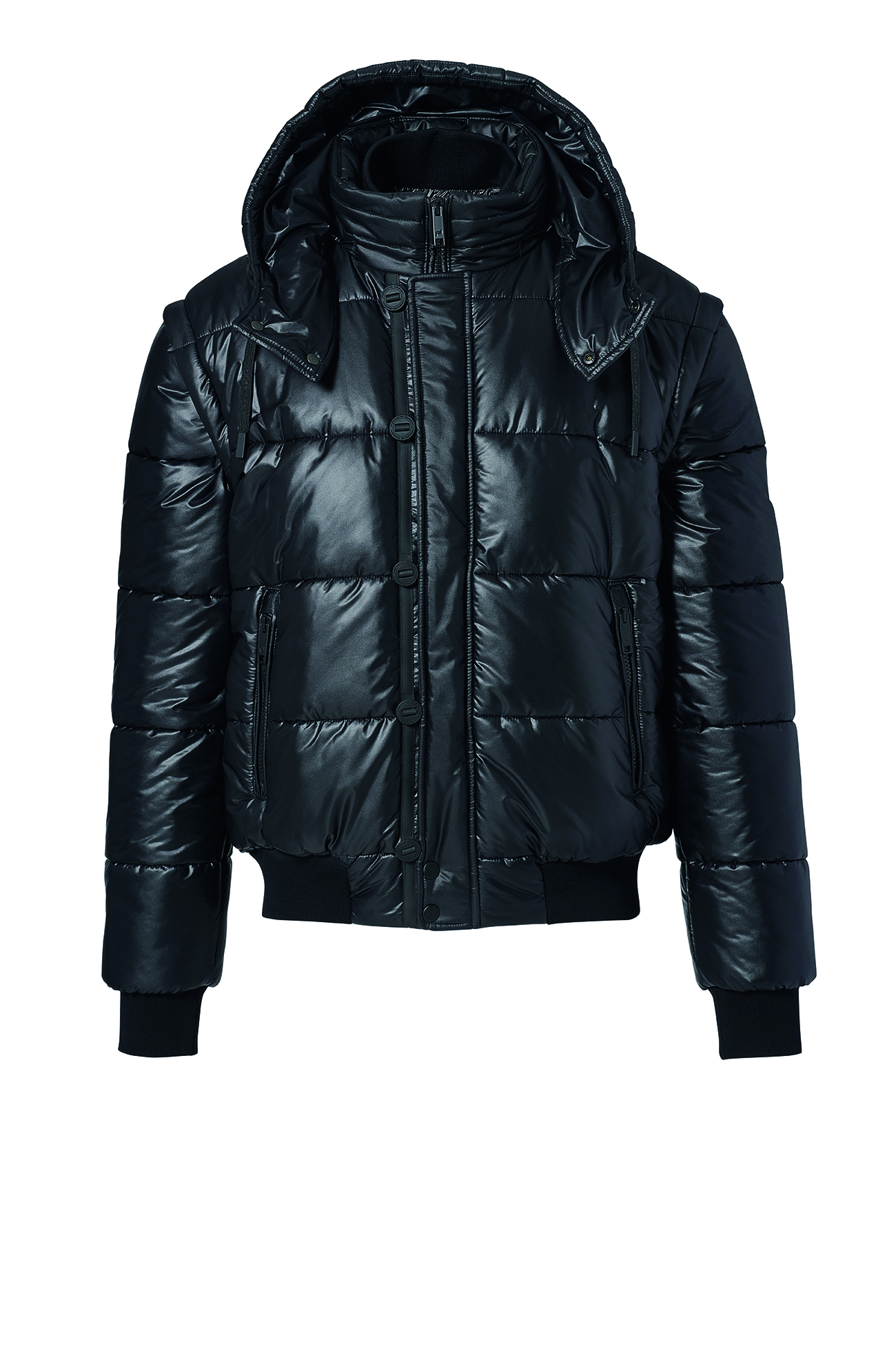 Zukunftsdenken spiegelt sich auch in den verwendeten Materialien wider. Recyceltes ECO-Nylon, daunenfreie Wattierungen und chromfreies Leder sind ein weiterer Schritt in eine nachhaltige Richtung. Basics aus hochwertigen Materialen sowie auf den Look abgestimmte Schuhe, Accessoires und Lederwaren runden die Styles ab.