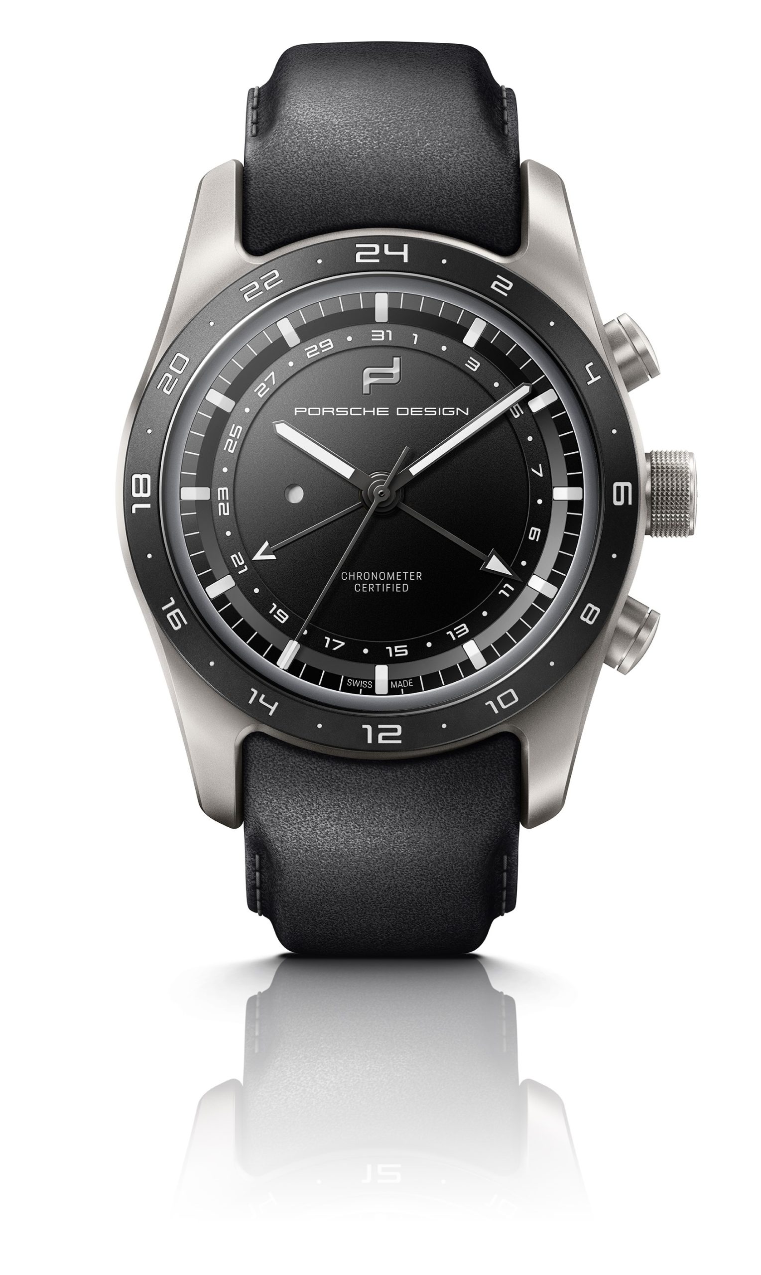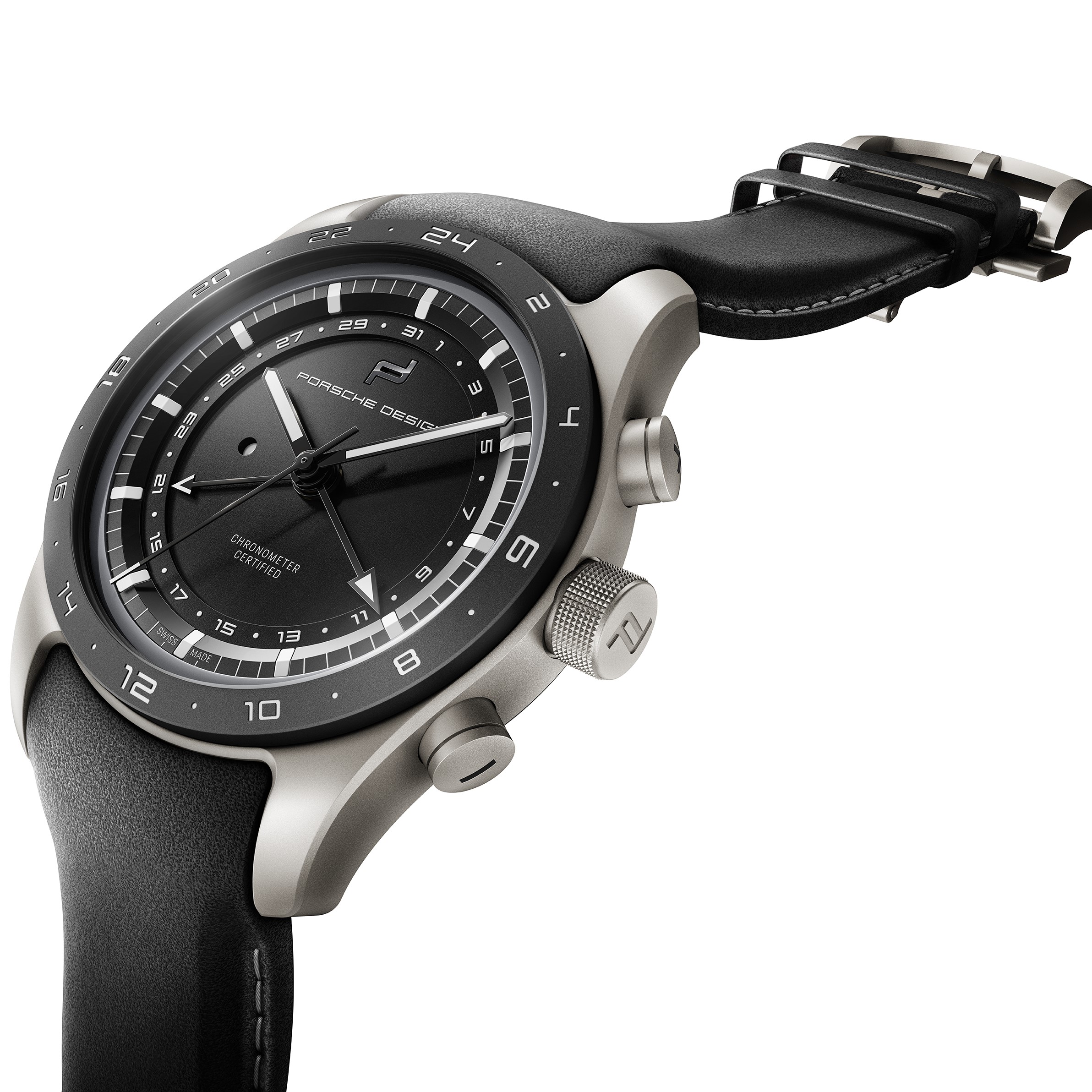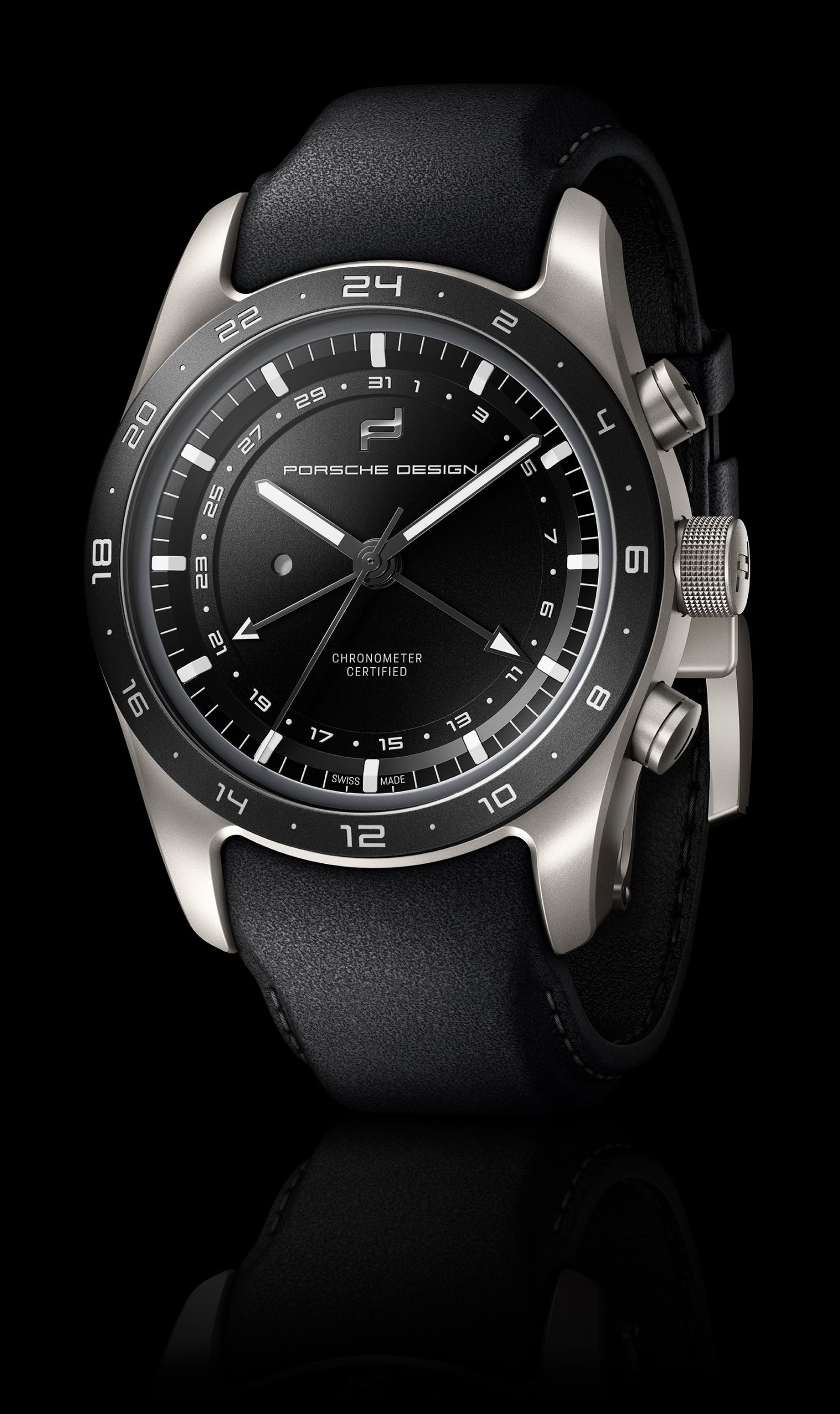 Der Globetimer bringt die Uhrzeit des Heimatlandes und der Reisedestination ans Handgelenk. Abgeleitet von der Funktionsweise des Porsche Doppelkupplungsgetriebes lässt sich die Anzeige der lokalen Uhrzeit im 1-Stunden-Takt ohne Verlust der laufenden Zeitanzeige (Minuten und Sekunden) anpassen – auf Knopfdruck und inklusive automatischer Adaption der Datumsanzeige. Dazu erhalten die vom Chronographen bekannten Drücker eine neue Funktion, die Einstellung über die Krone wird dadurch überflüssig. Das Datum wird – anders als beim Chronographen – durch einen zusätzlichen Zeiger und eine das Zifferblatt umlaufende Anzeige dargestellt. Angetrieben wird der Reisebegleiter durch das in der Porsche eigenen Uhrenmanufaktur im Schweizer Solothurn speziell für die Anforderungen des Globetimers entwickelte Porsche Design Kaliber WERK 04.110. Es ist das zweite eigene Uhrwerk in der Geschichte von Porsche Design und verfügt wie alle Kaliber der Marke über eine COSC-Zertifizierung, welche höchste Präzision garantiert.