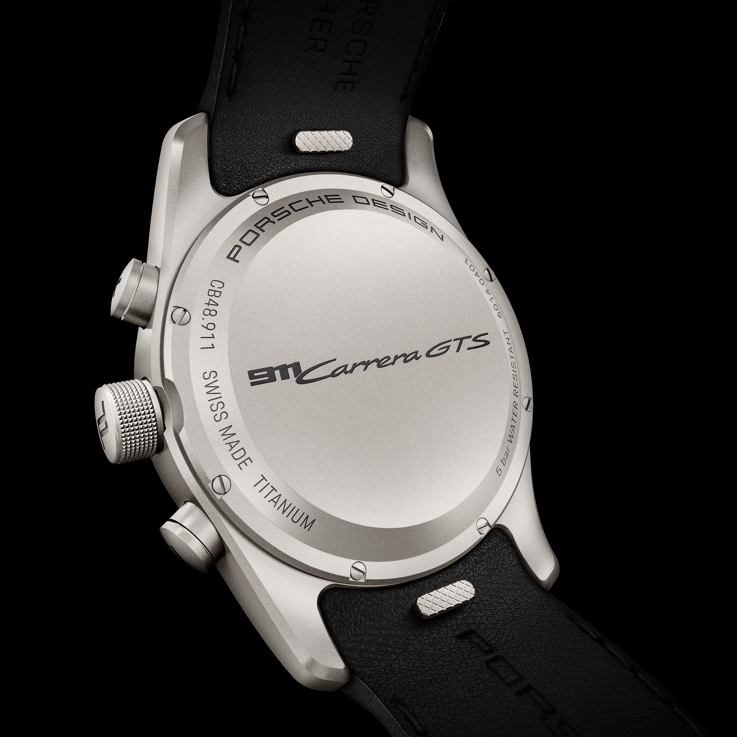 Das Armband lässt sich ebenfalls frei an die Vorlieben der Kunden anpassen. Zu den Optionen gehören ein ultraleichtes und hypoallergenes Titanarmband mit einem Finish in Schwarz oder Titan natur oder ein Armband aus Porsche Fahrzeugleder. Kontrastnähte aus echtem Porsche Fahrzeuggarn in allen Farben aus dem Interieurangebot des Sportwagens runden die Gestaltungsmöglichkeiten des Kalbslederbandes ab. Durch den obligatorischen Schnellwechselmechanismus können Armbänder ohne Werkzeug in Sekunden ausgetauscht werden.
